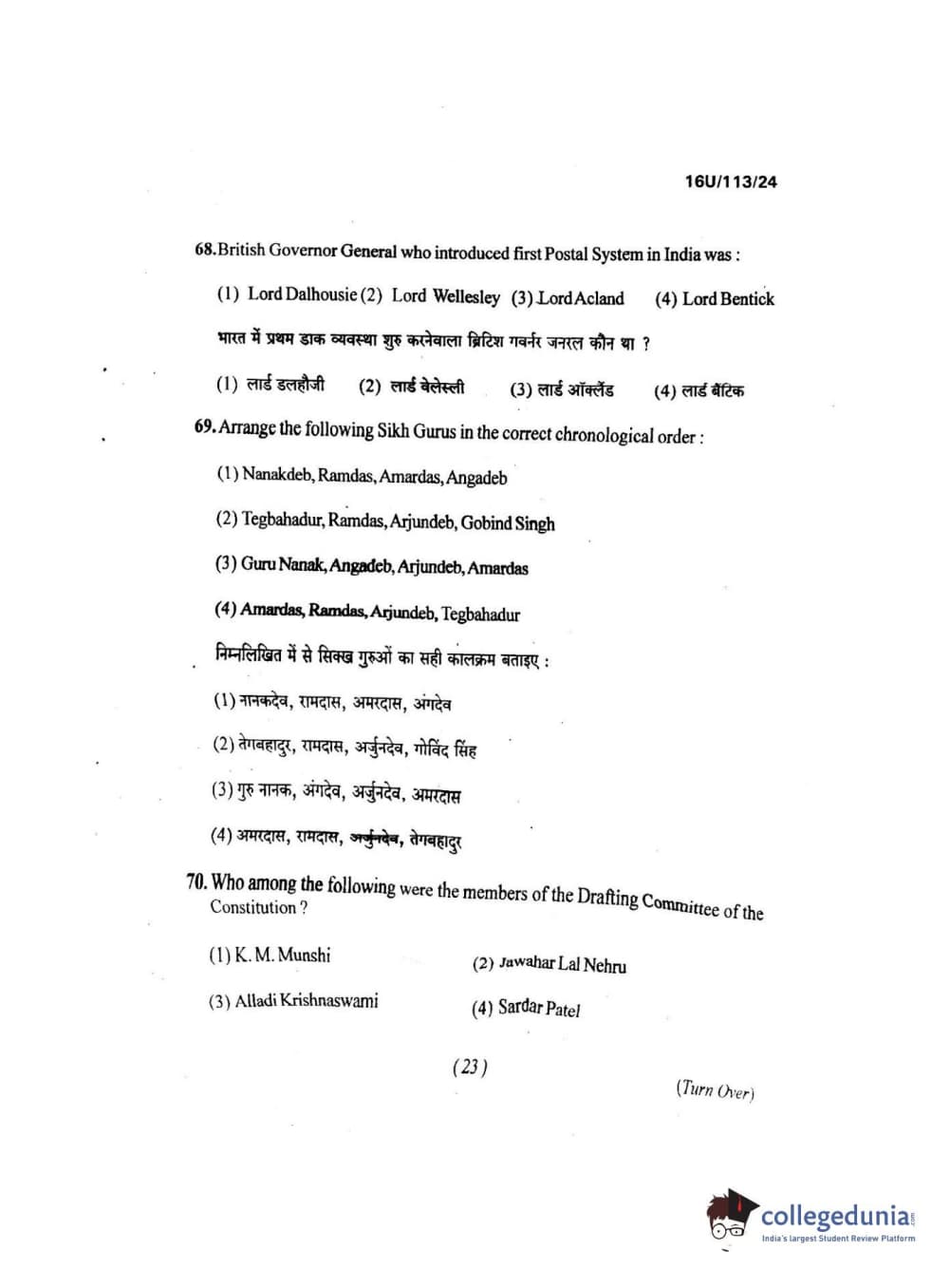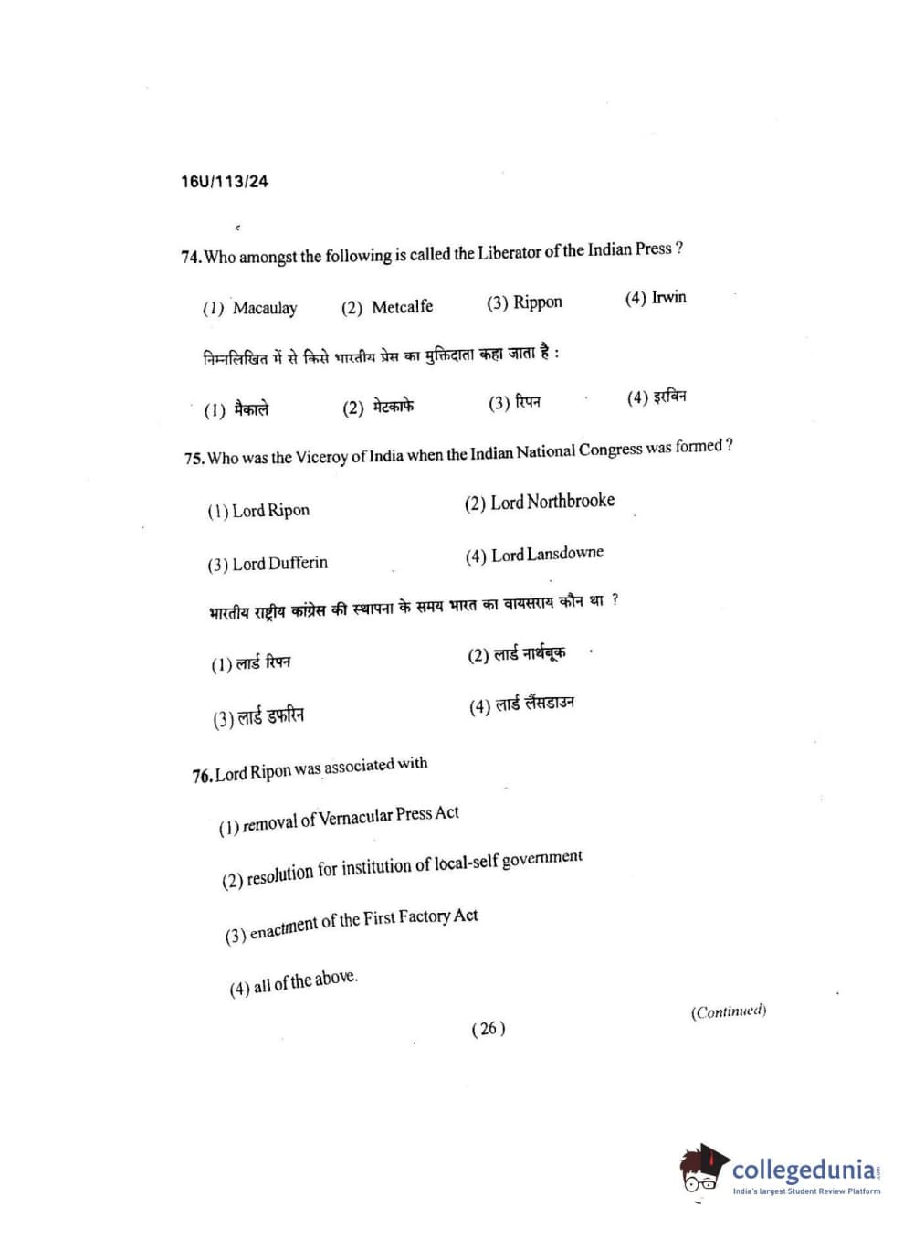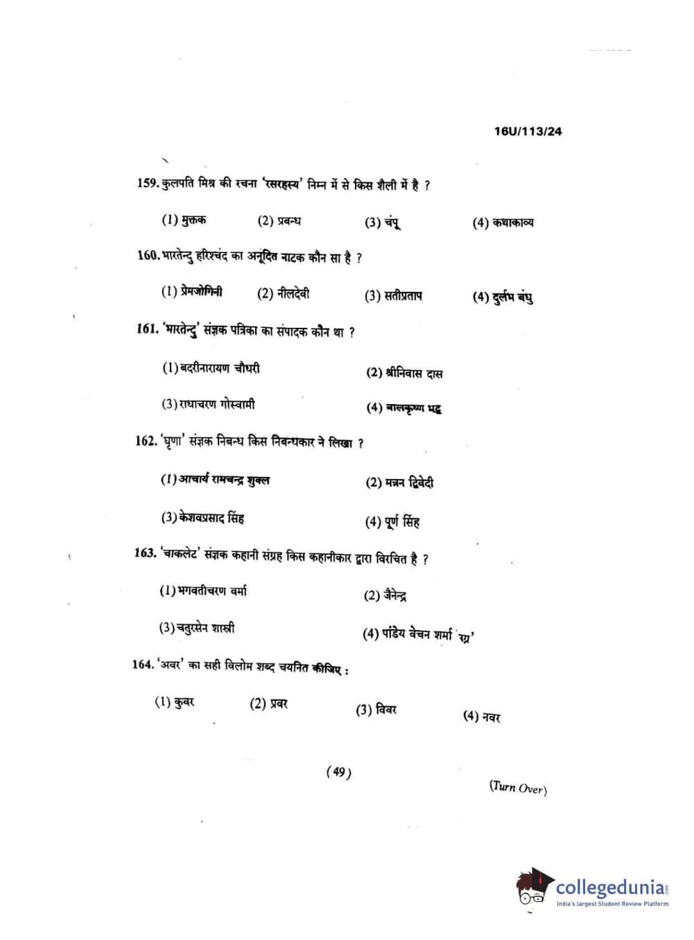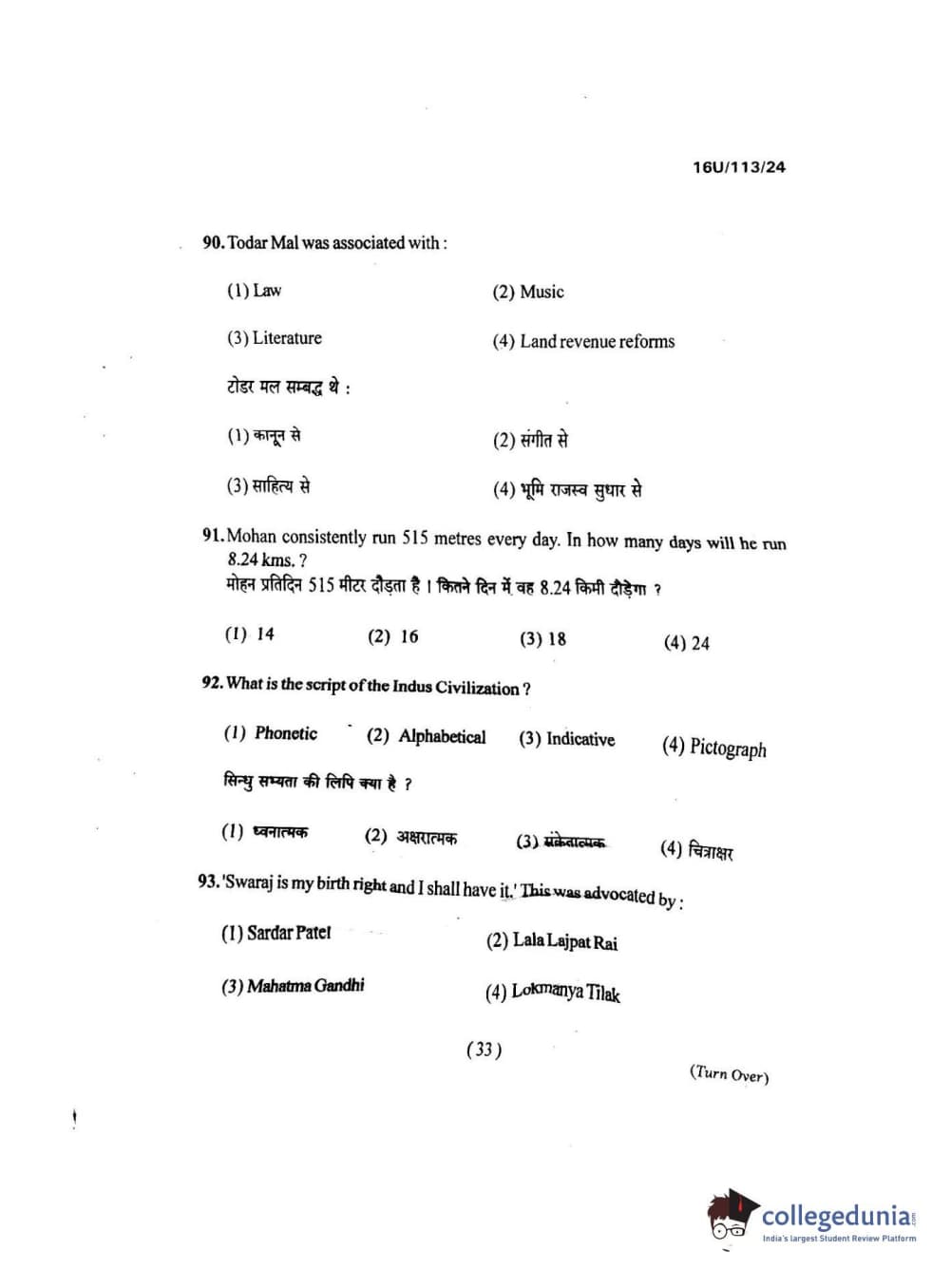 BHU UET 2016 B.A. ARTS Question Paper with Answer Key PDFs