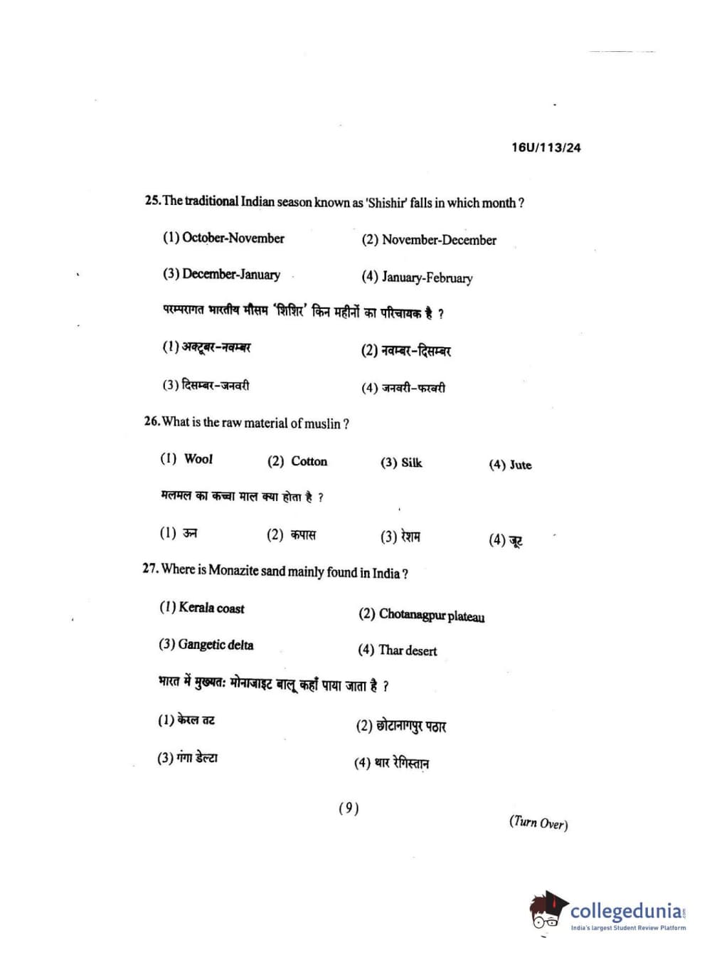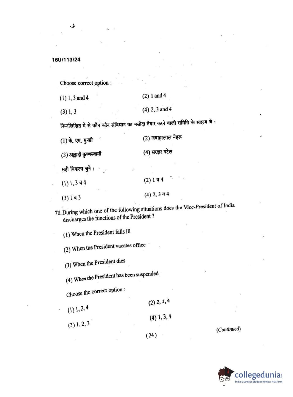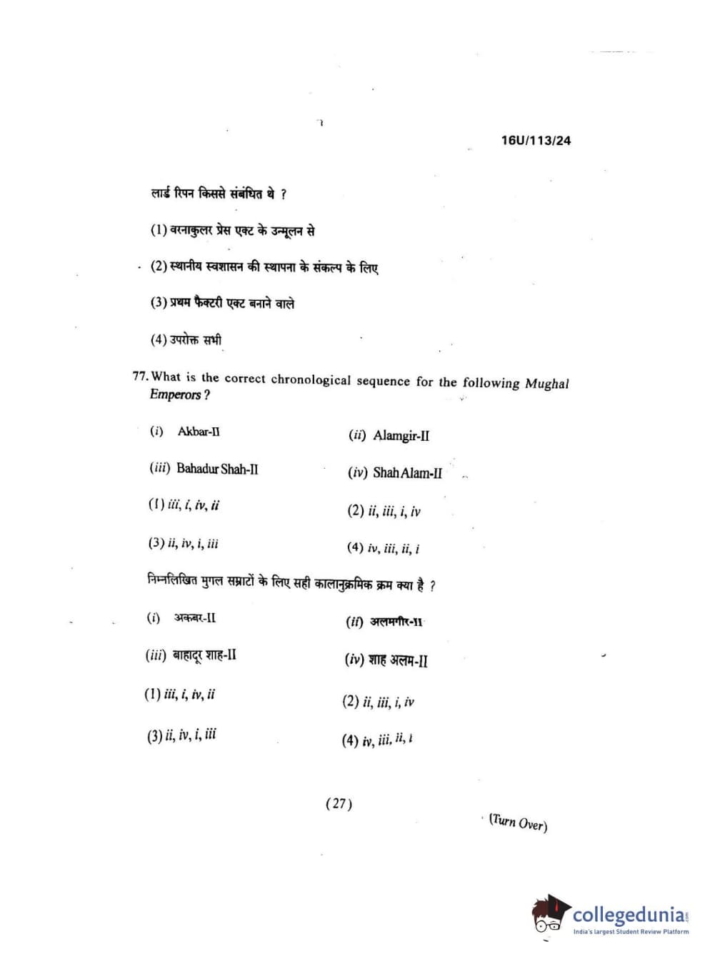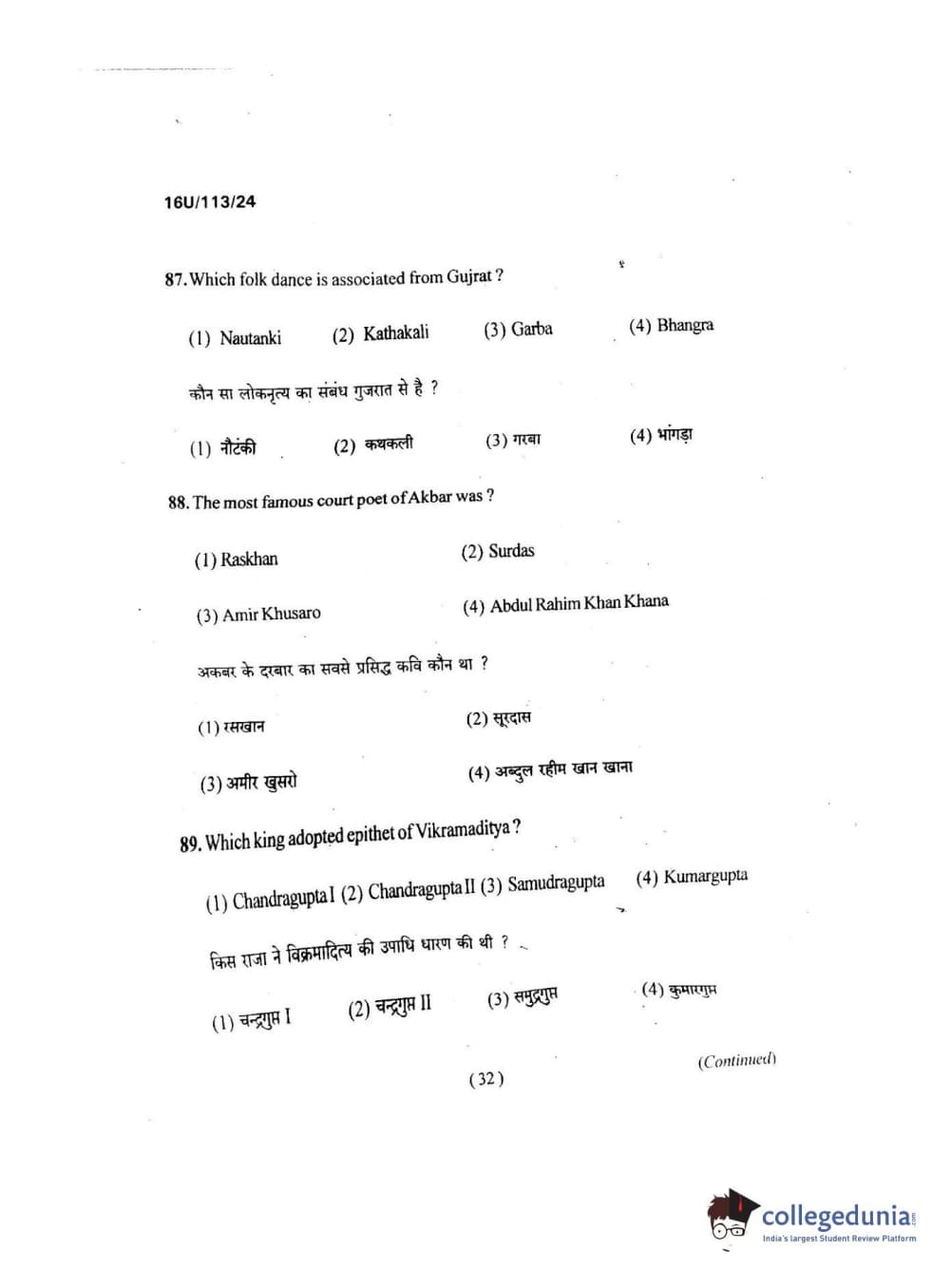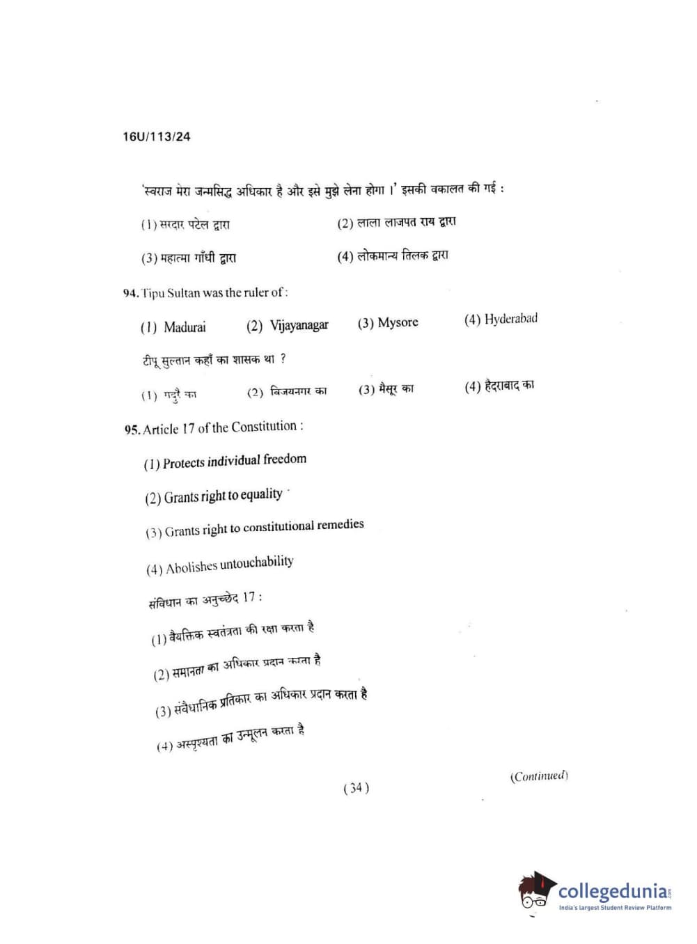 BHU UET 2016 B.A. ARTS Question Paper with Answer Key PDFs