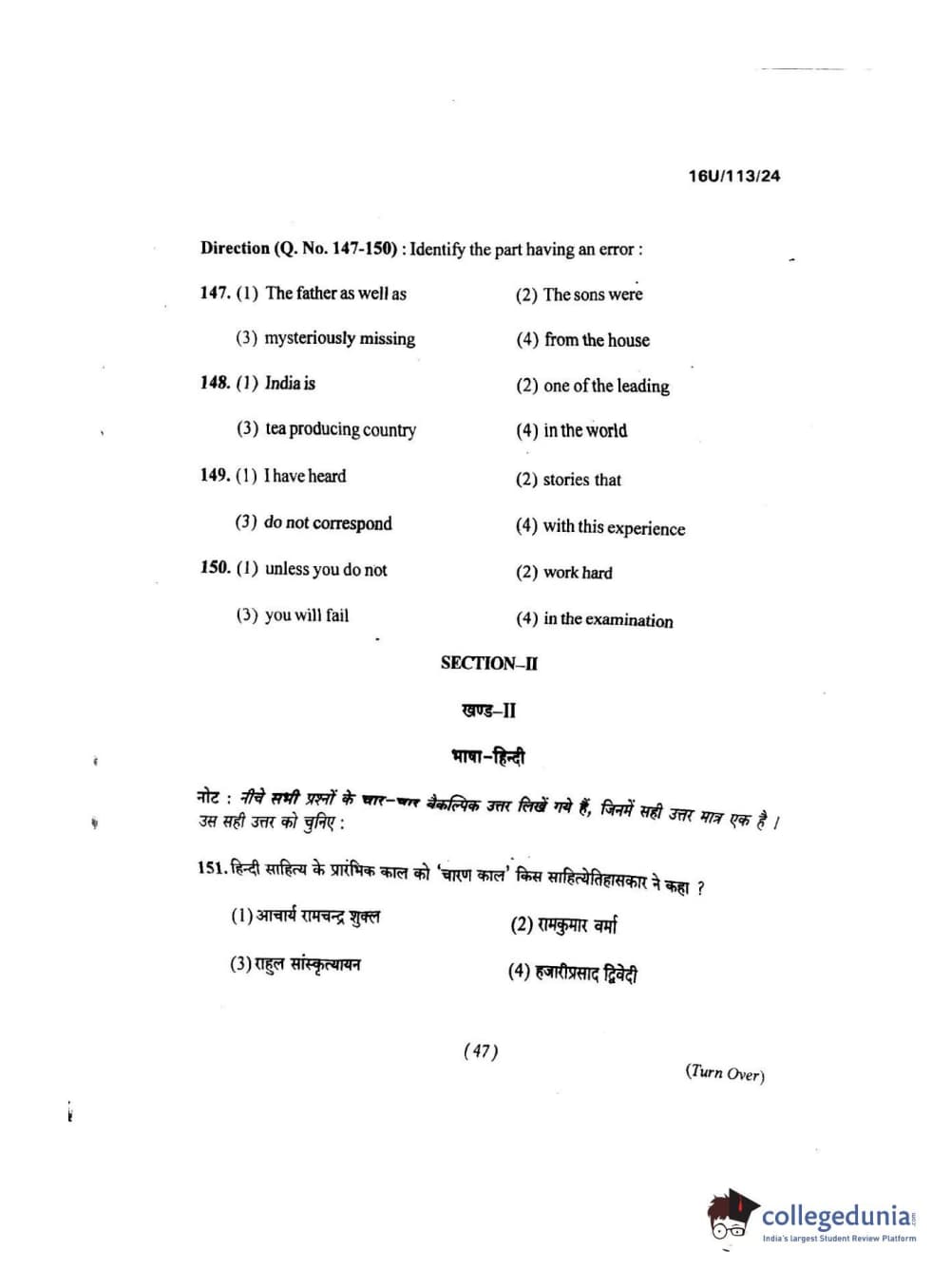 BHU UET 2016 B.A. ARTS Question paper with answer key pdf is available for download. The exam was successfully organized by Banaras Hindu University (BHU). The question paper comprised a total of 180 questions.