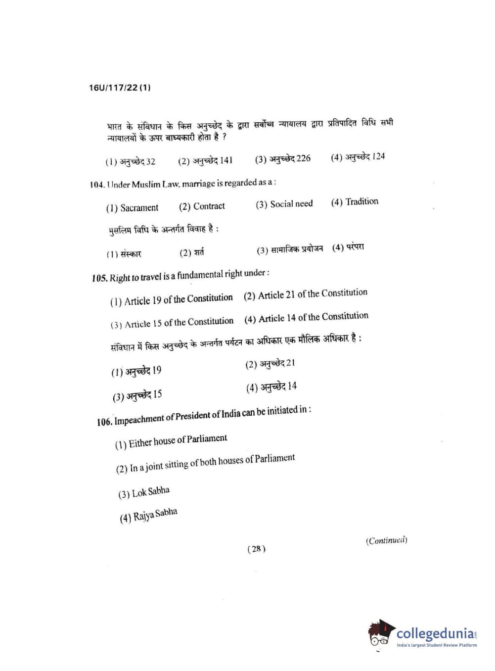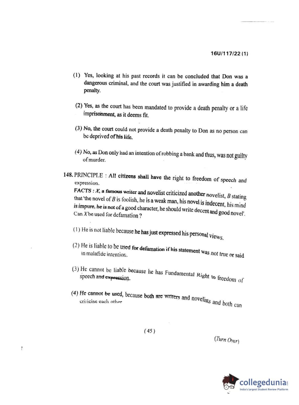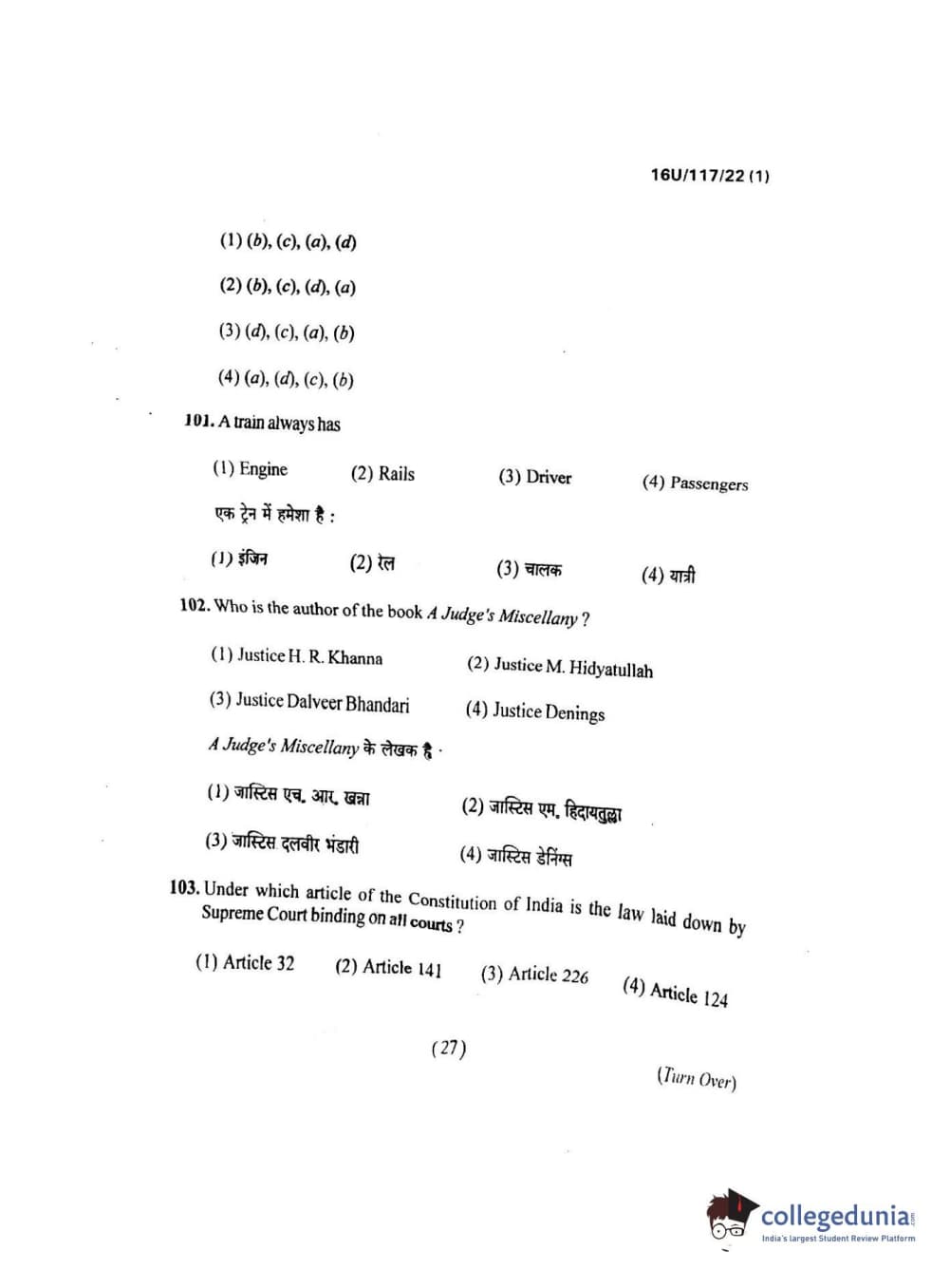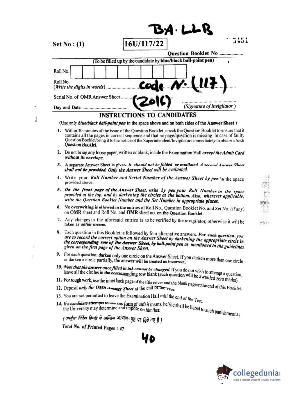 BHU UET 2016 B.A. LLB Question paper with answer key pdf is available for download. The exam was successfully organized by Banaras Hindu University (BHU). The question paper comprised a total of 150 questions.