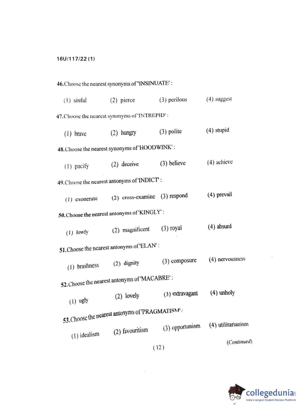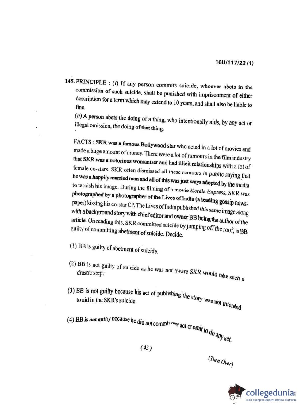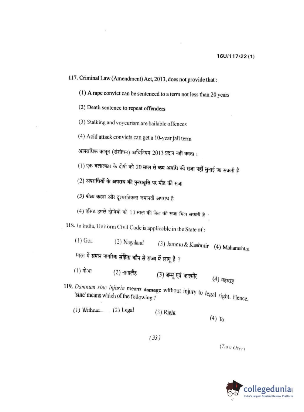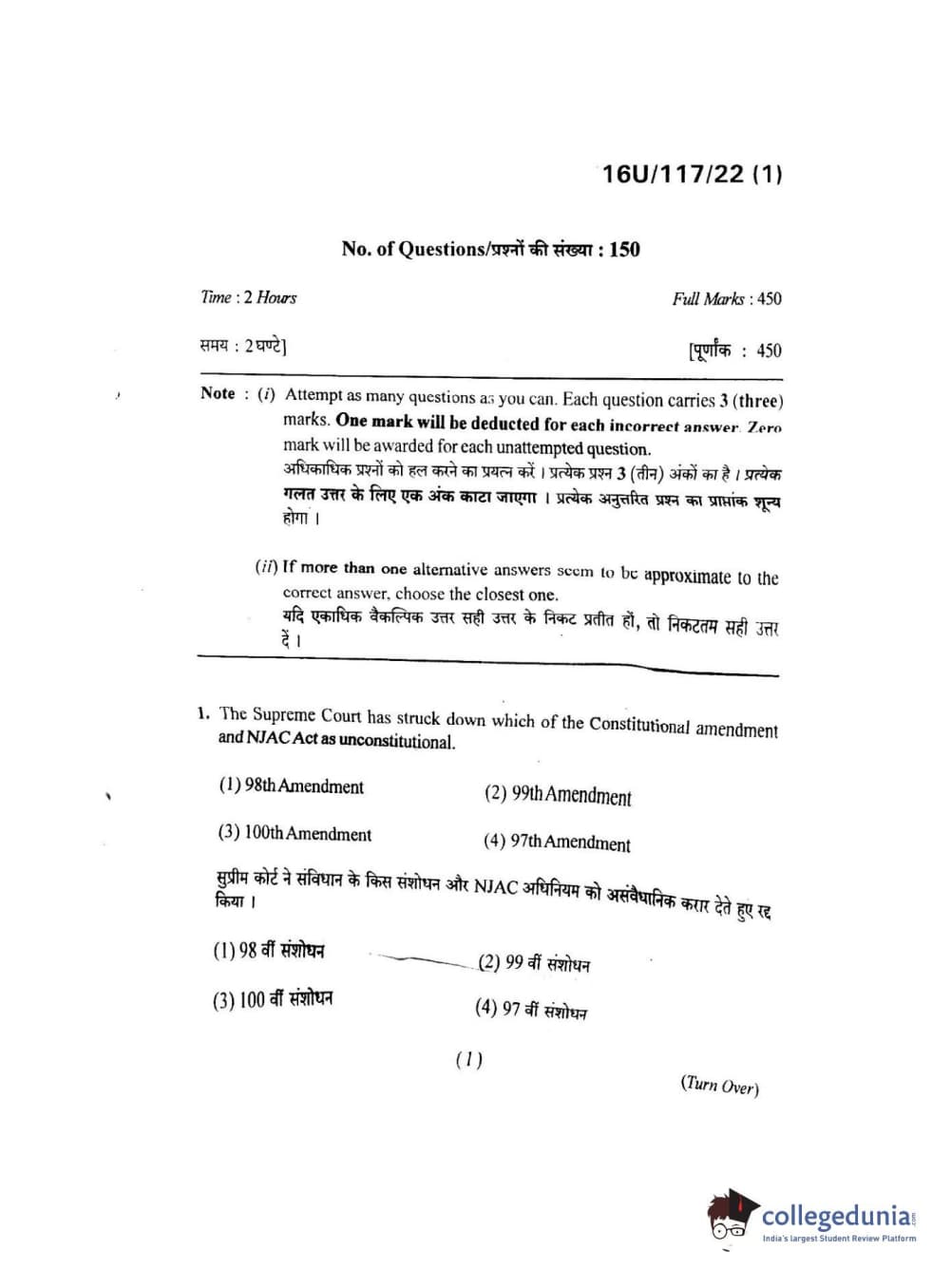 BHU UET 2016 B.A. LLB Question paper with answer key pdf is available for download. The exam was successfully organized by Banaras Hindu University (BHU). The question paper comprised a total of 150 questions.