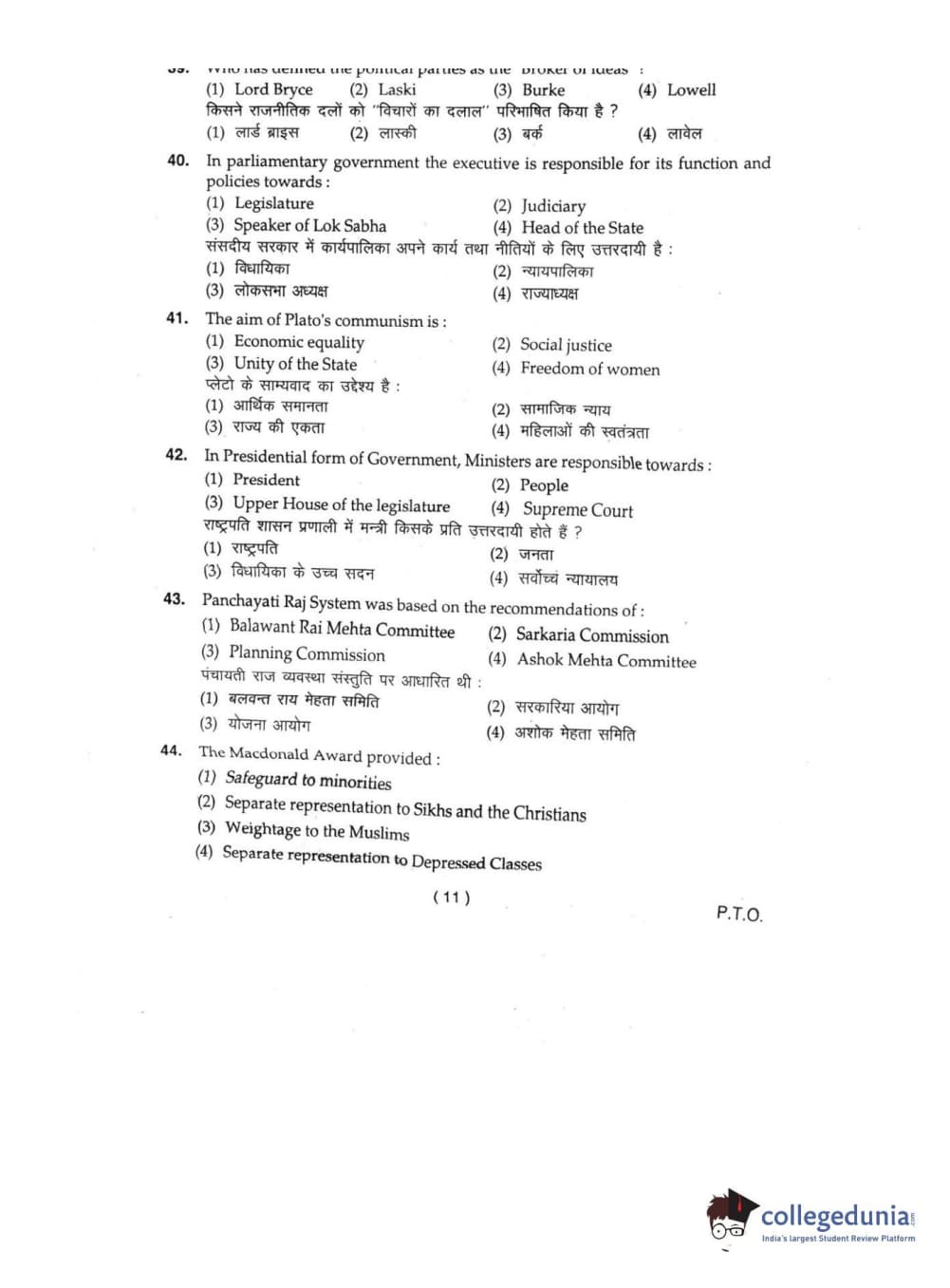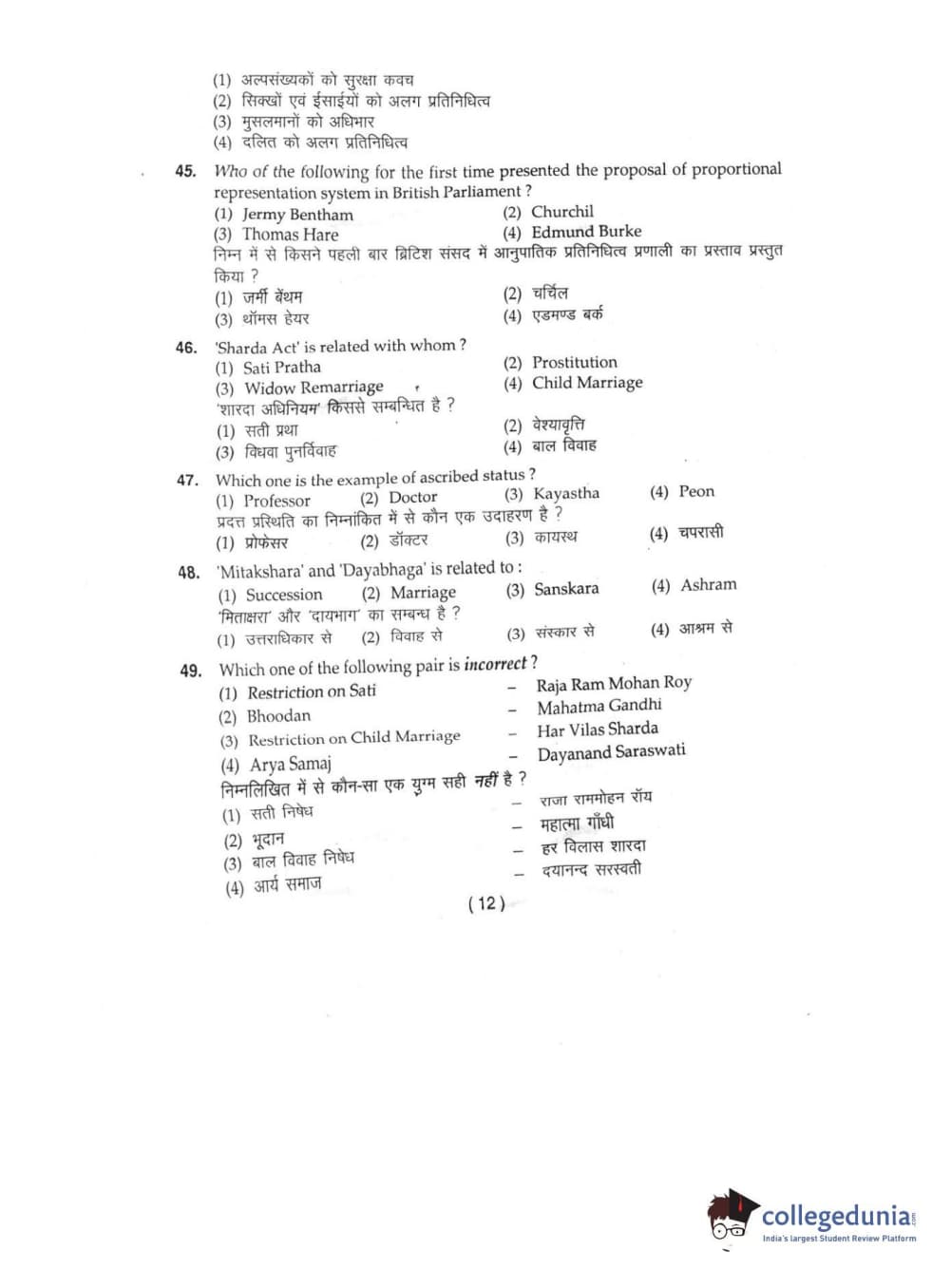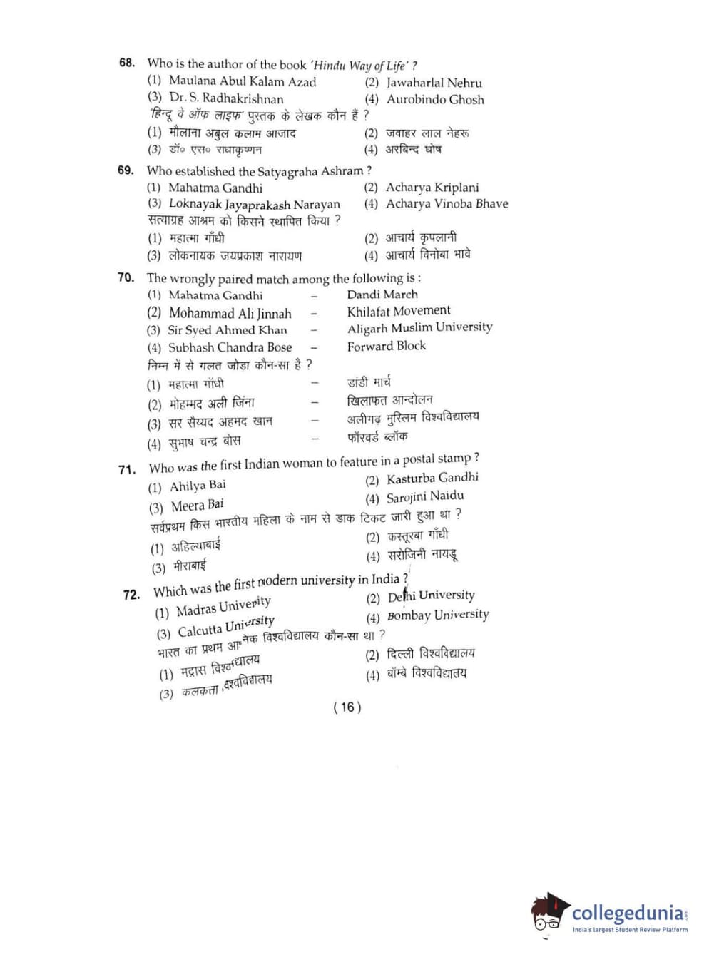 BHU UET 2016 B.A. SOCIAL Question Paper with Answer Key PDFs