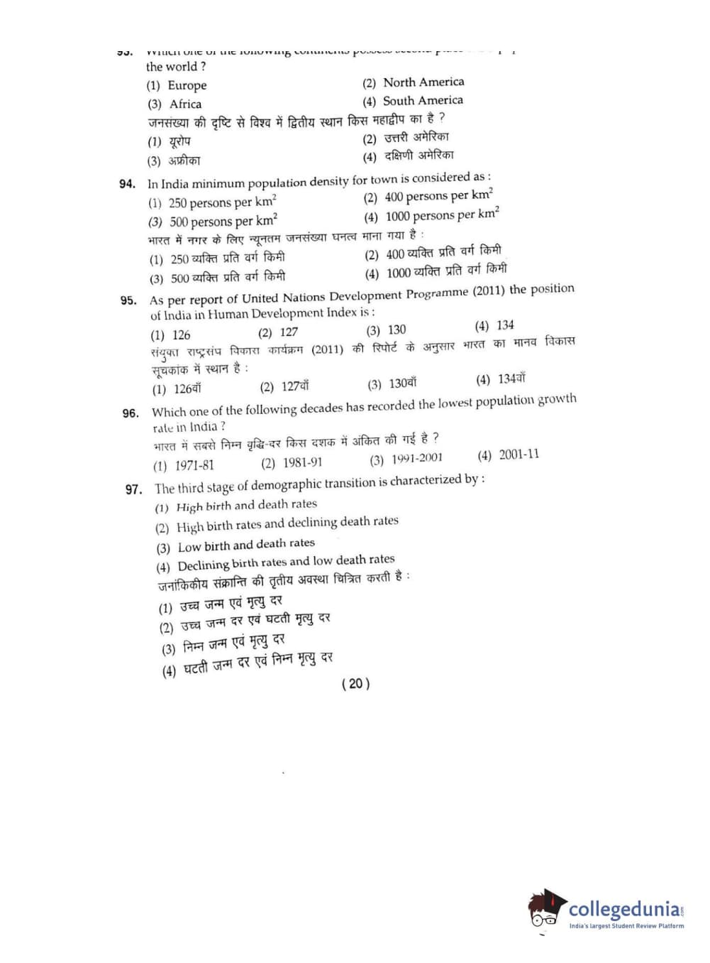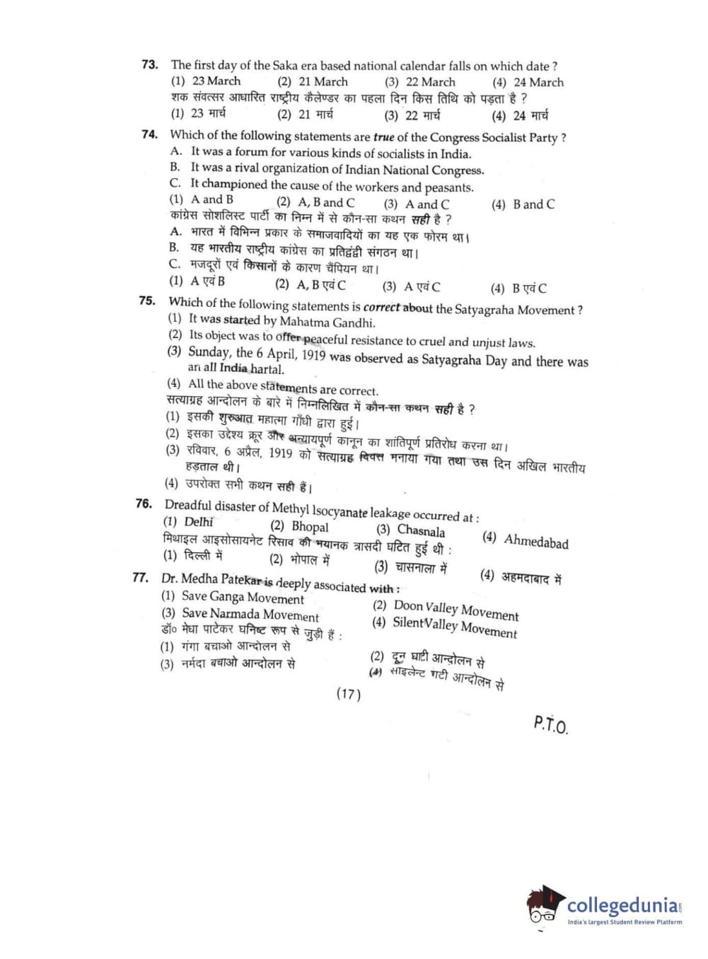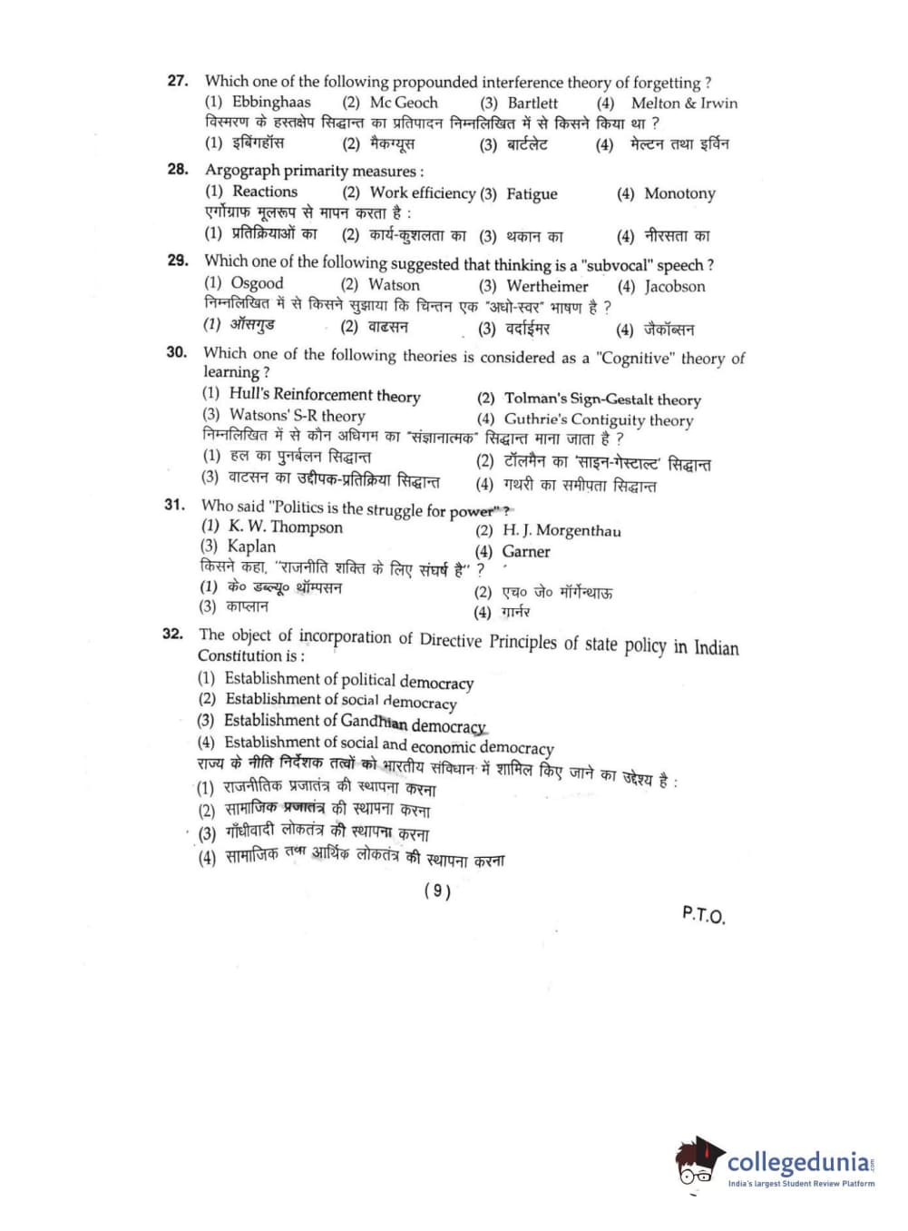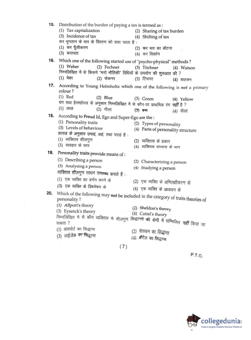 BHU UET 2016 B.A. SOCIAL Question Paper with Answer Key PDFs