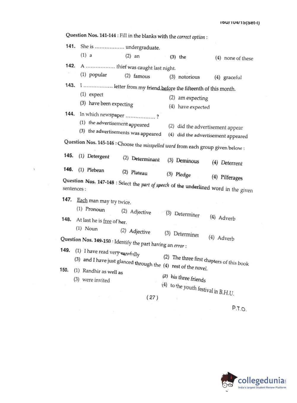BHU UET 2016 B.A. SOCIAL Question paper with answer key pdf is available for download. The exam was successfully organized by Banaras Hindu University (BHU). The question paper comprised a total of 180 questions.