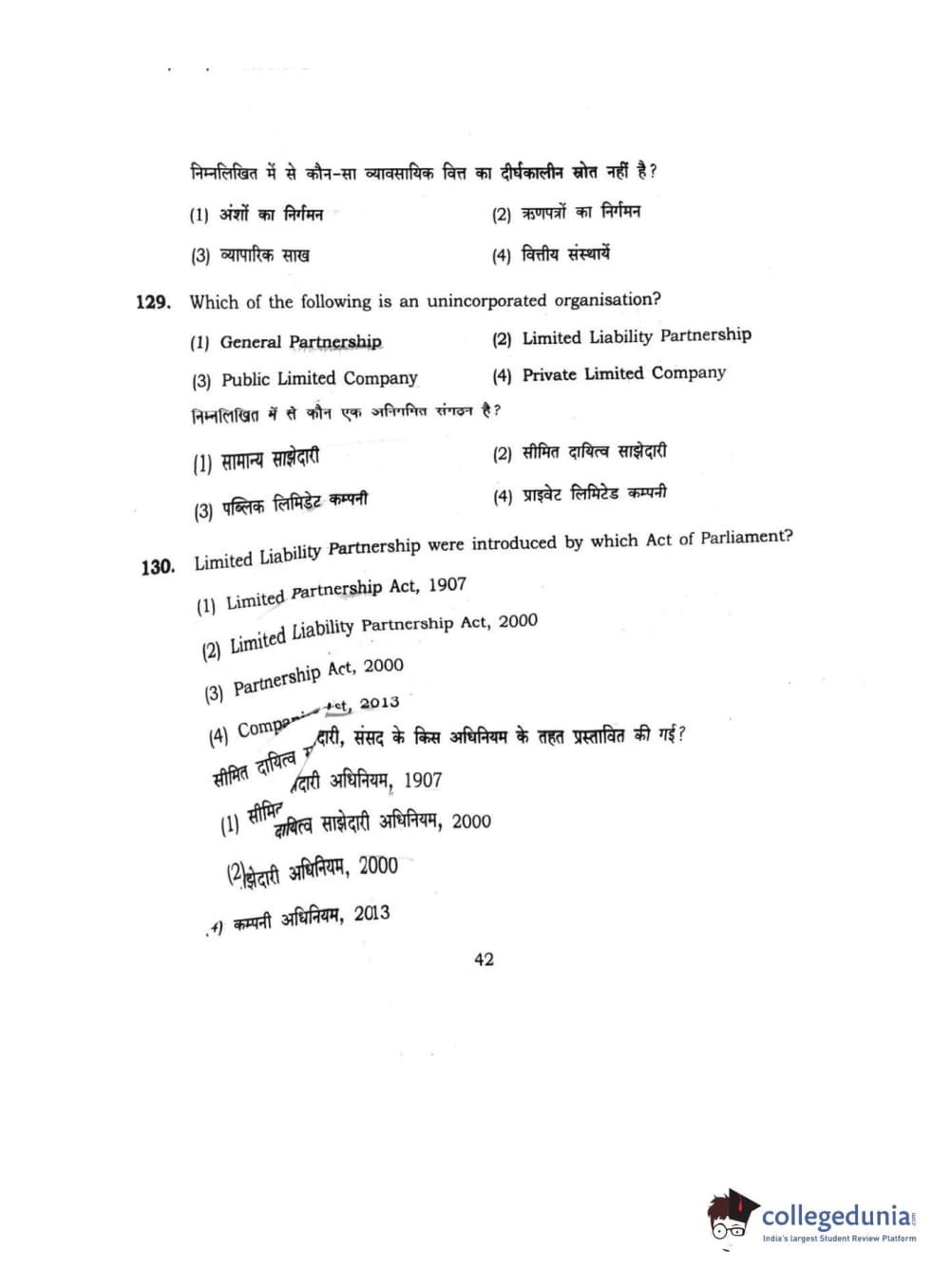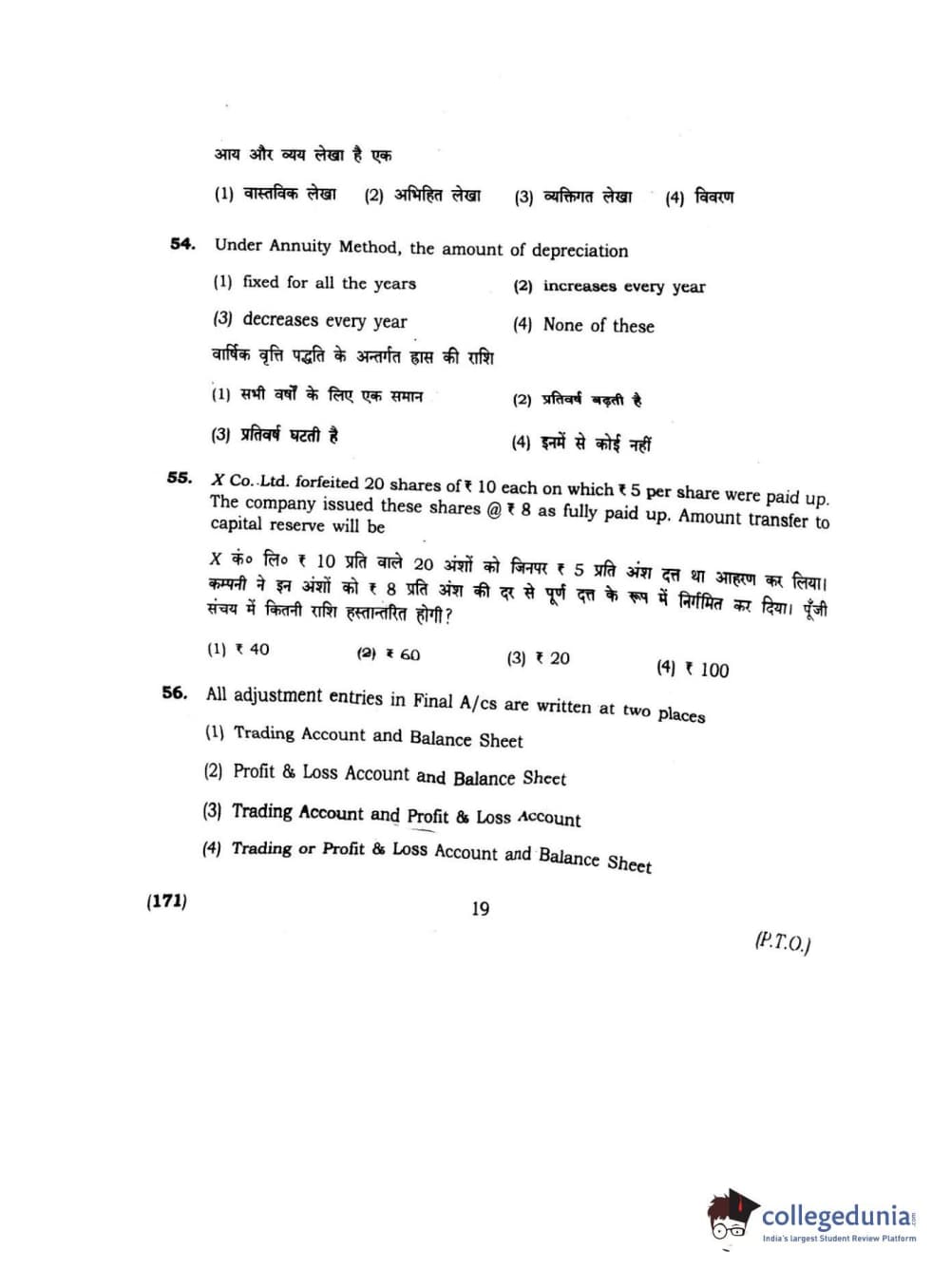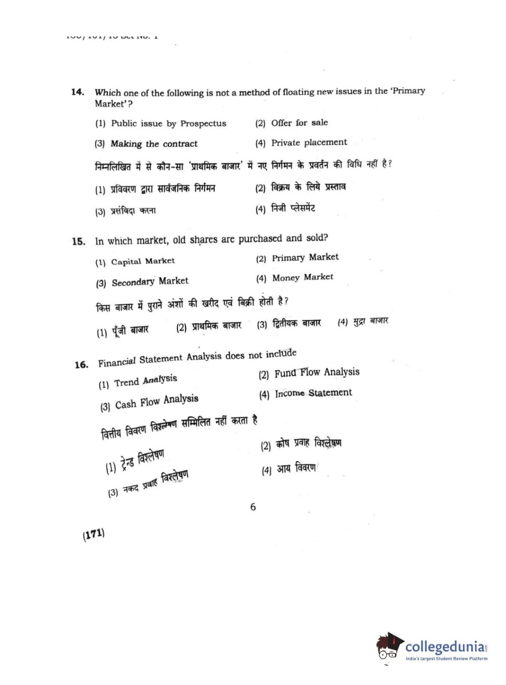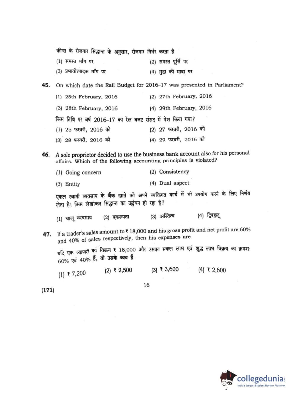 BHU UET 2016 B.Com Question Paper with Answer Key PDFs
