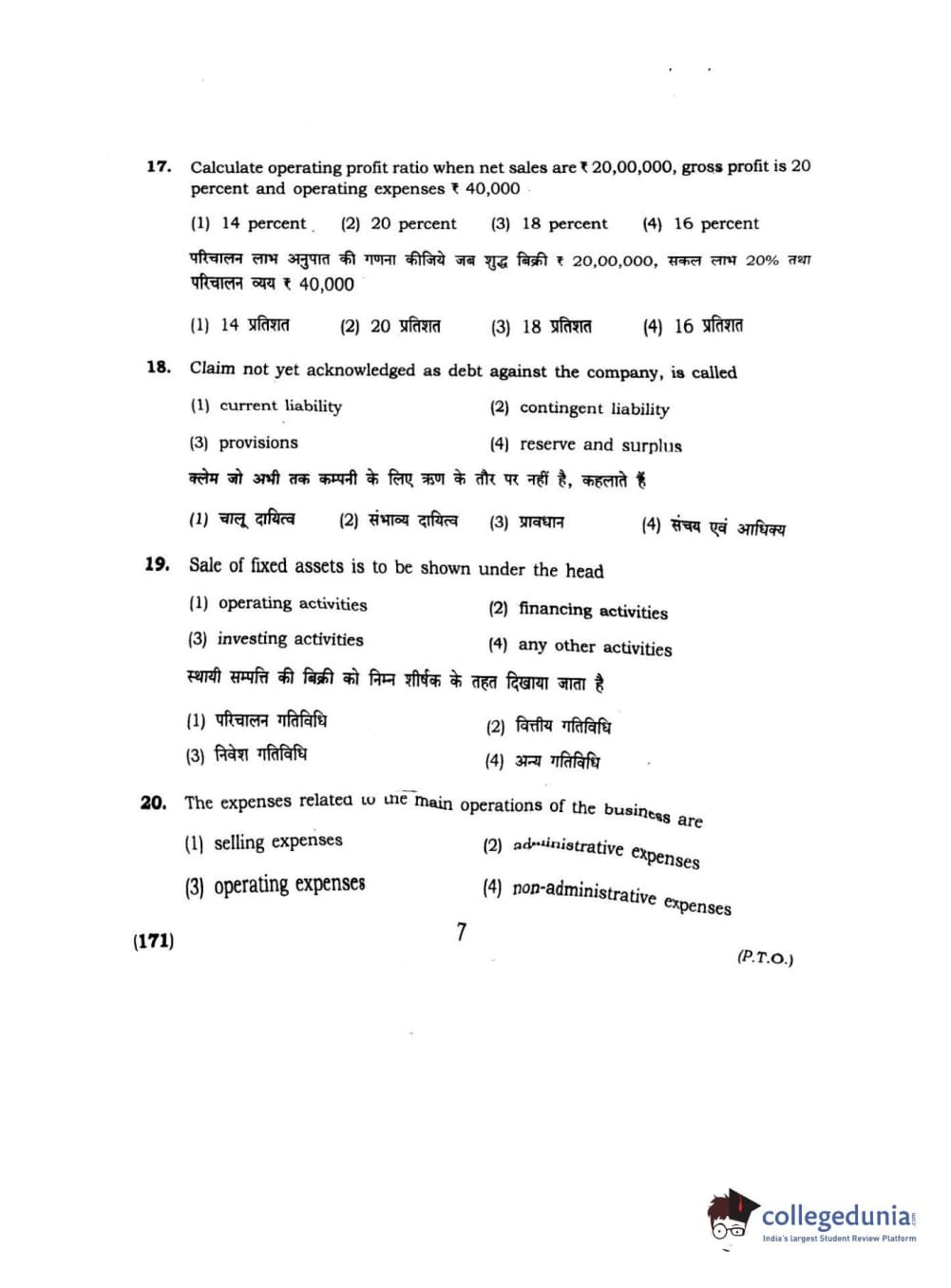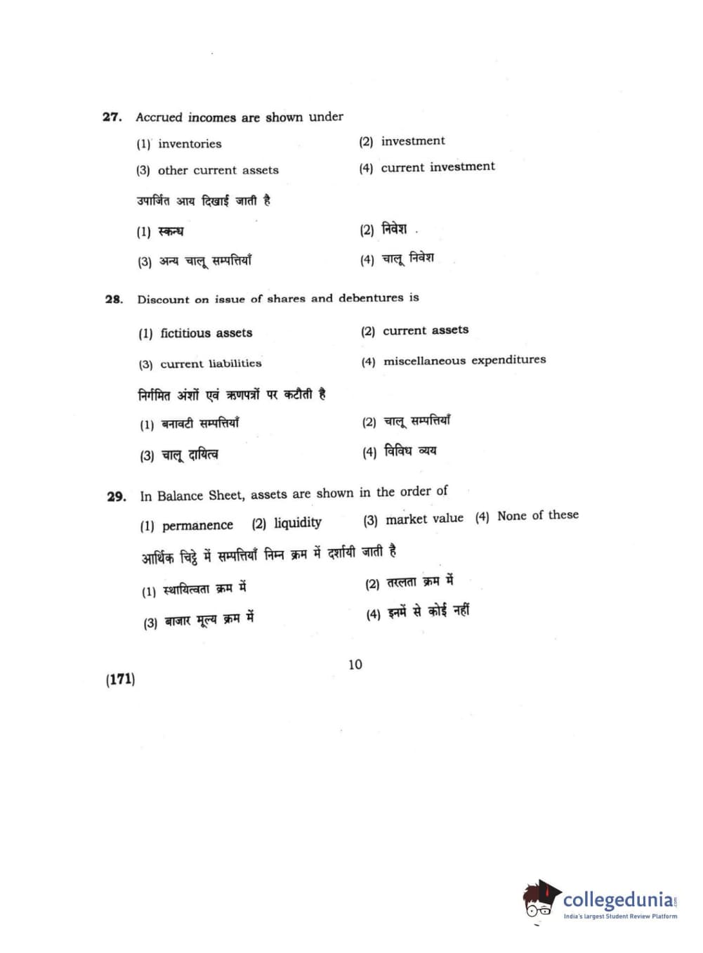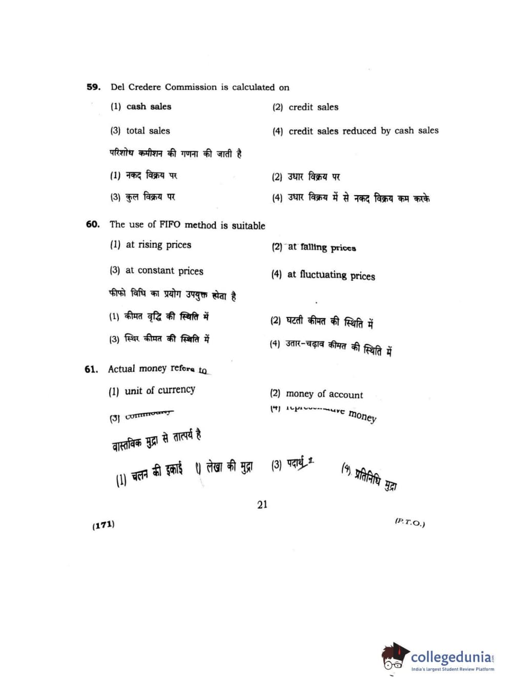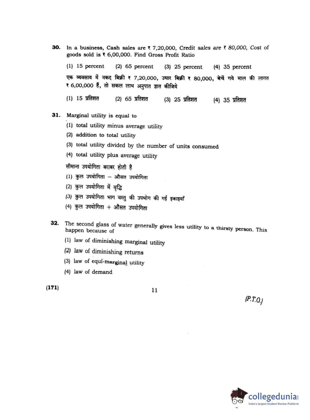 BHU UET 2016 B.Com Question Paper with Answer Key PDFs