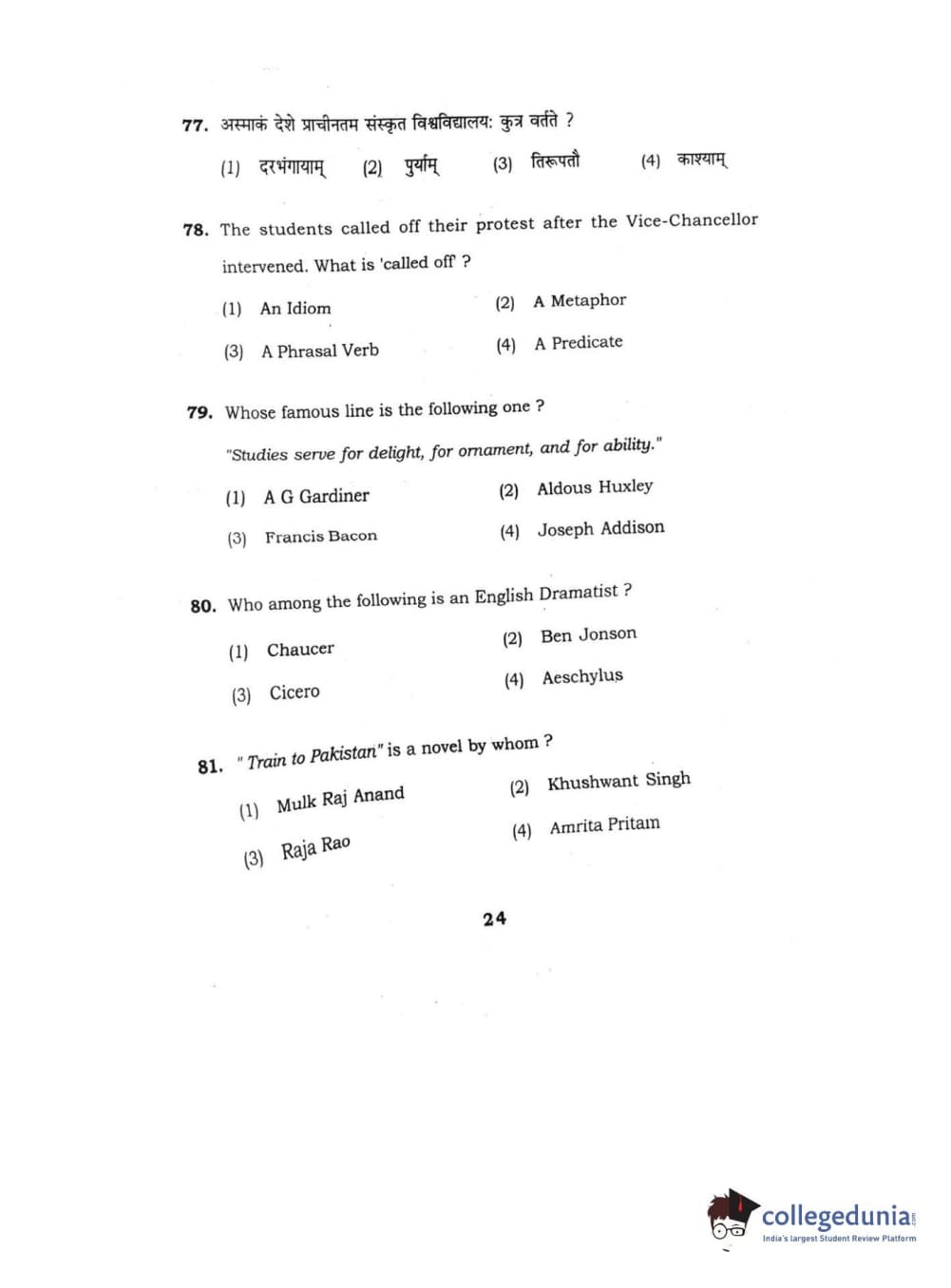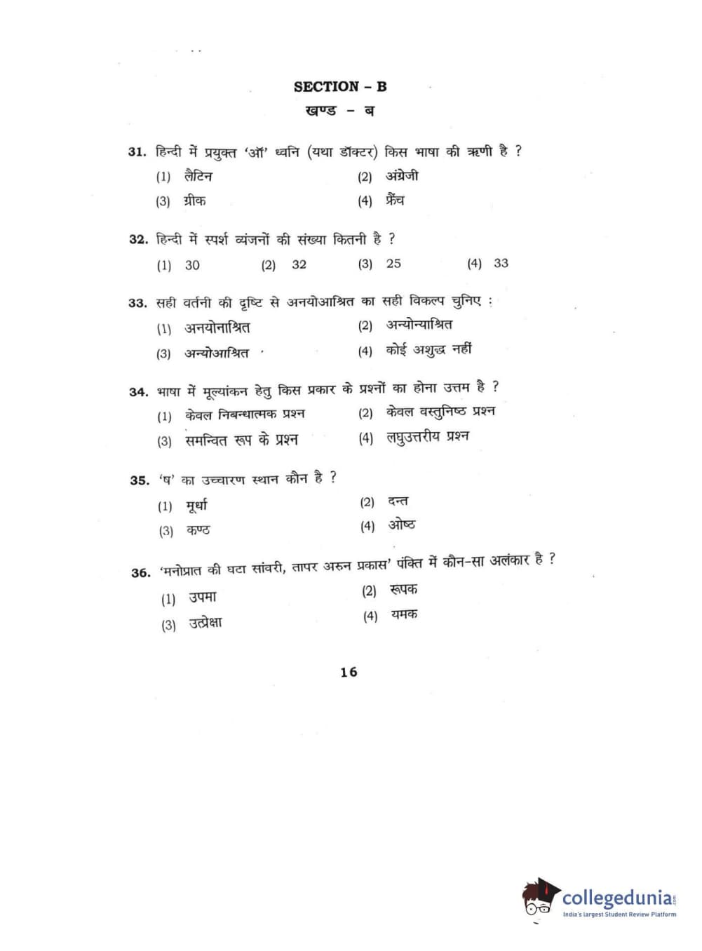 BHU UET 2016 B.Ed Language Question Paper with Answer Key PDFs