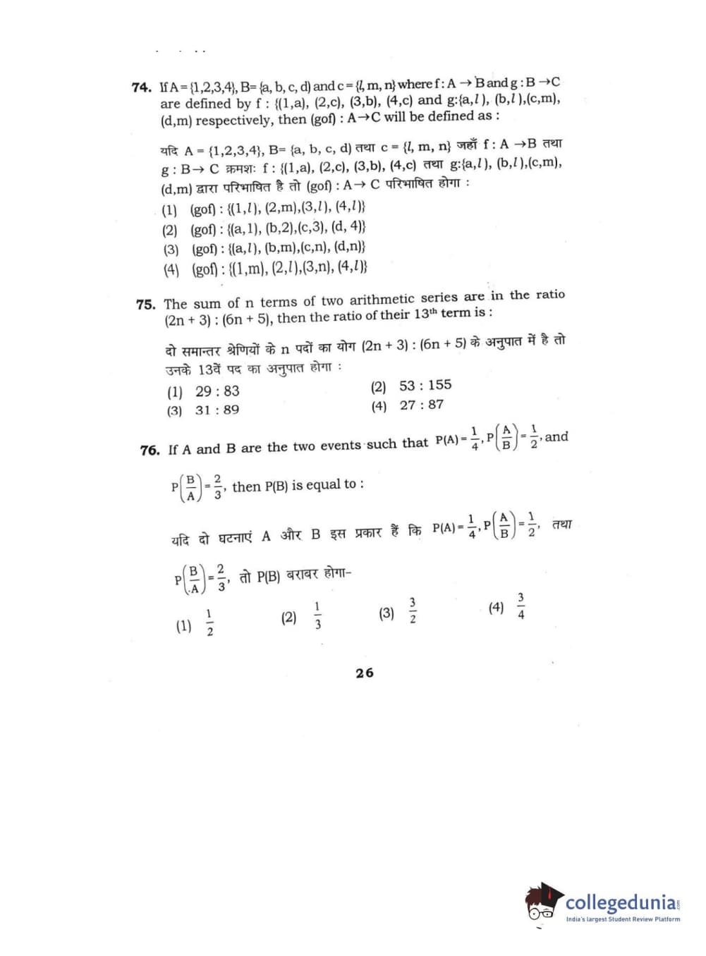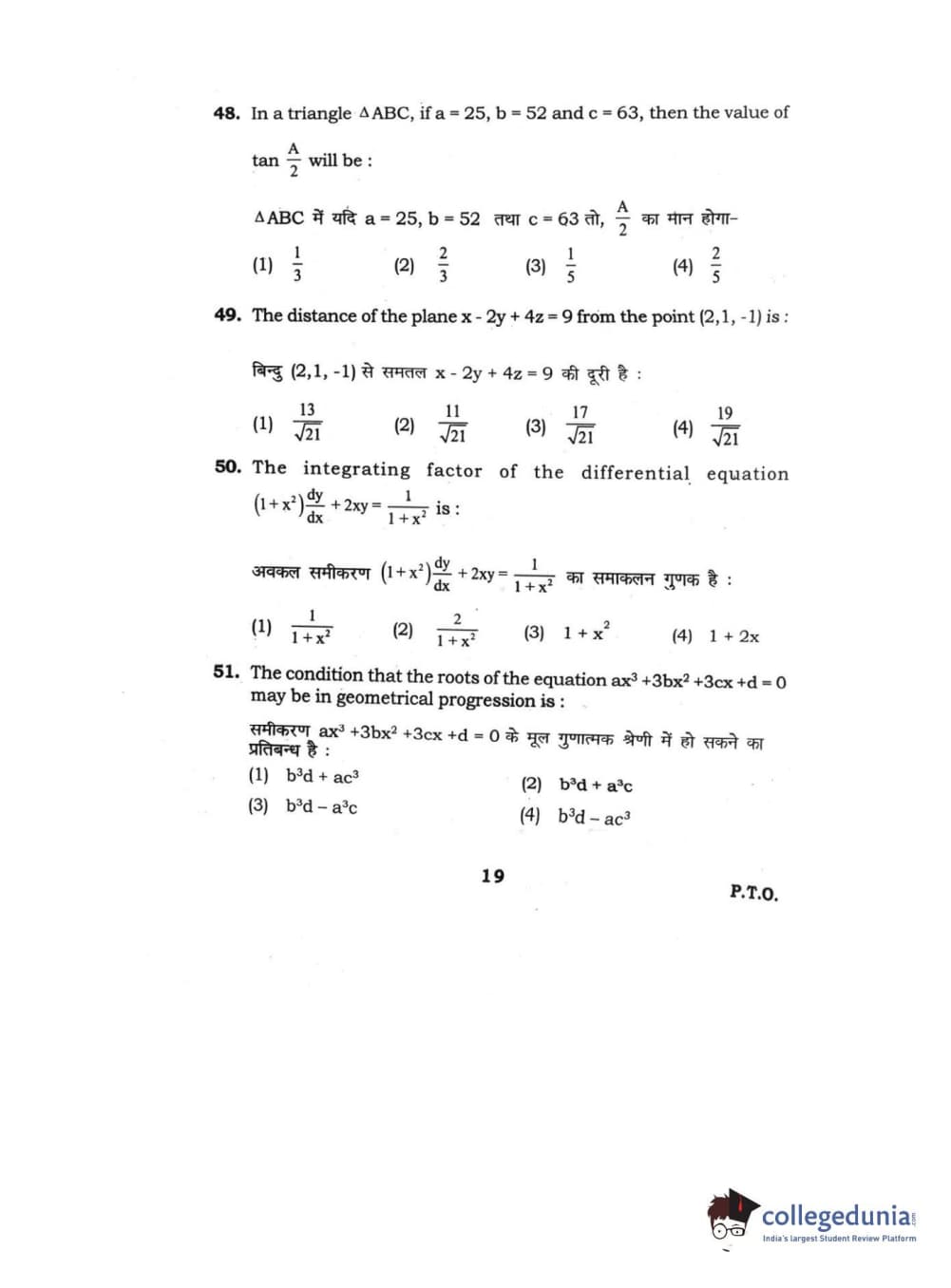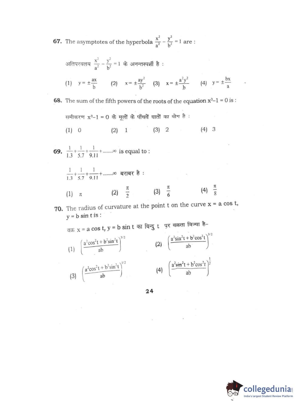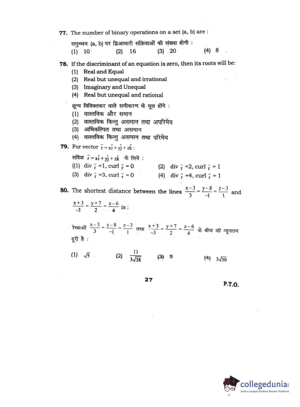 BHU UET 2016 B.Ed Mathematics Question Paper with Answer Key PDFs