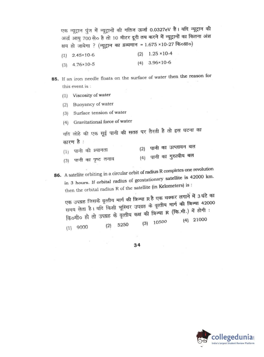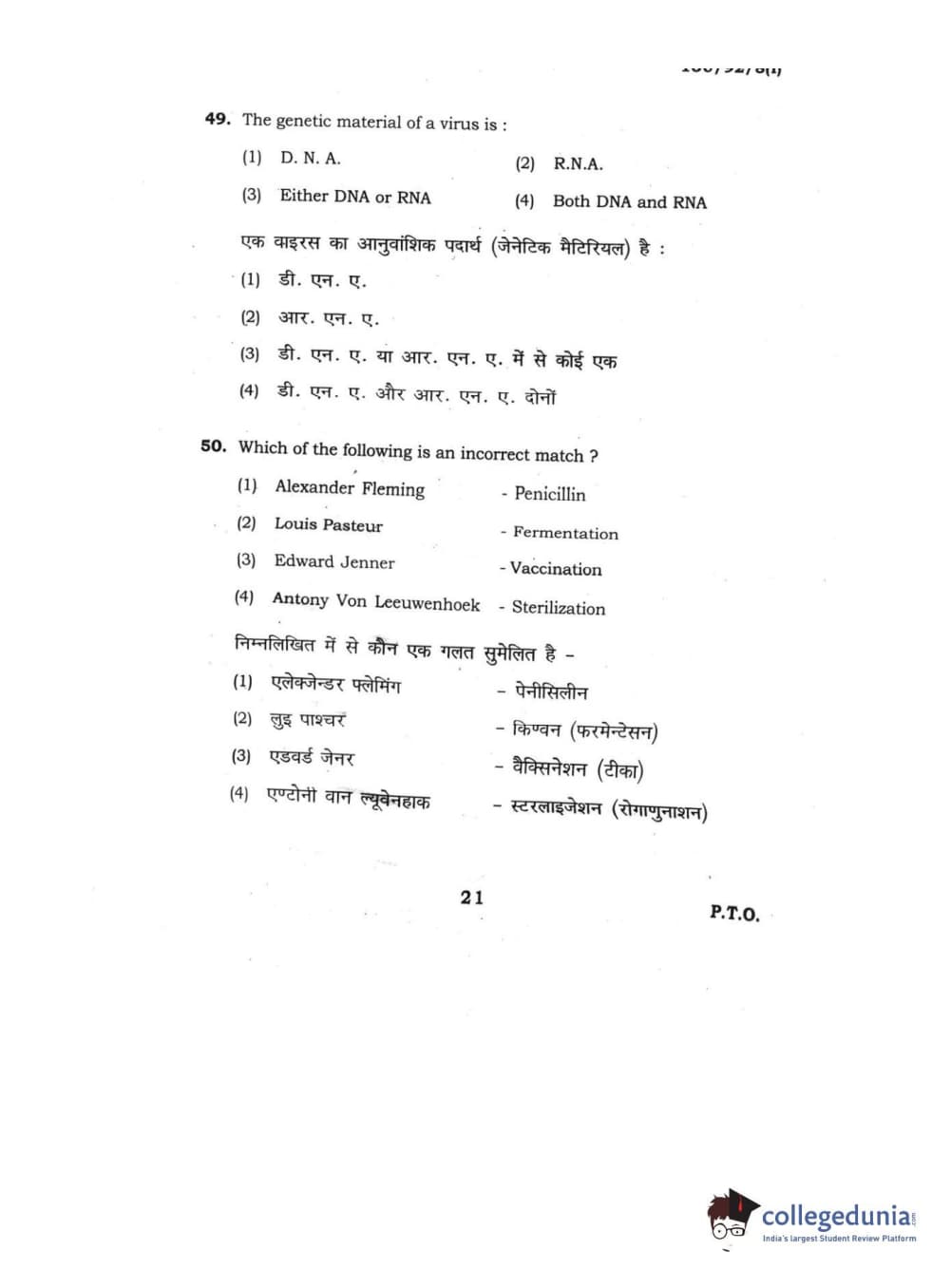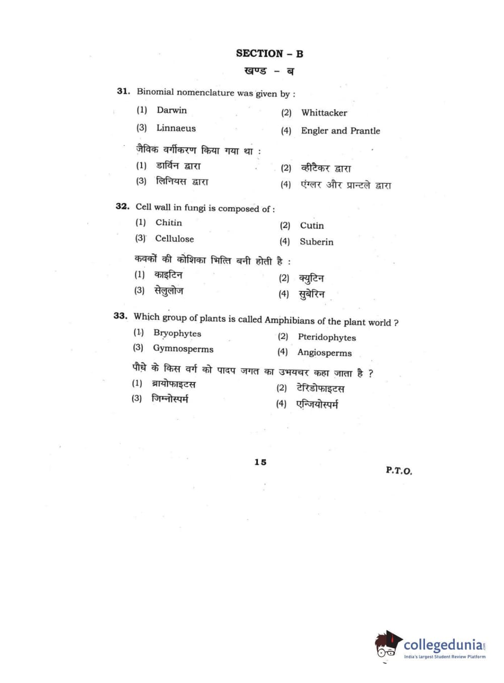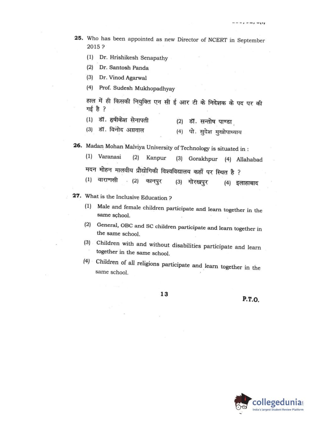 BHU UET 2016 B.Ed. Science Question Paper with Answer Key PDFs