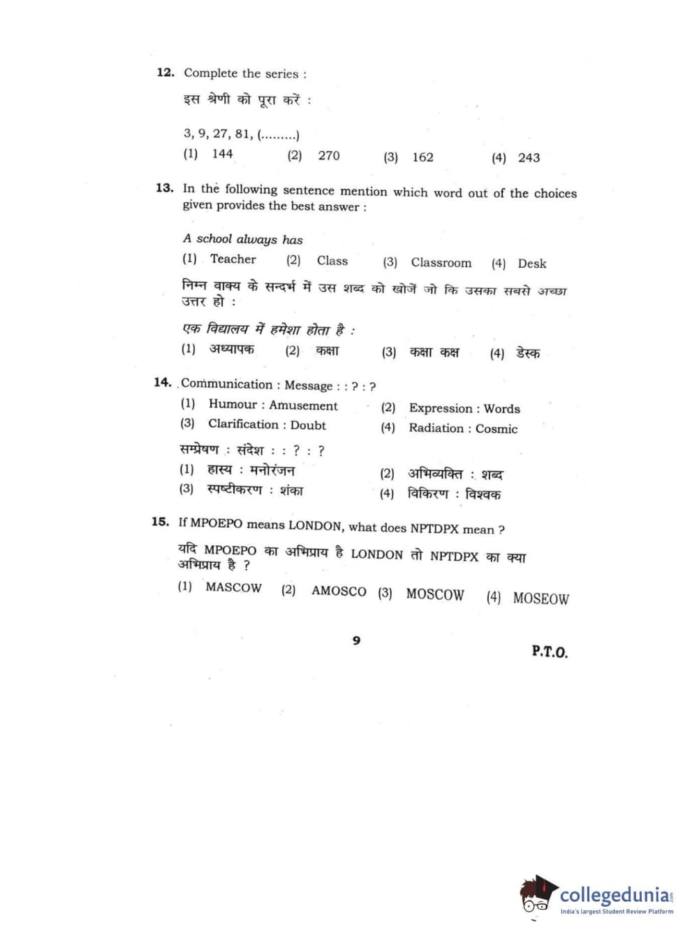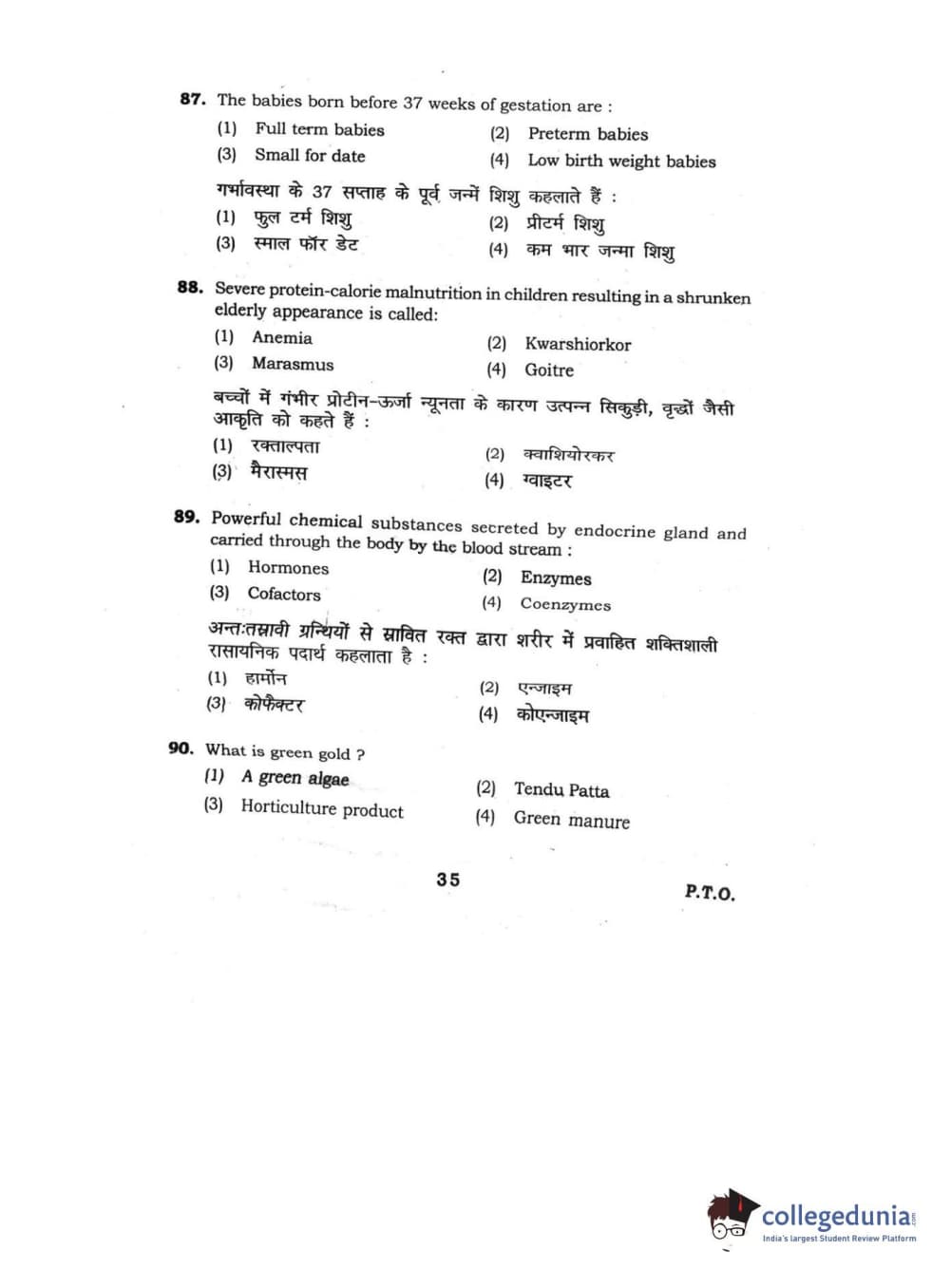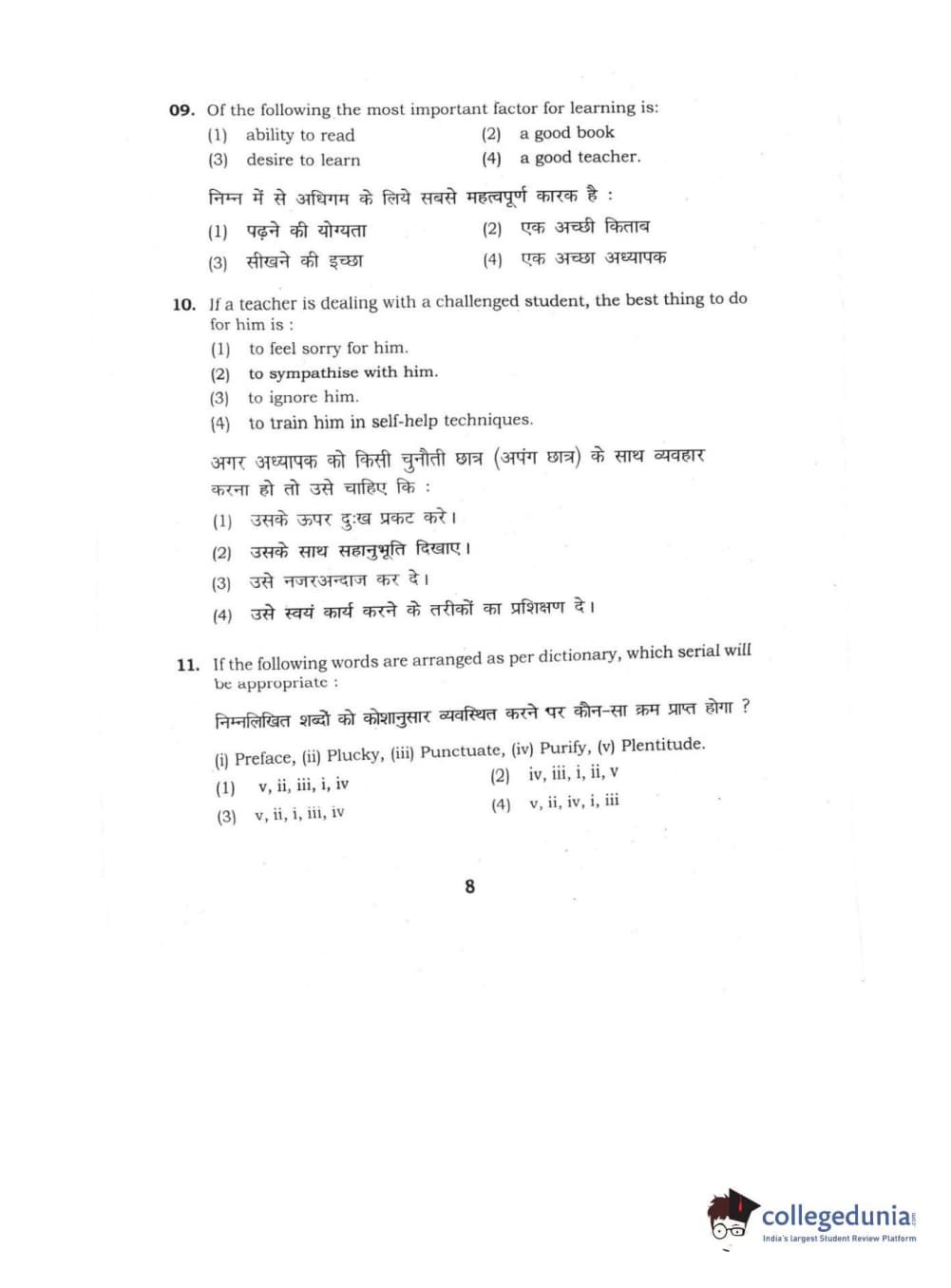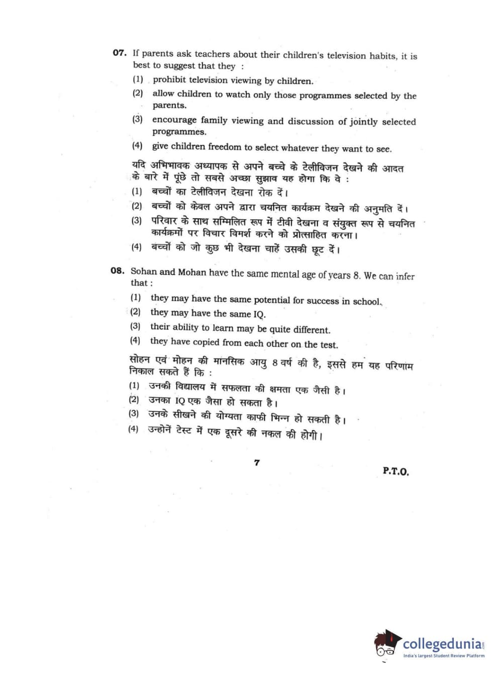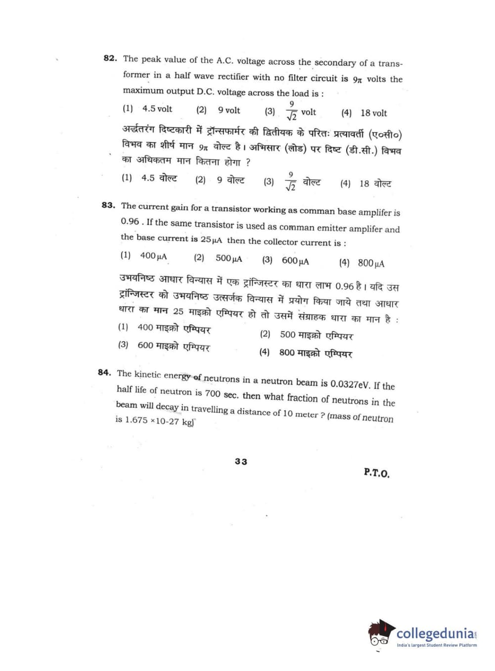BHU UET 2016 B.Ed. Science Question Paper with Answer Key PDFs