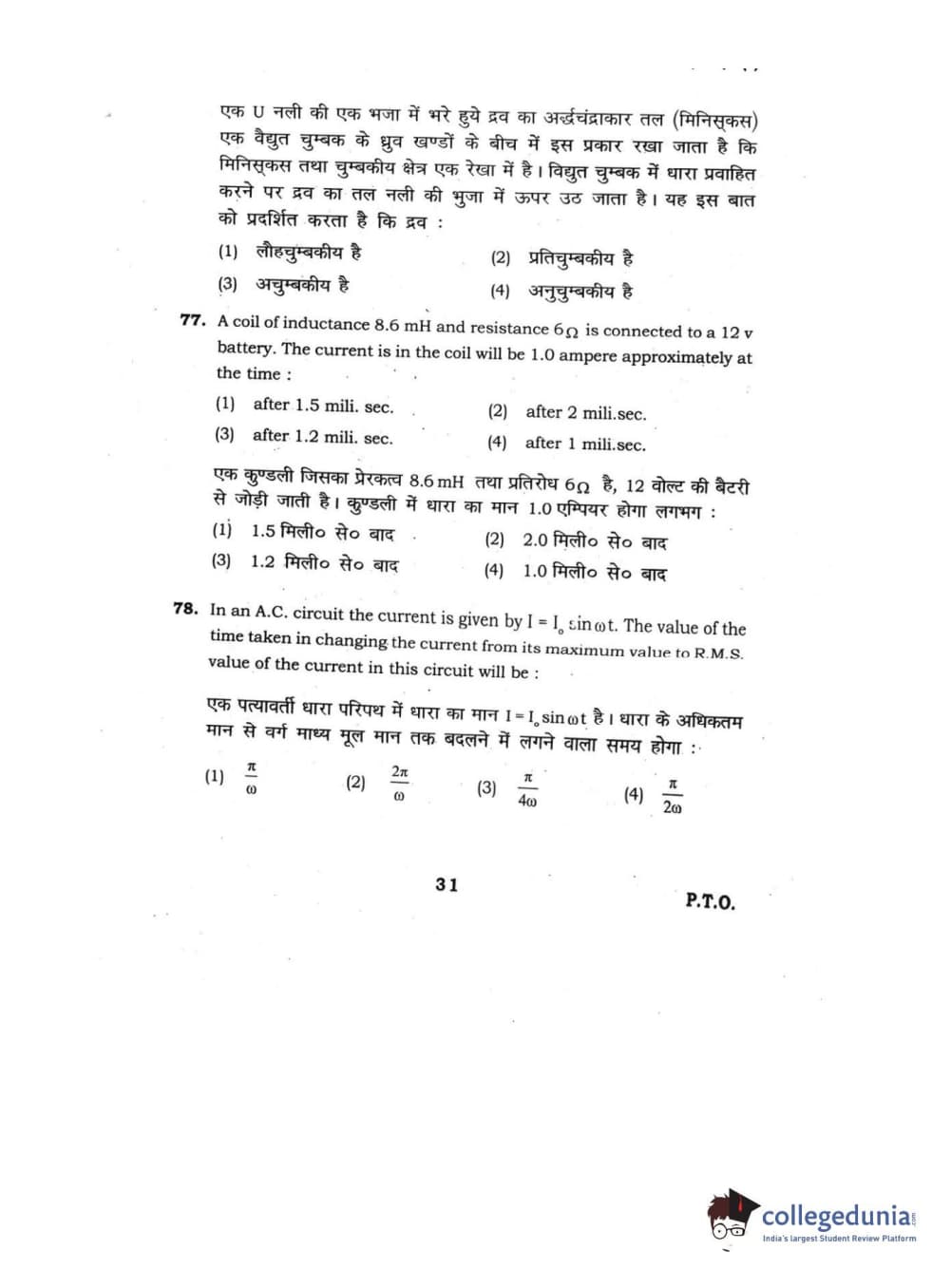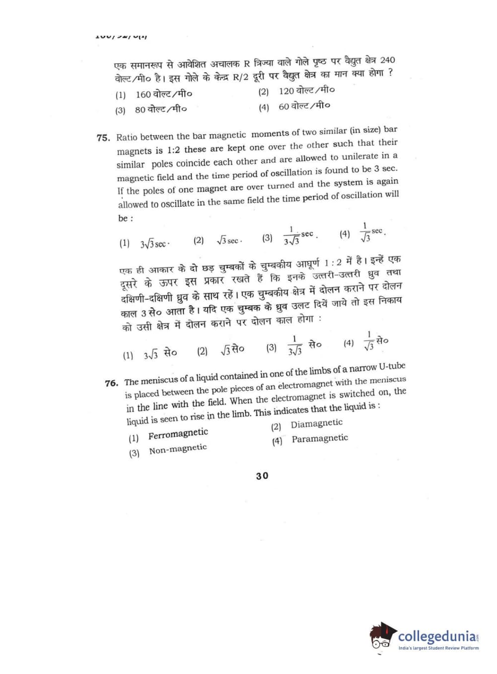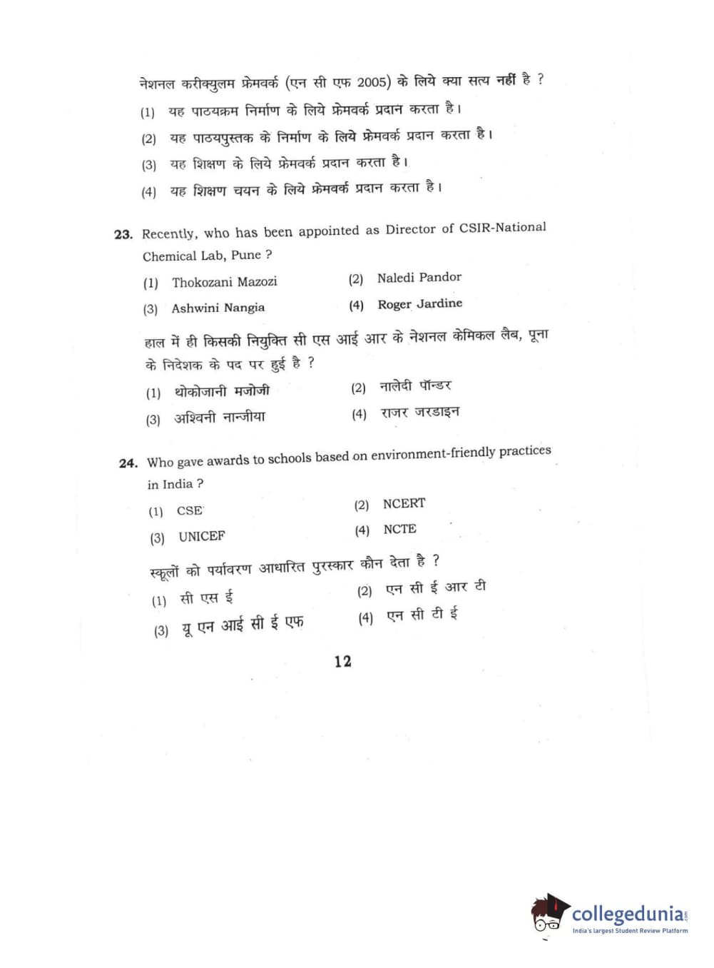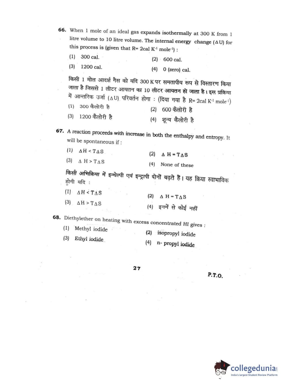 BHU UET 2016 B.Ed. Science Question Paper with Answer Key PDFs
