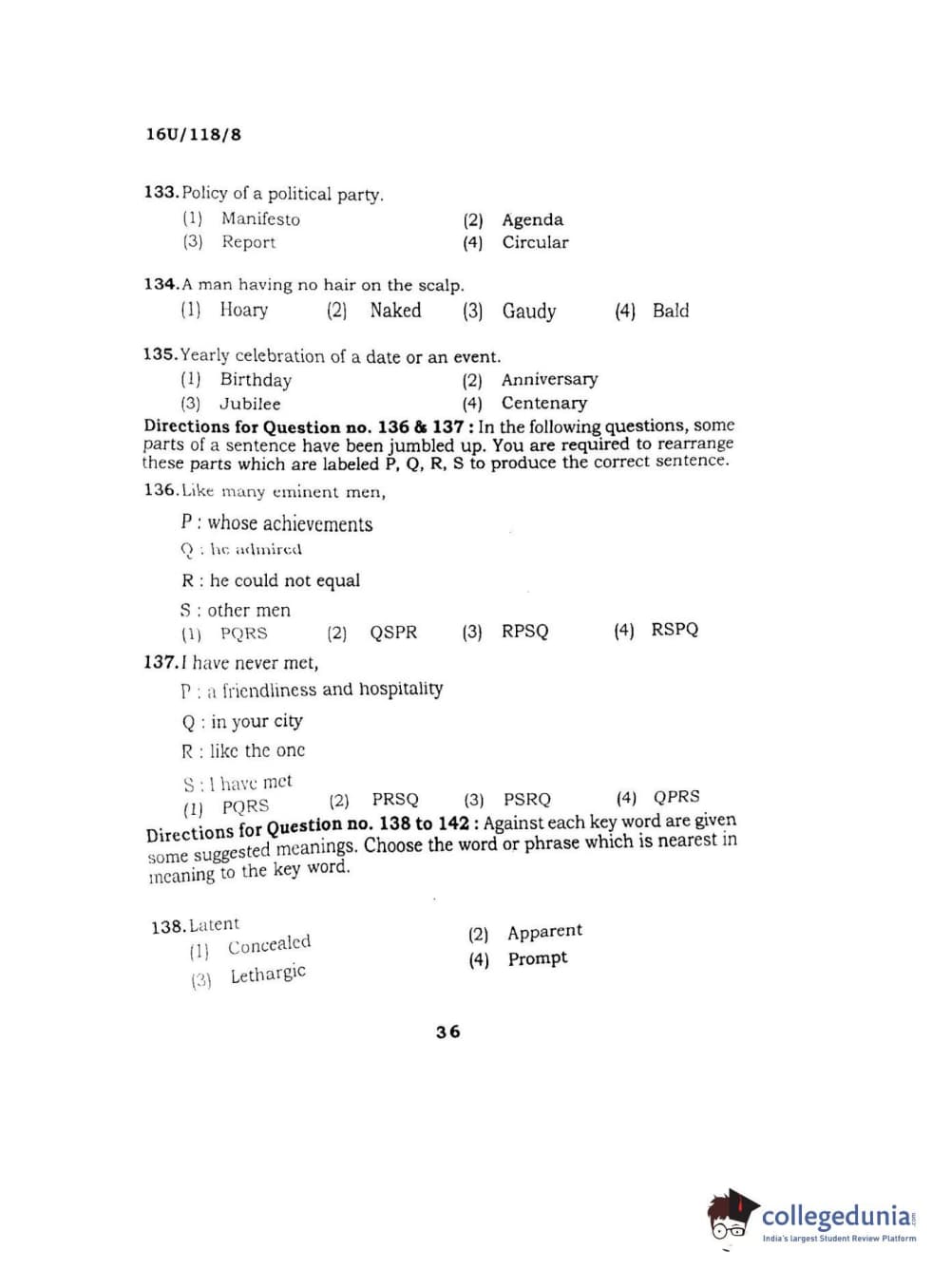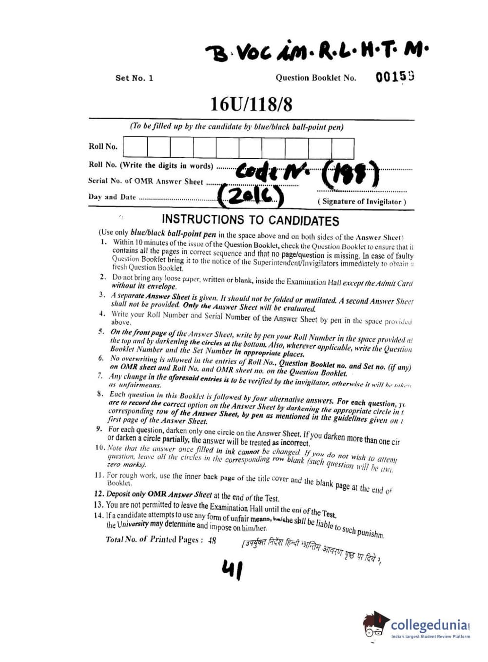 BHU UET 2016 B.Voc in R.L.H.T.M Question paper with answer key pdf is available for download. The exam was successfully organized by Banaras Hindu University (BHU). The question paper comprised a total of 180 questions.