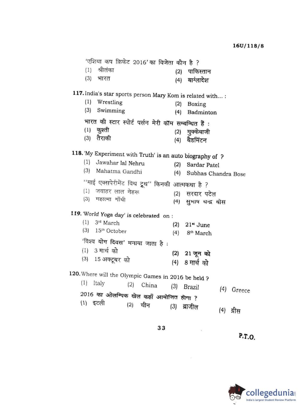 | BHU UET 2016 B.Voc in R.L.H.T.M Question Paper PDF | BHU UET 2016 B.Voc in R.L.H.T.M Answer Key PDF |