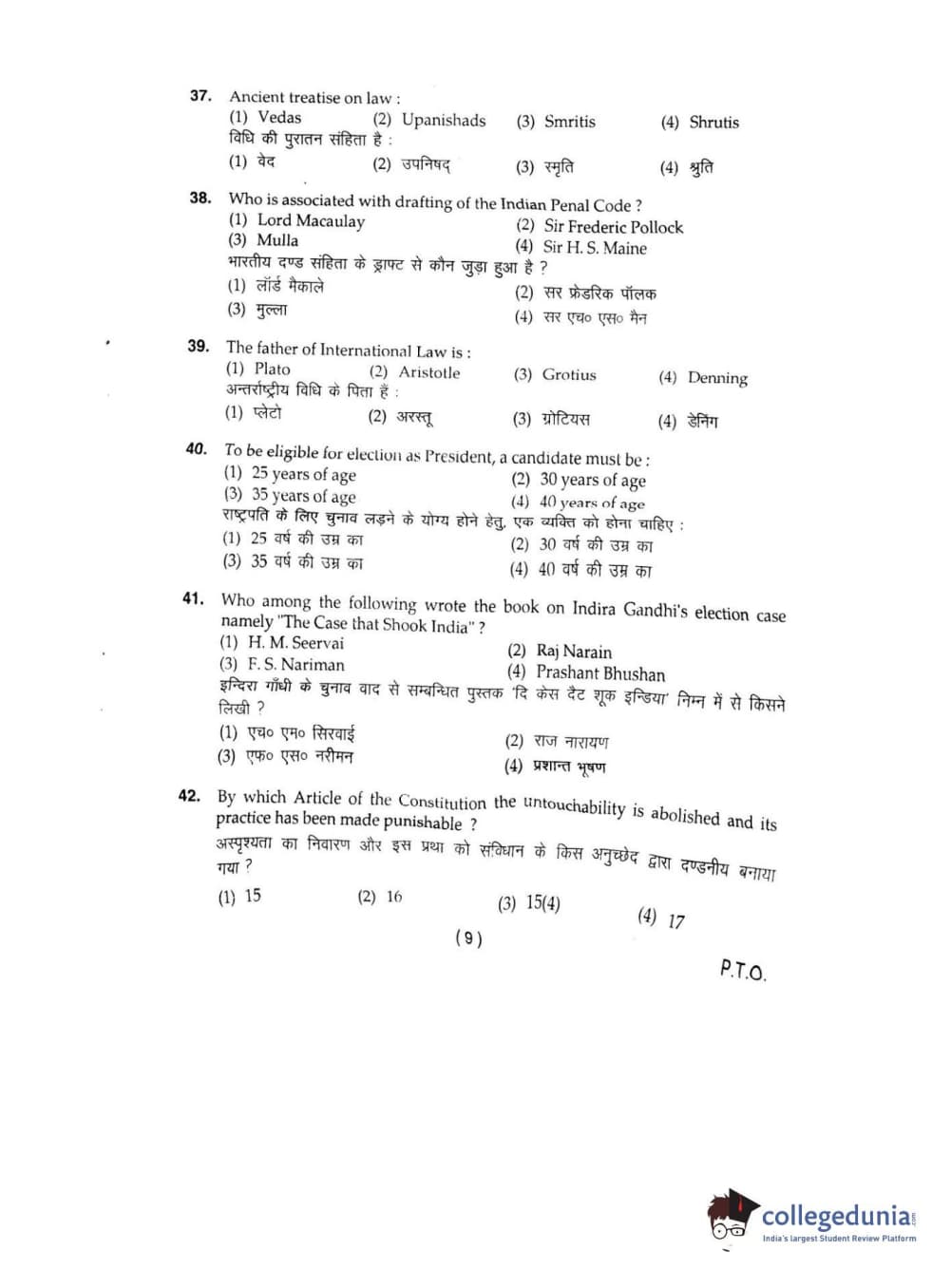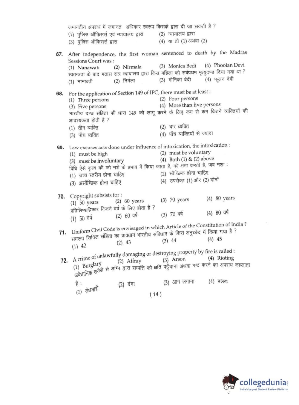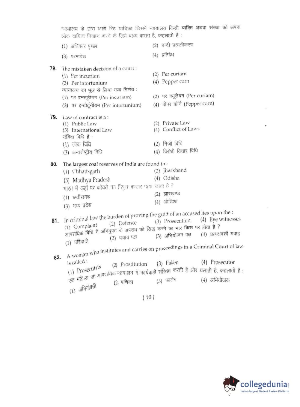 BHU UET 2016 L.L.B Question Paper with Answer Key PDFs