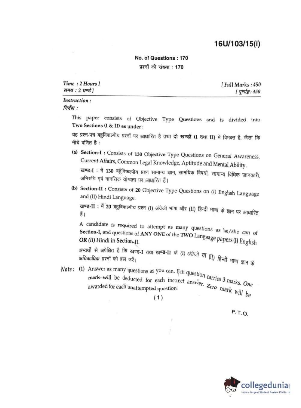 BHU UET 2016 L.L.B Question paper with answer key pdf is available for download. The exam was successfully organized by Banaras Hindu University (BHU). The question paper comprised a total of 170 questions.