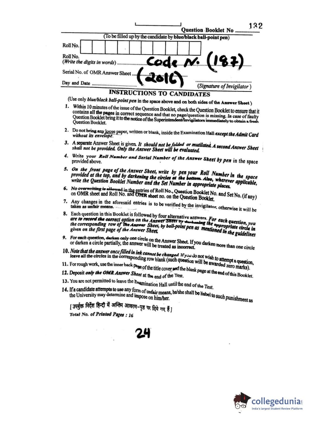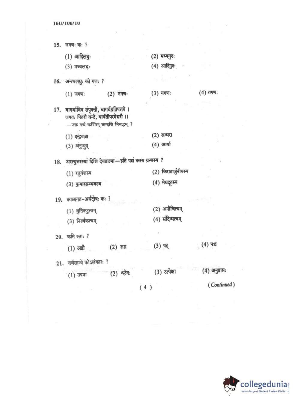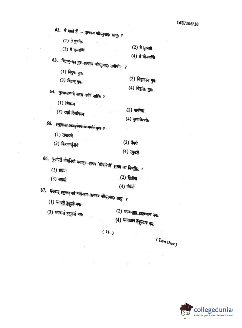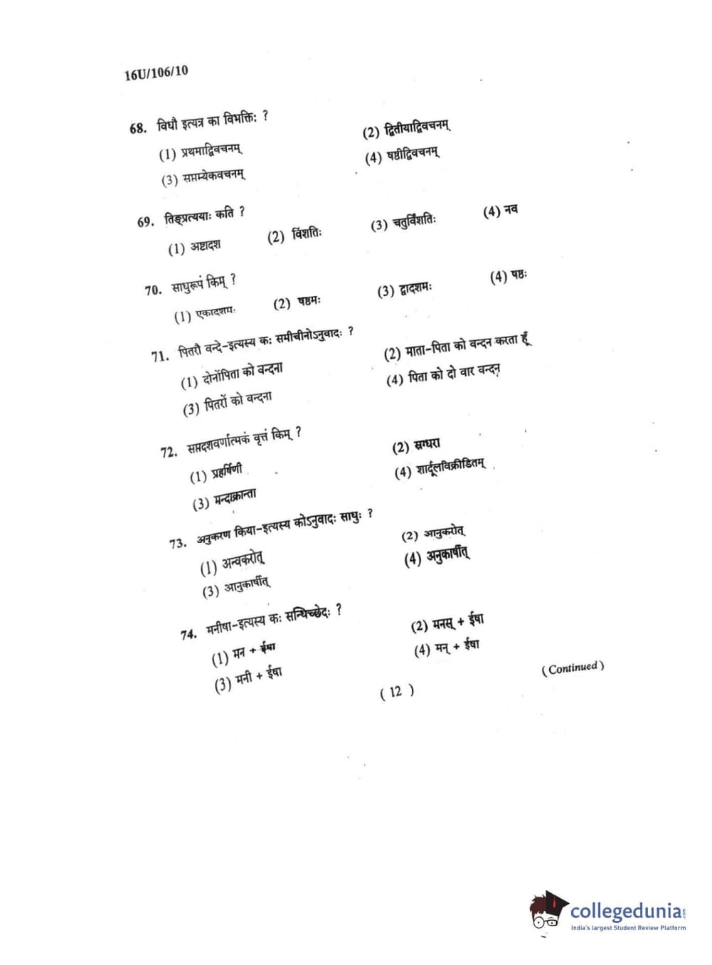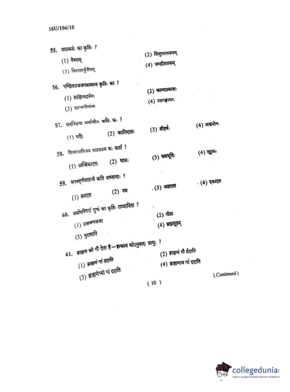 BHU UET 2016 SHASTRI Question paper with answer key pdf is available for download. The exam was successfully organized by Banaras Hindu University (BHU). The question paper comprised a total of 100 questions.