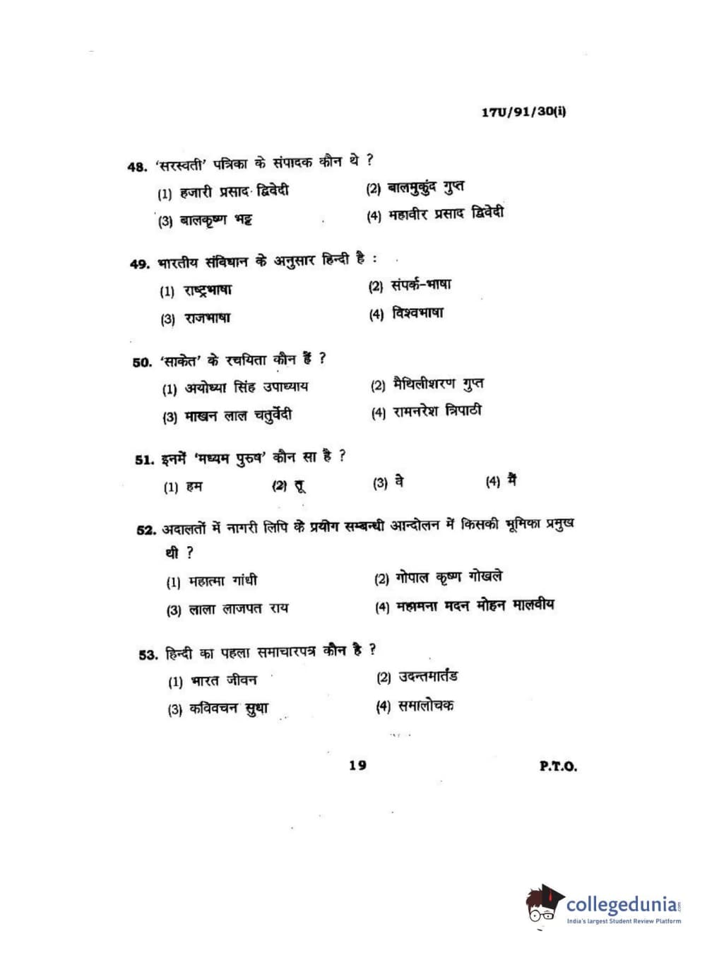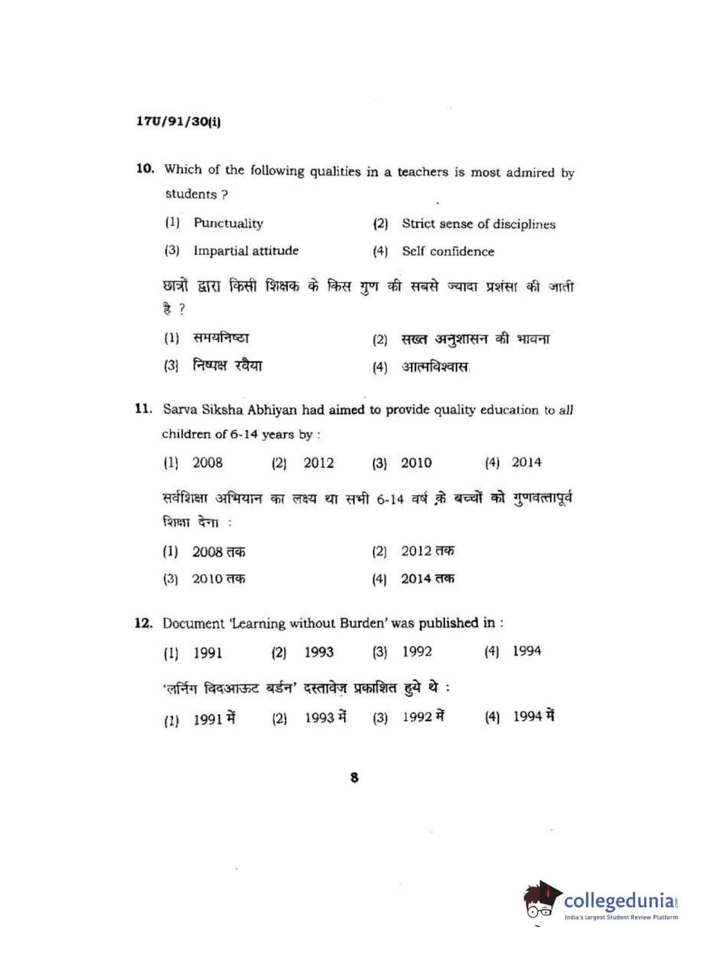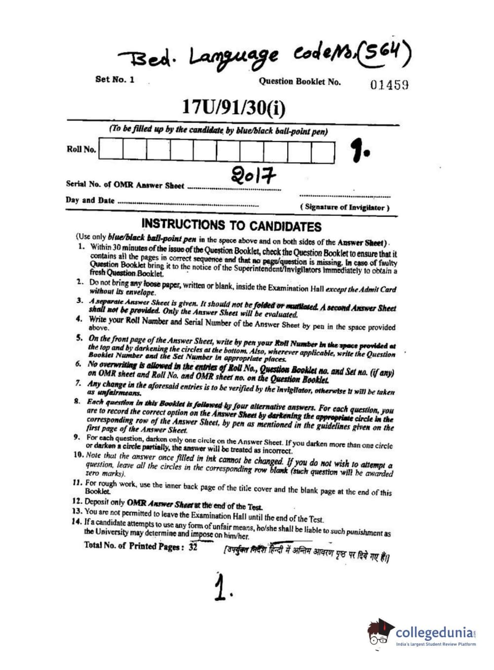BHU UET 2017 B.Ed. Language Question Paper with Answer Key PDFs