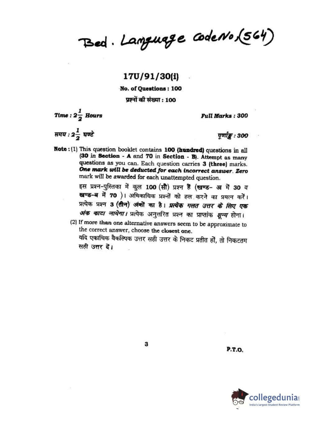 BHU UET 2017 B.Ed. Language Question paper with answer key pdf is available for download. The exam was successfully organized by Banaras Hindu University (BHU). The question paper comprised a total of 100 questions.