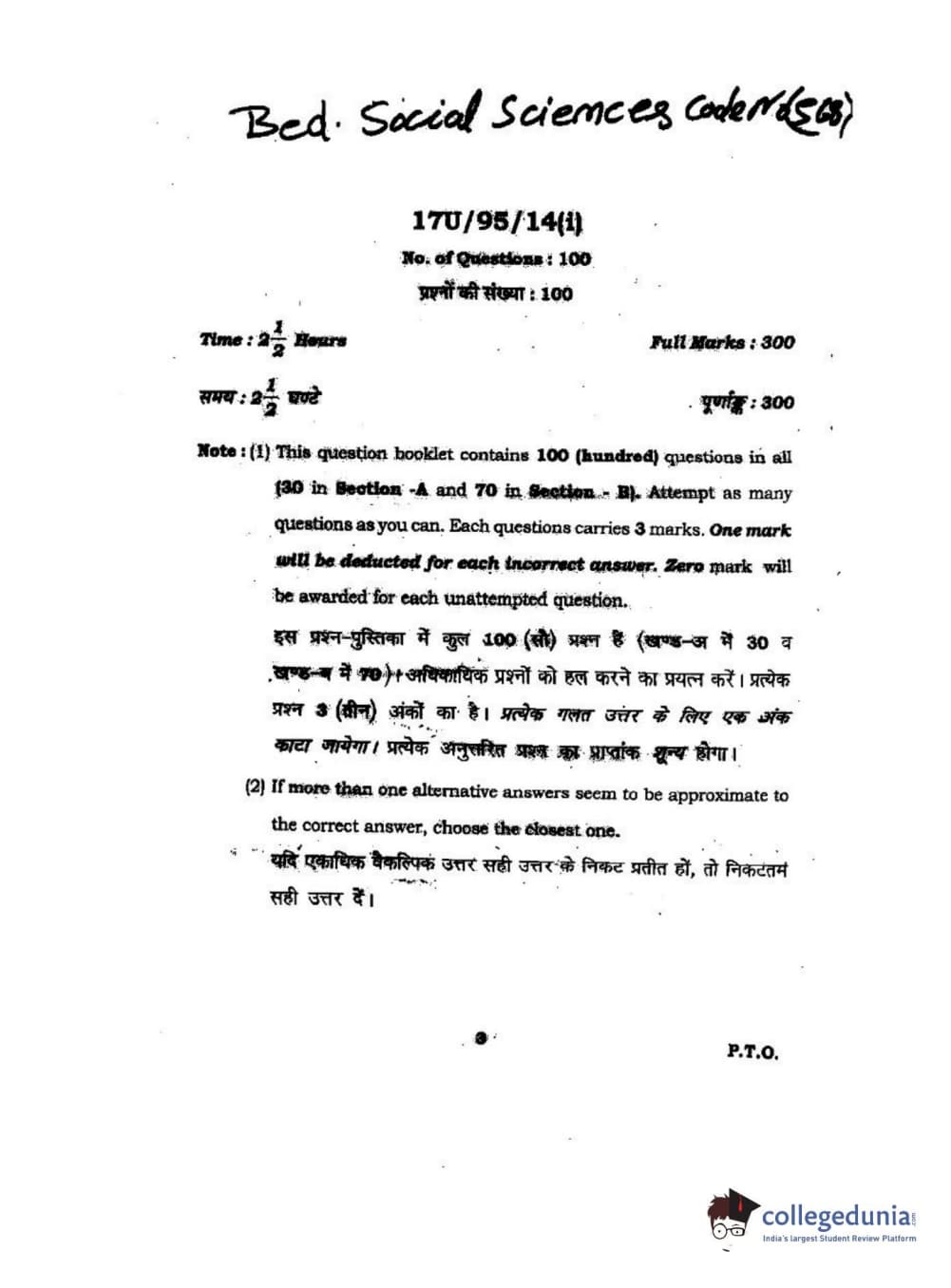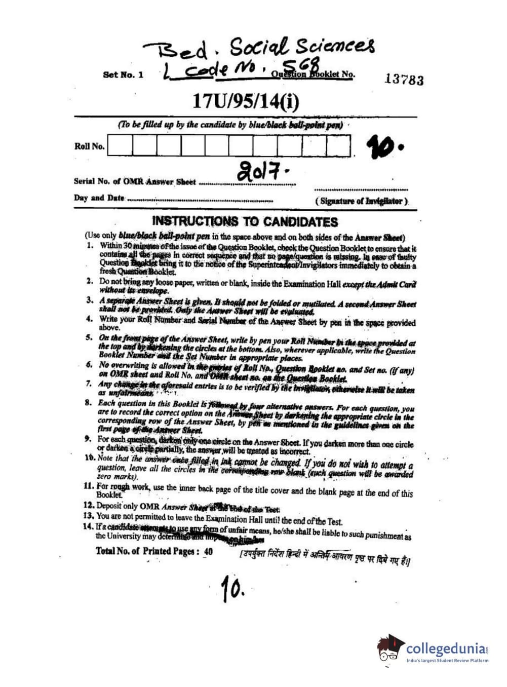 | BHU UET 2017 B.Ed Social Science Question Paper PDF | BHU UET 2017 B.Ed Social Science Answer Key PDF |