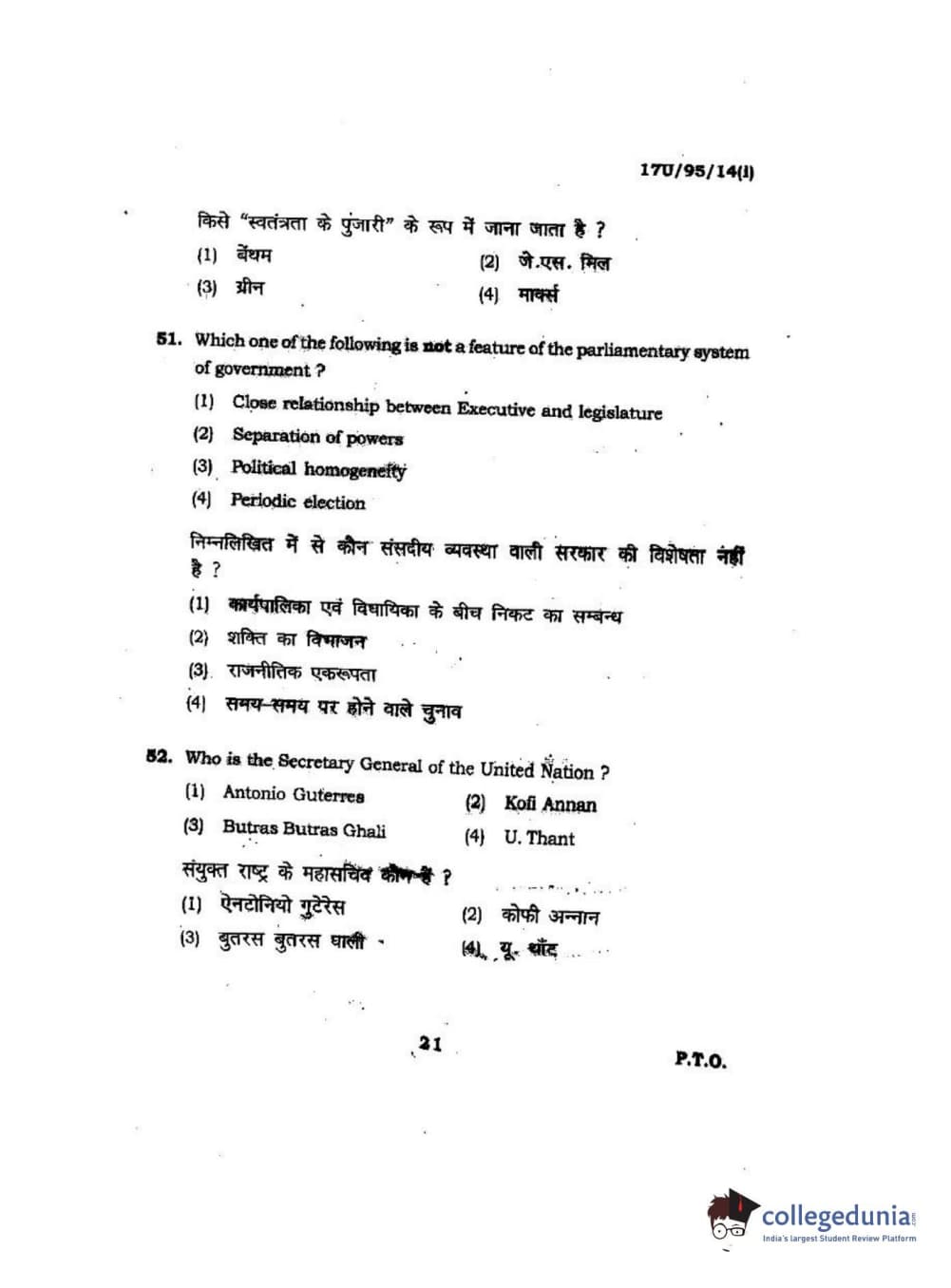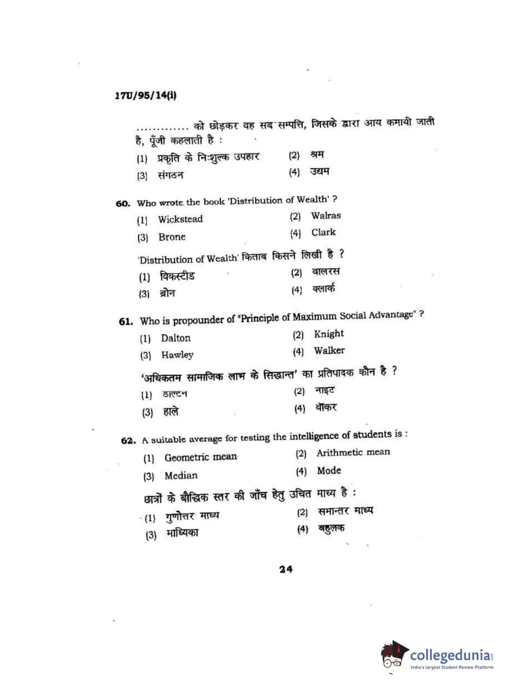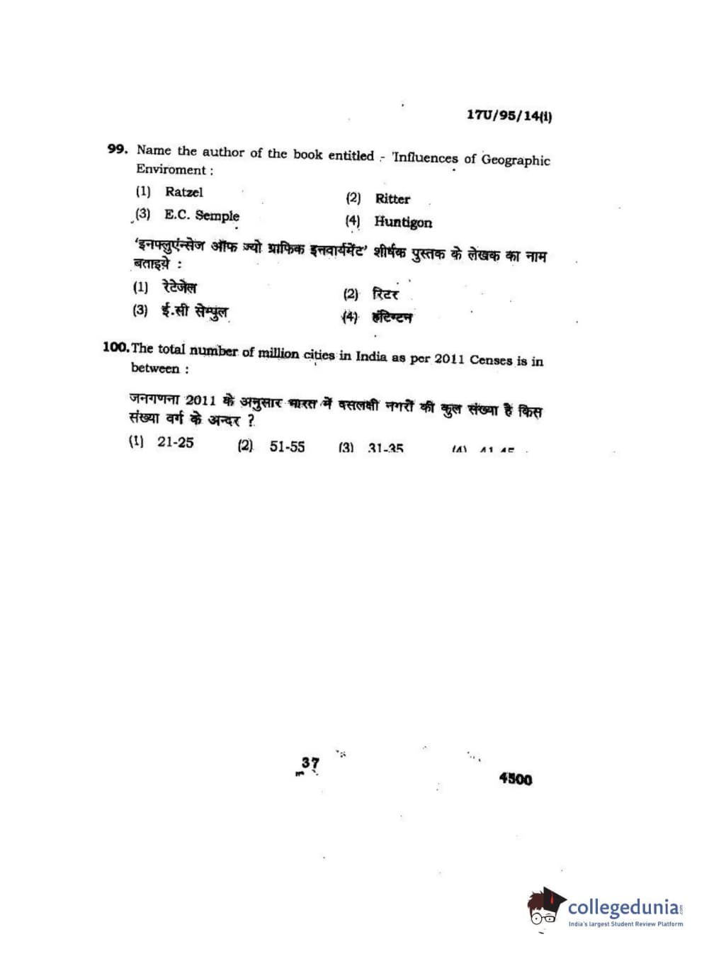 BHU UET 2017 B.Ed Social Science Question Paper with Answer Key PDFs
