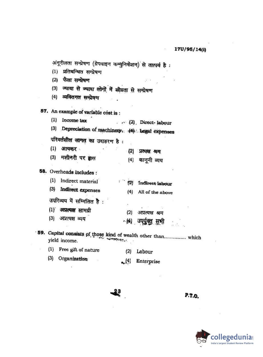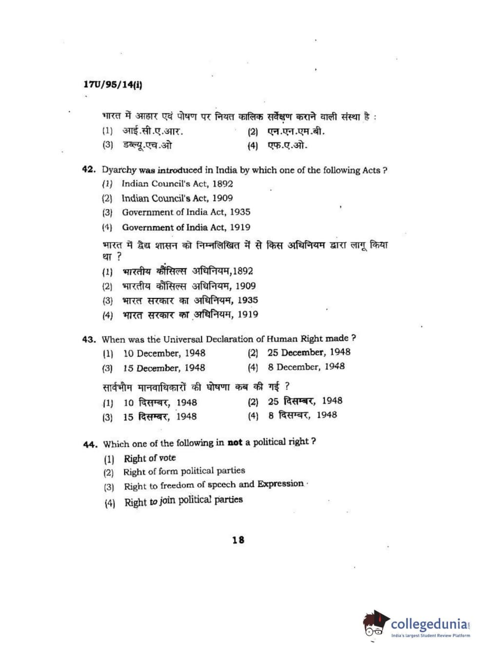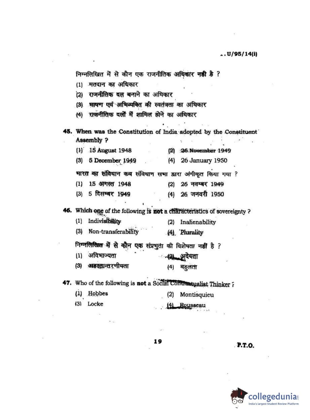 BHU UET 2017 B.Ed Social Science Question Paper with Answer Key PDFs