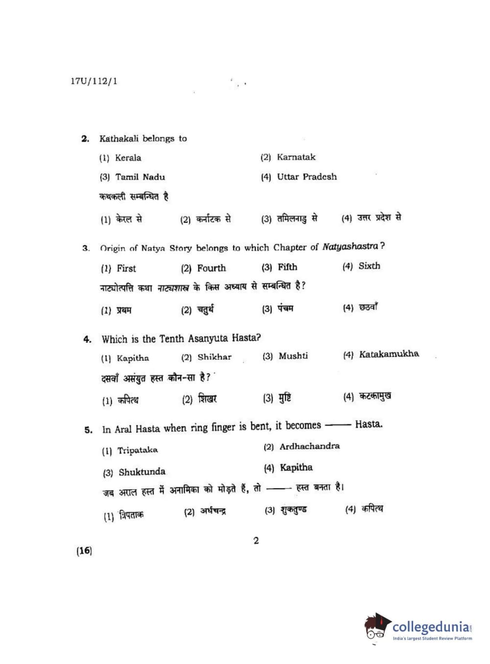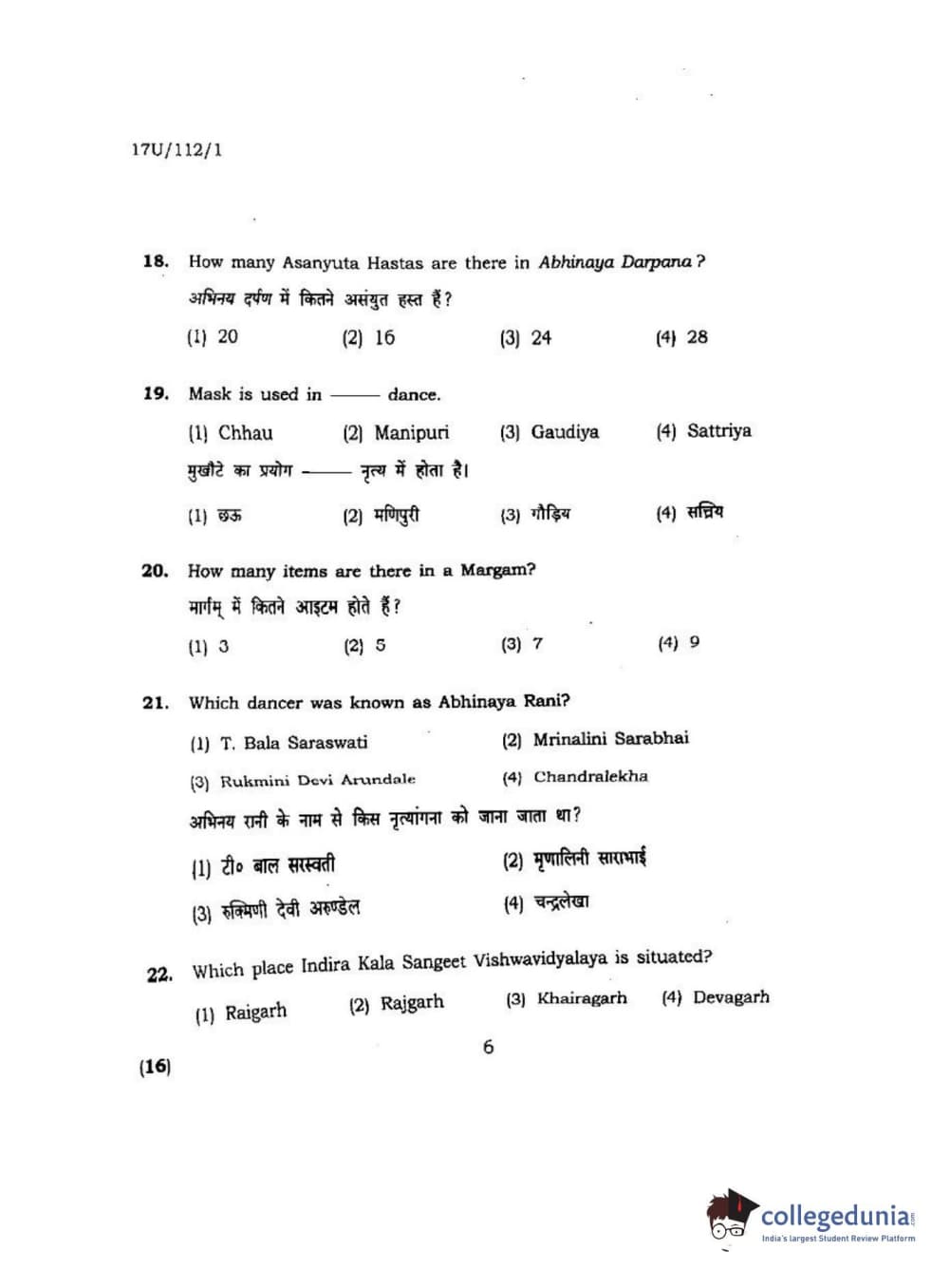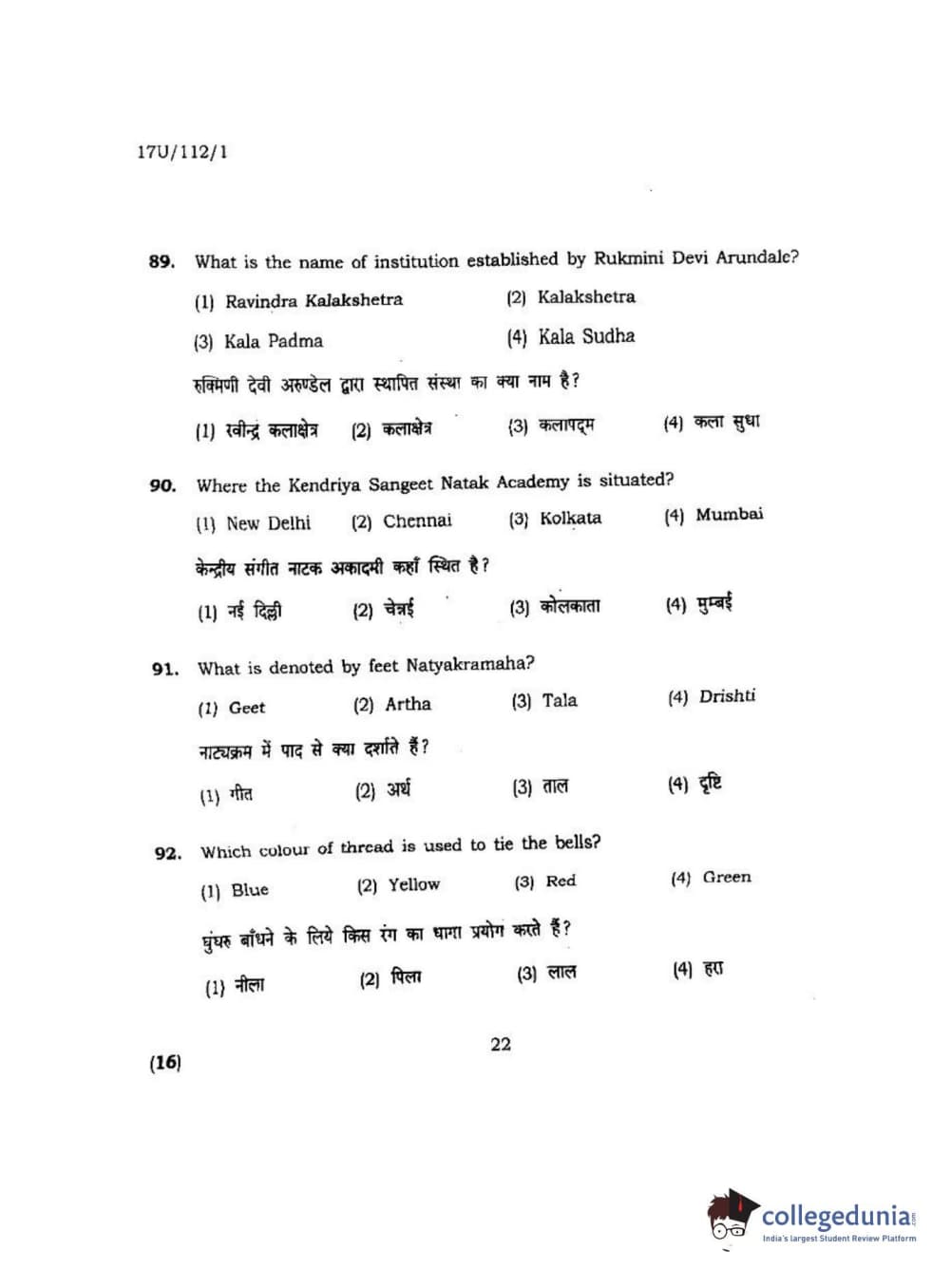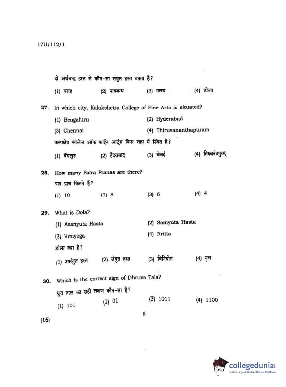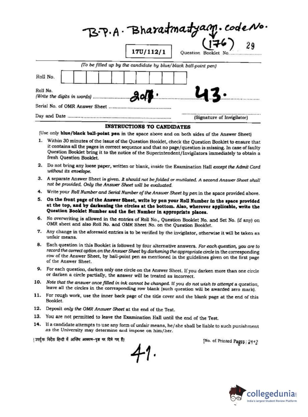 BHU UET 2017 B.P.A Bhartnatyam Question paper with answer key pdf is available for download. The exam was successfully organized by Banaras Hindu University (BHU). The question paper comprised a total of 100 questions.
