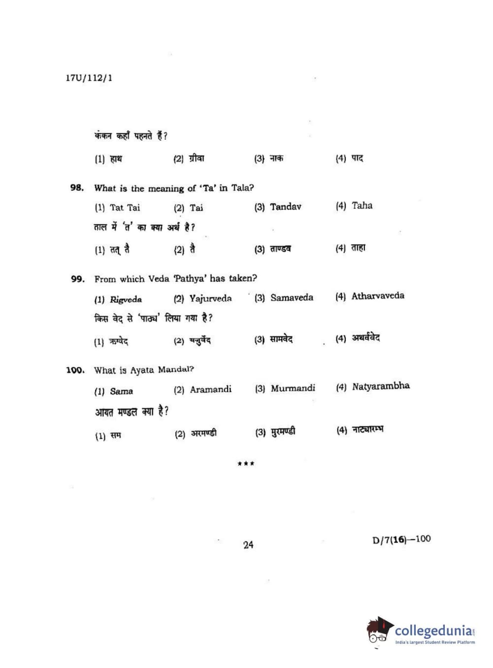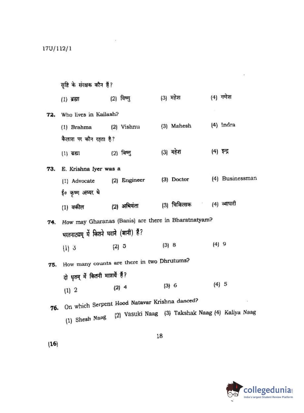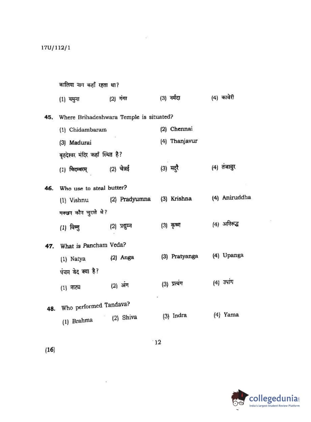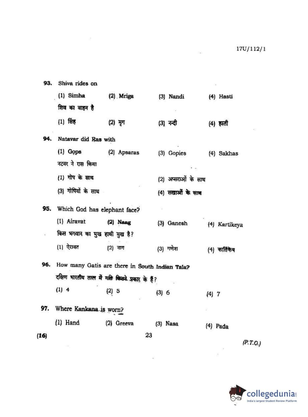 BHU UET 2017 B.P.A Bhartnatyam Question paper with answer key pdf is available for download. The exam was successfully organized by Banaras Hindu University (BHU). The question paper comprised a total of 100 questions.