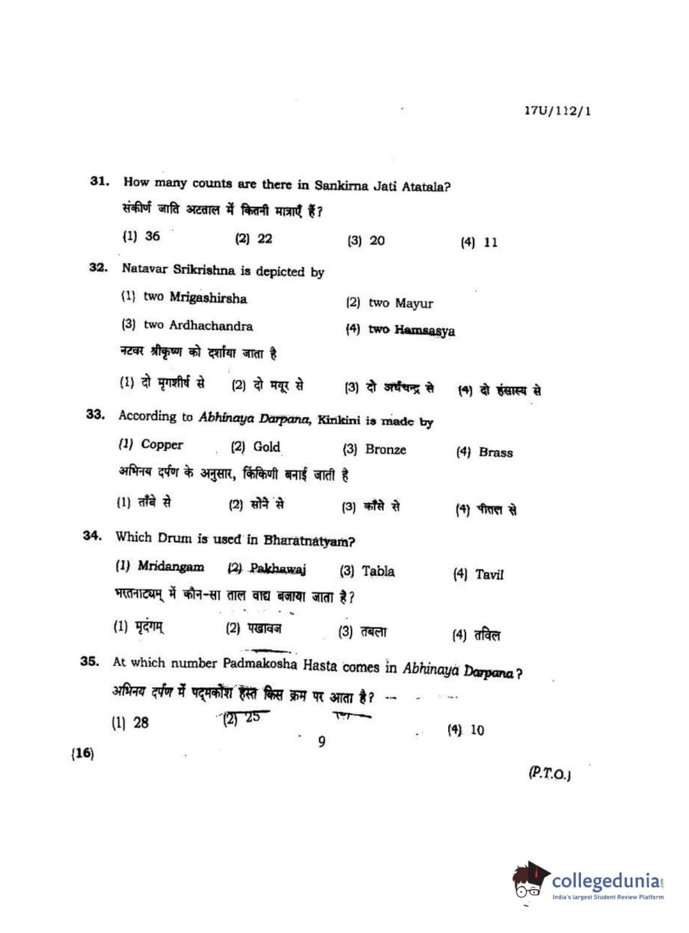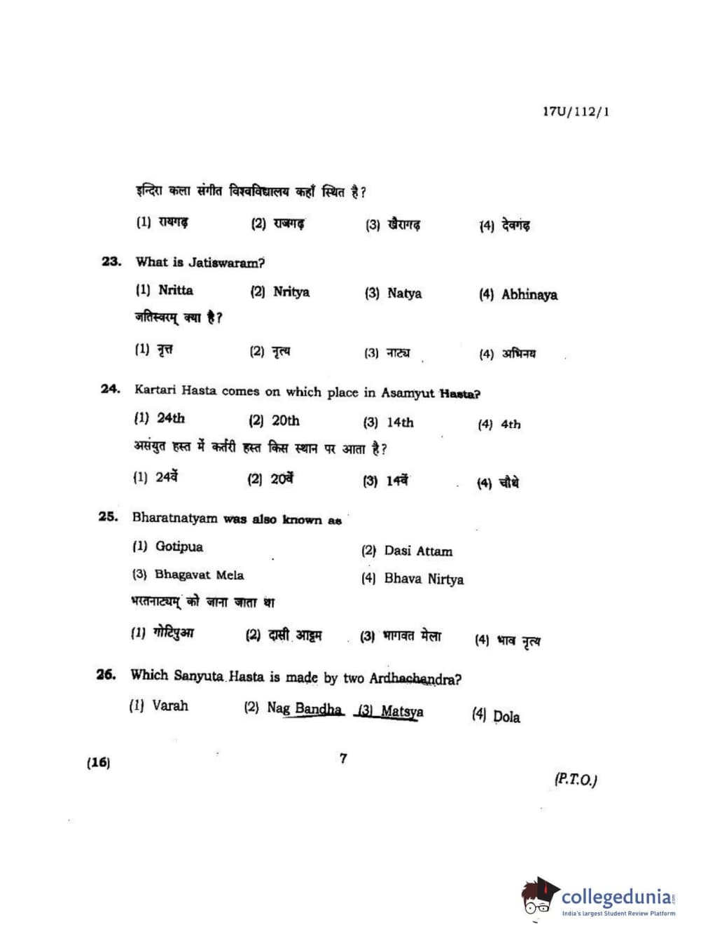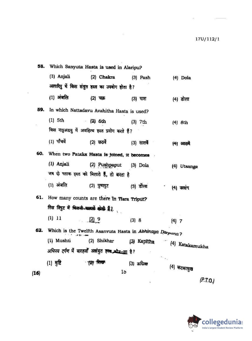 BHU UET 2017 B.P.A Bhartnatyam Question Paper with Answer Key PDFs