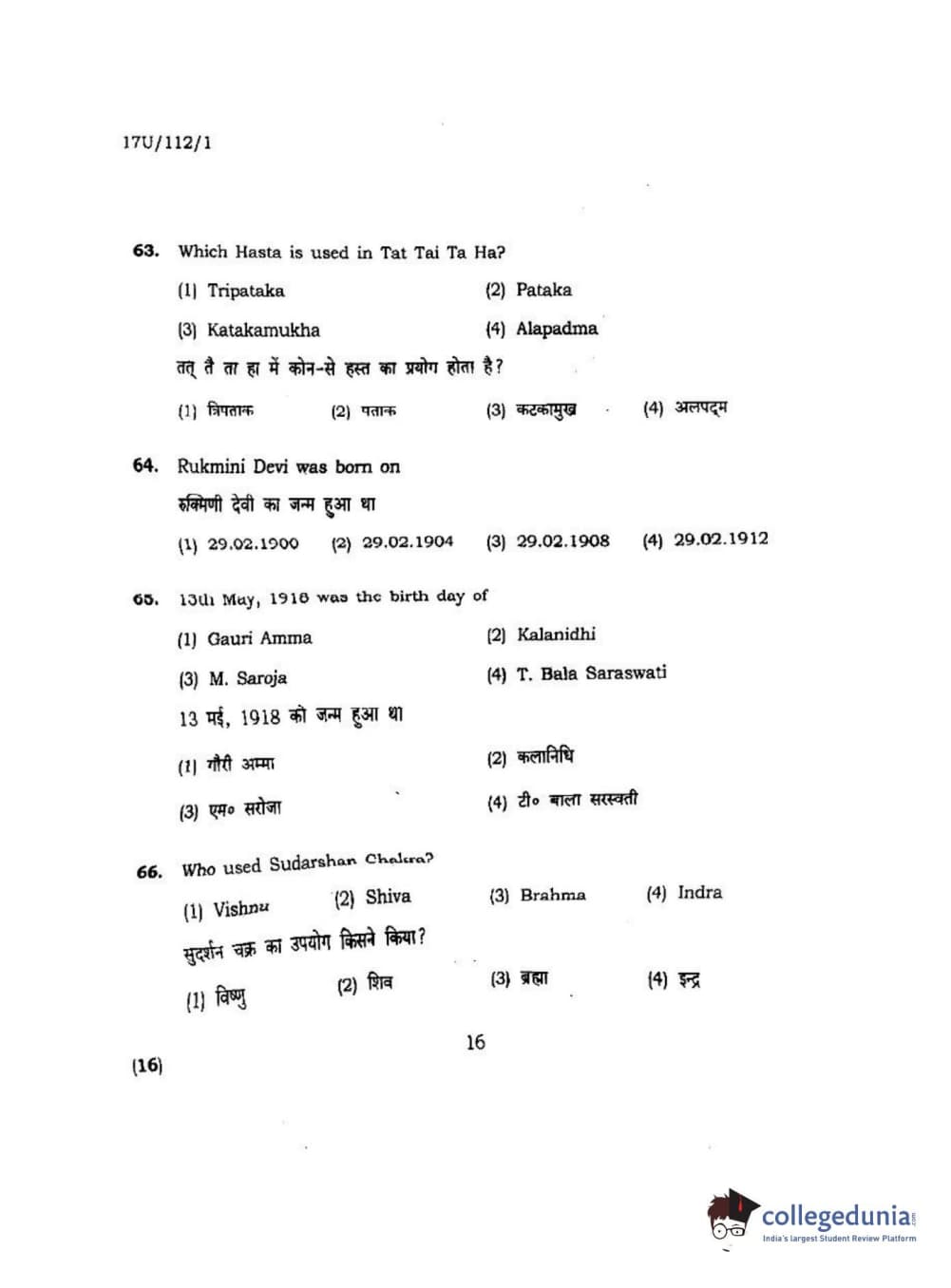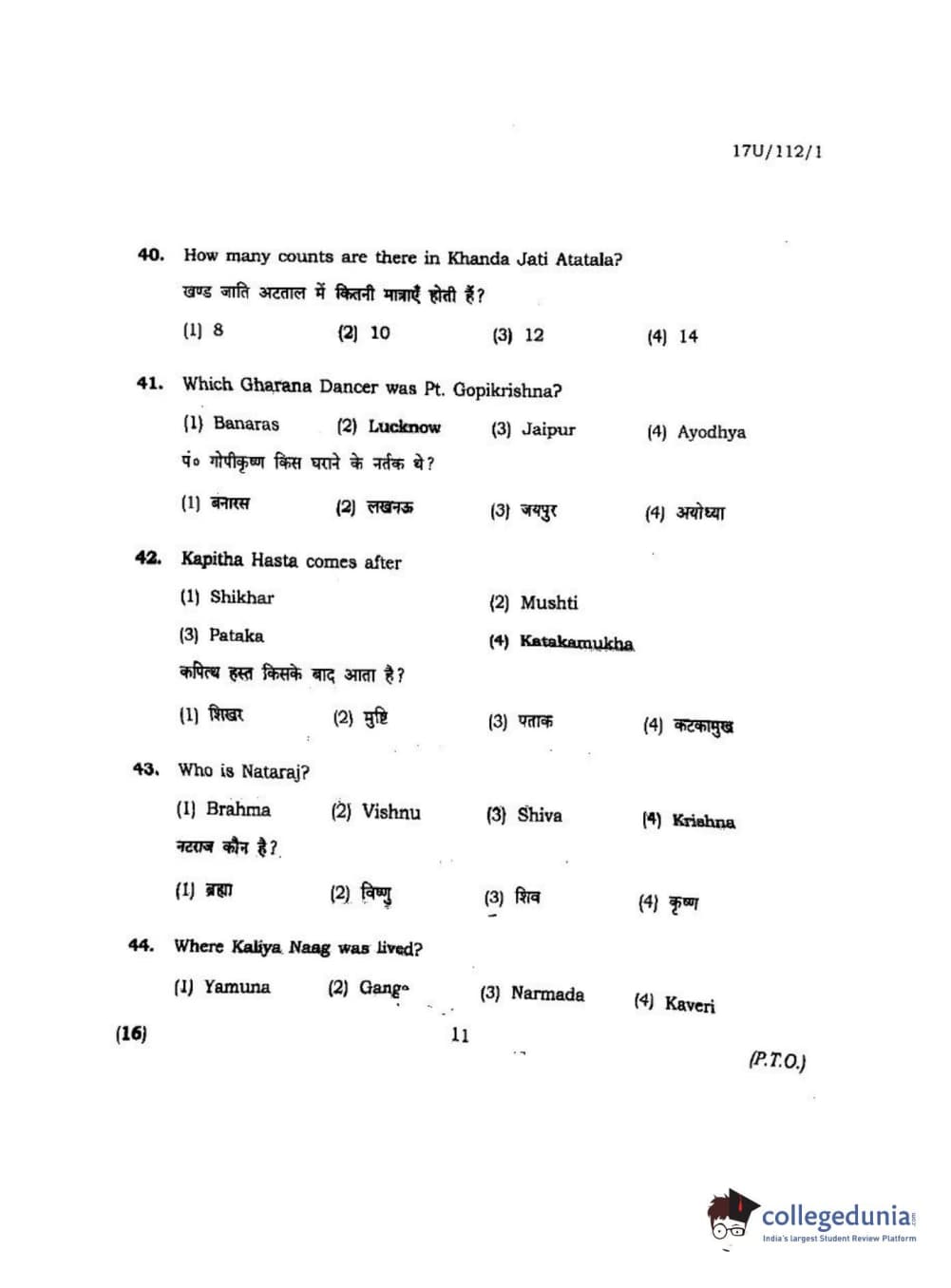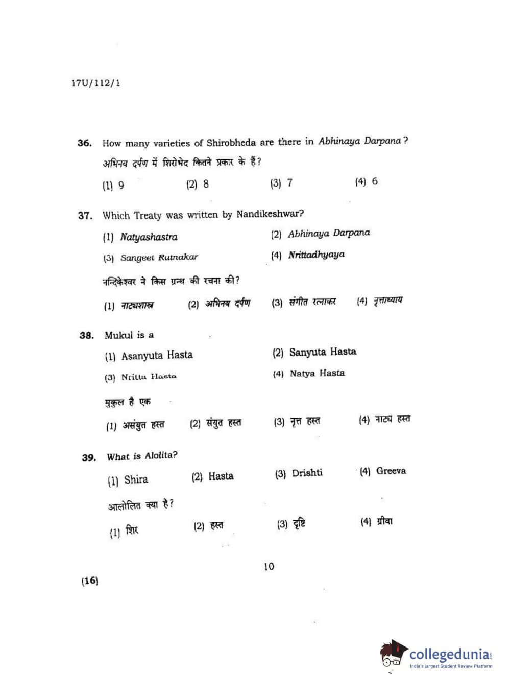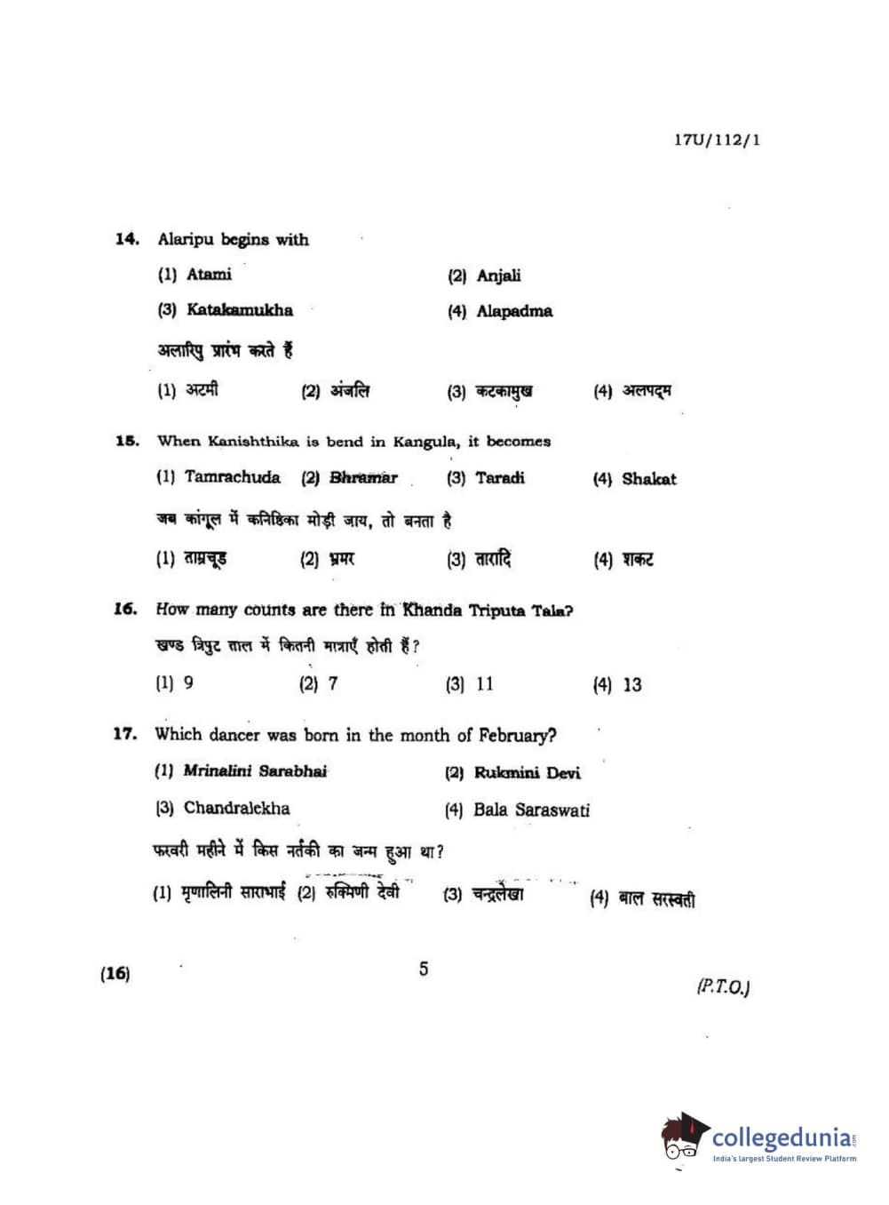 BHU UET 2017 B.P.A Bhartnatyam Question Paper with Answer Key PDFs