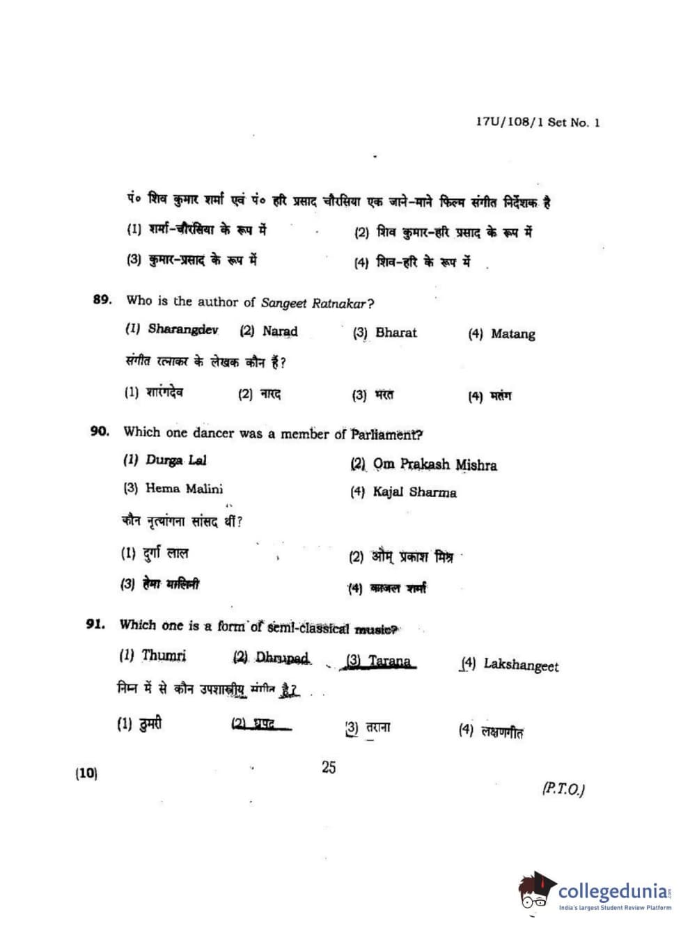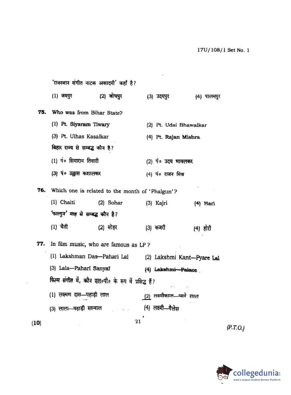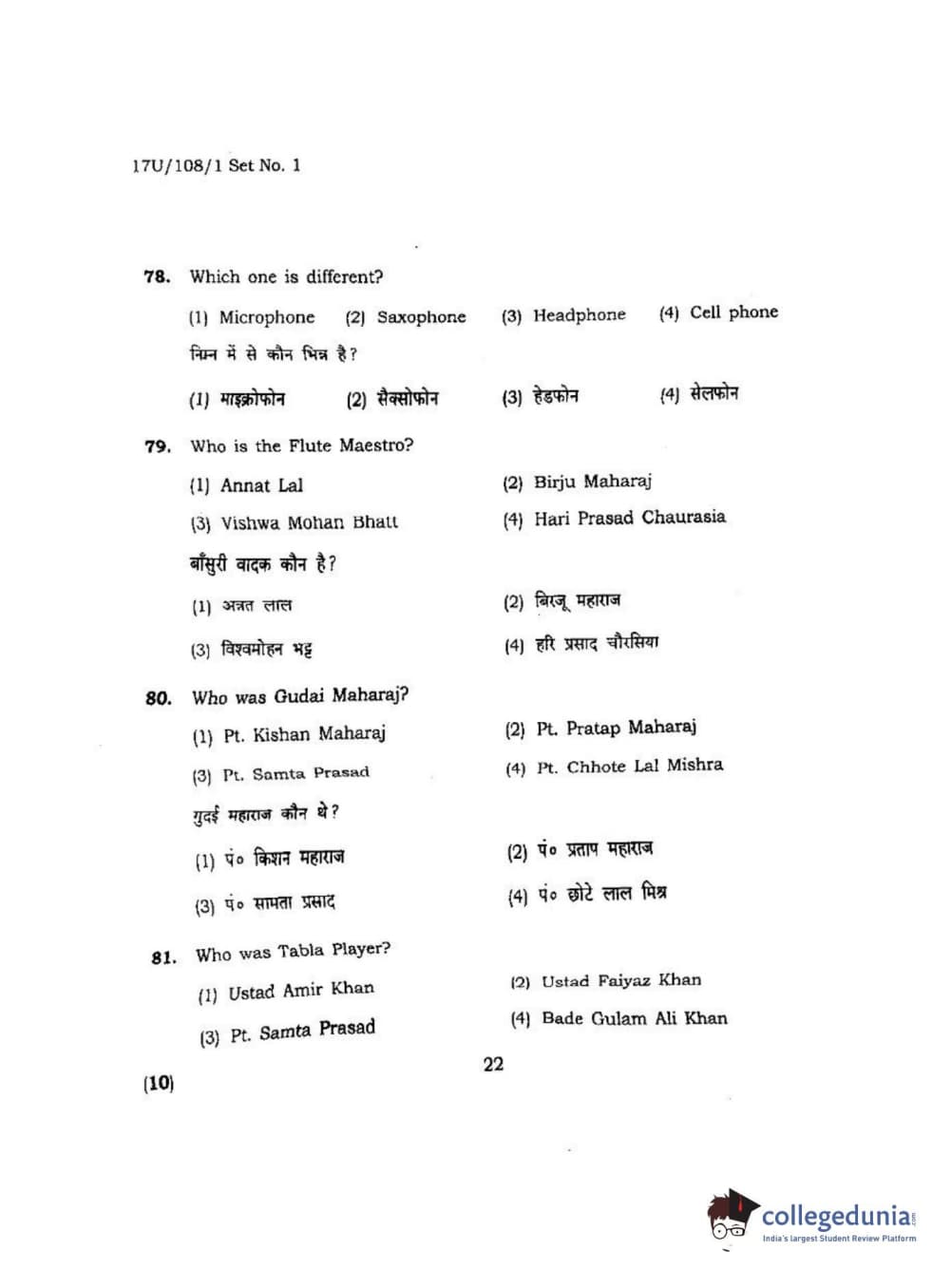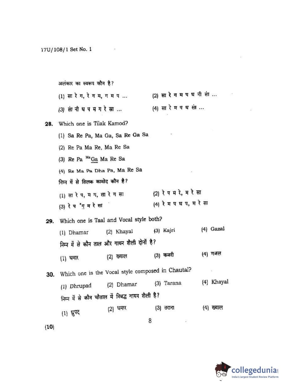 BHU UET 2017 B.P.A Vocal Question Paper with Answer Key PDFs