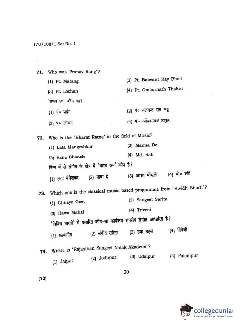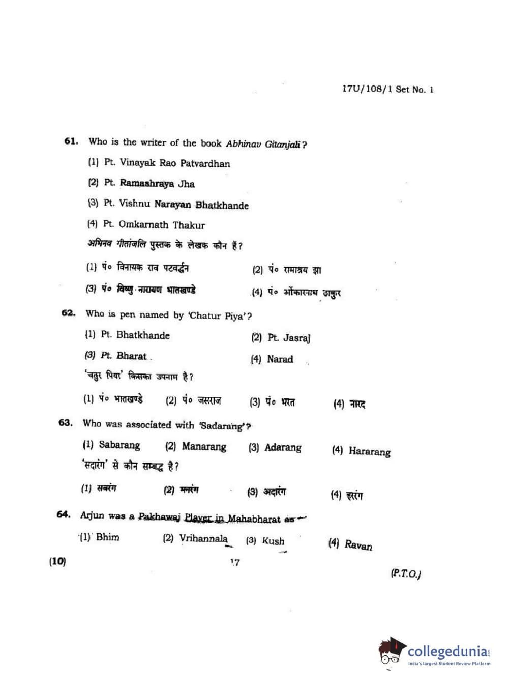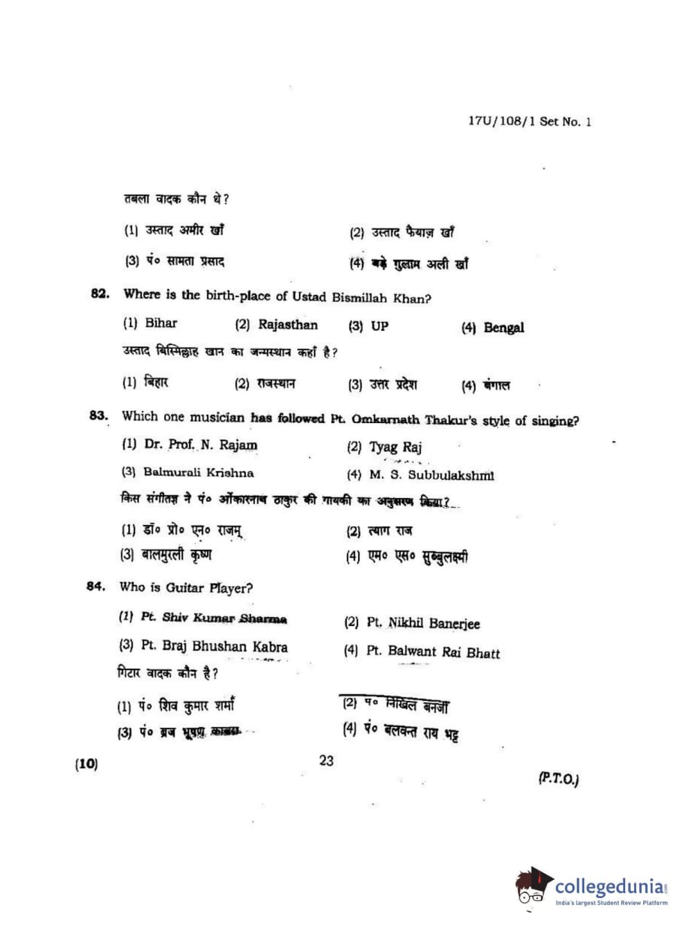 | BHU UET 2017 B.P.A Vocal Question Paper PDF | BHU UET 2017 B.P.A Vocal Answer Key PDF |