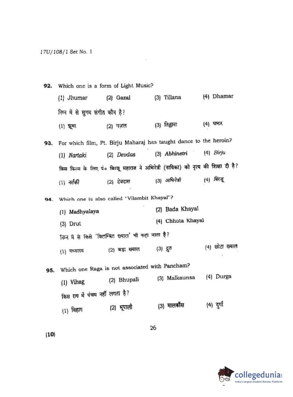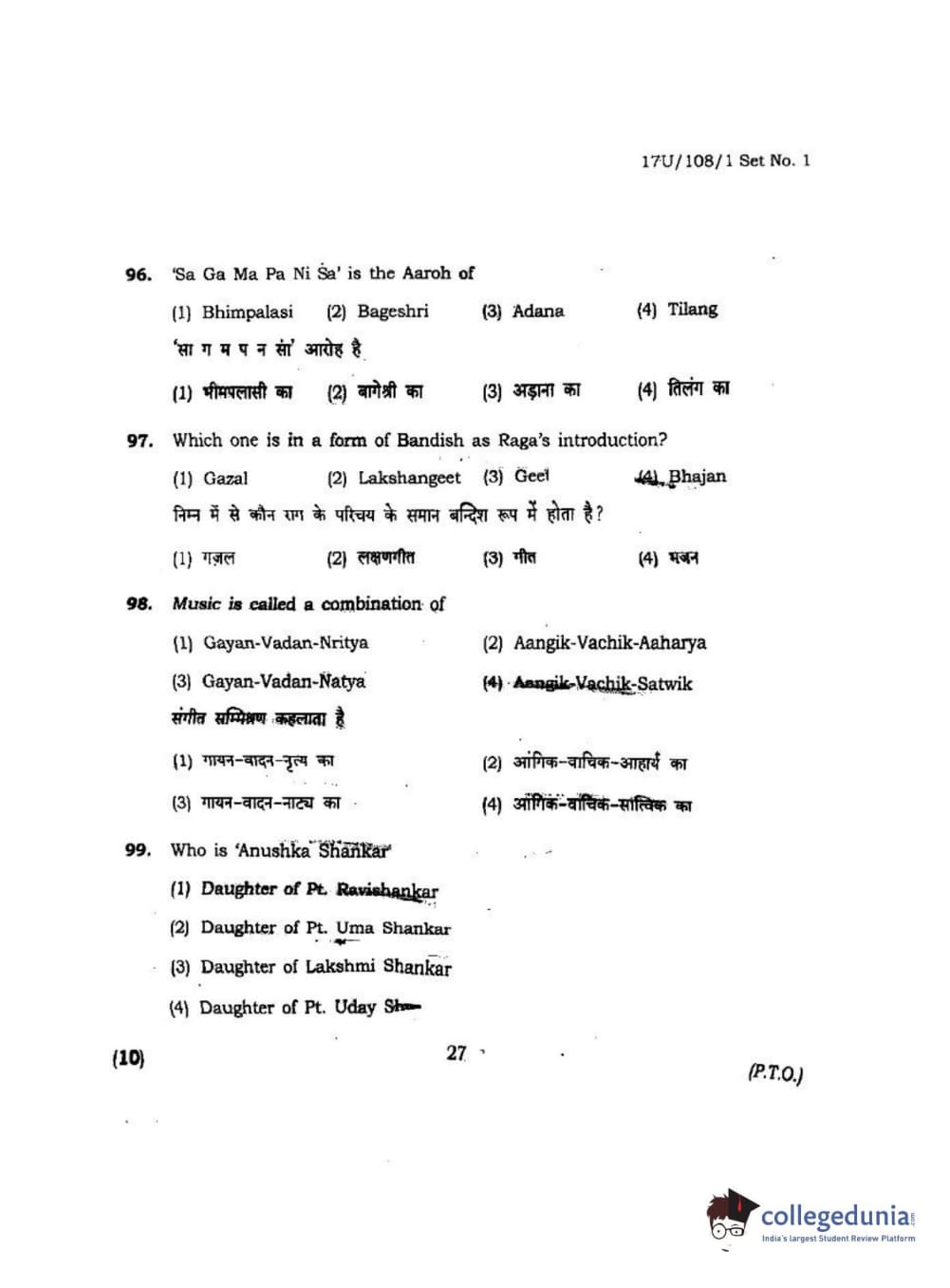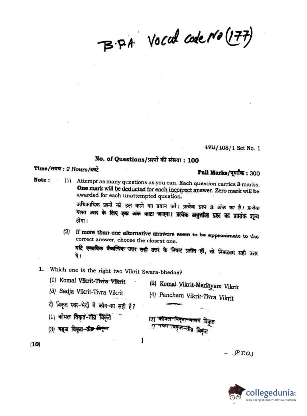 BHU UET 2017 B.P.A Vocal Question paper with answer key pdf is available for download. The exam was successfully organized by Banaras Hindu University (BHU). The question paper comprised a total of 100 questions.