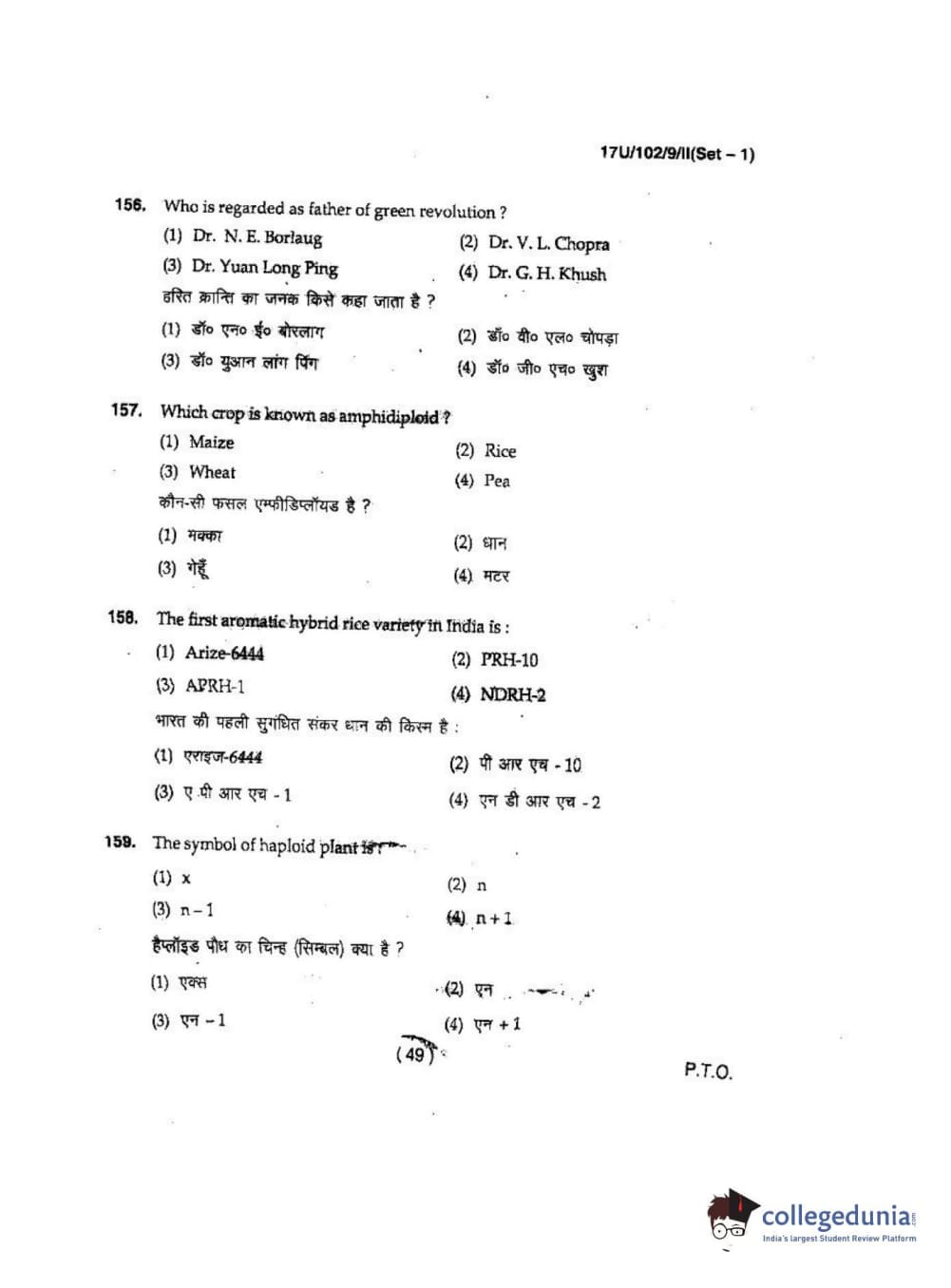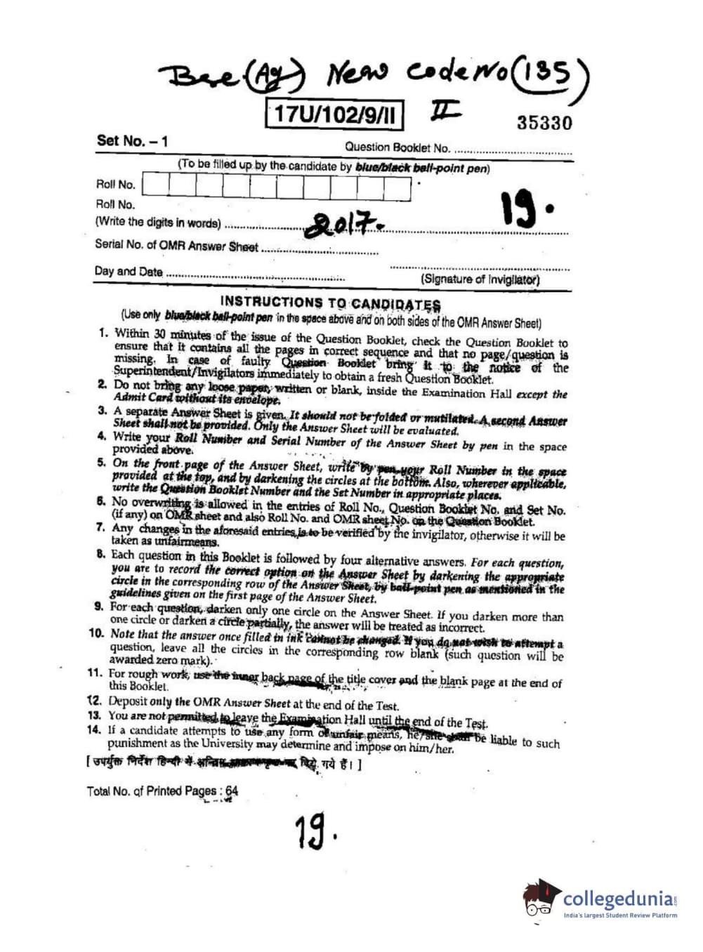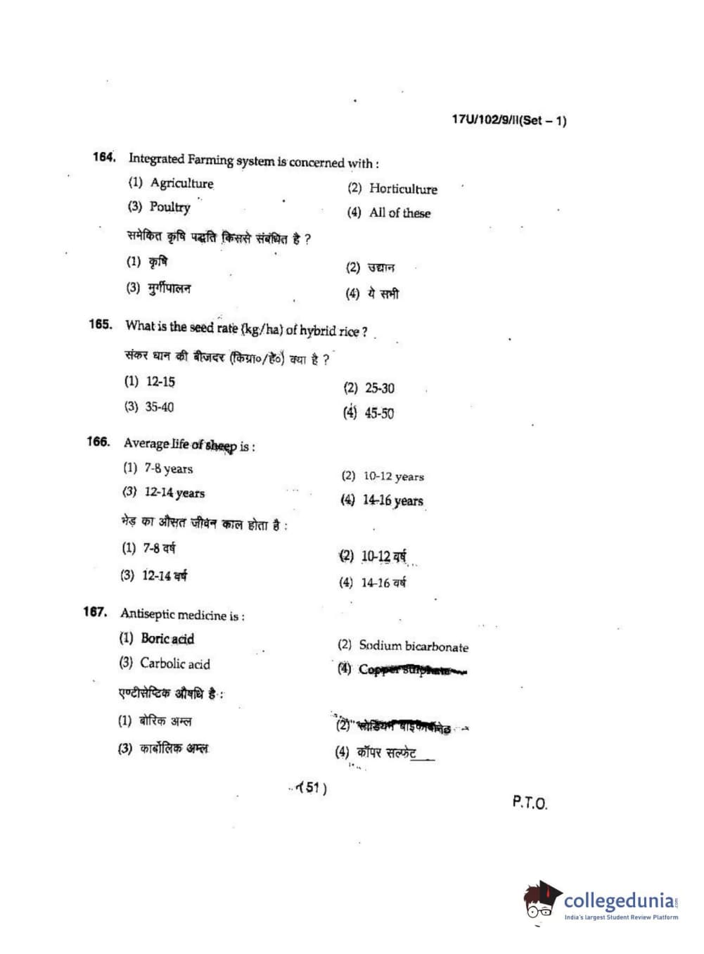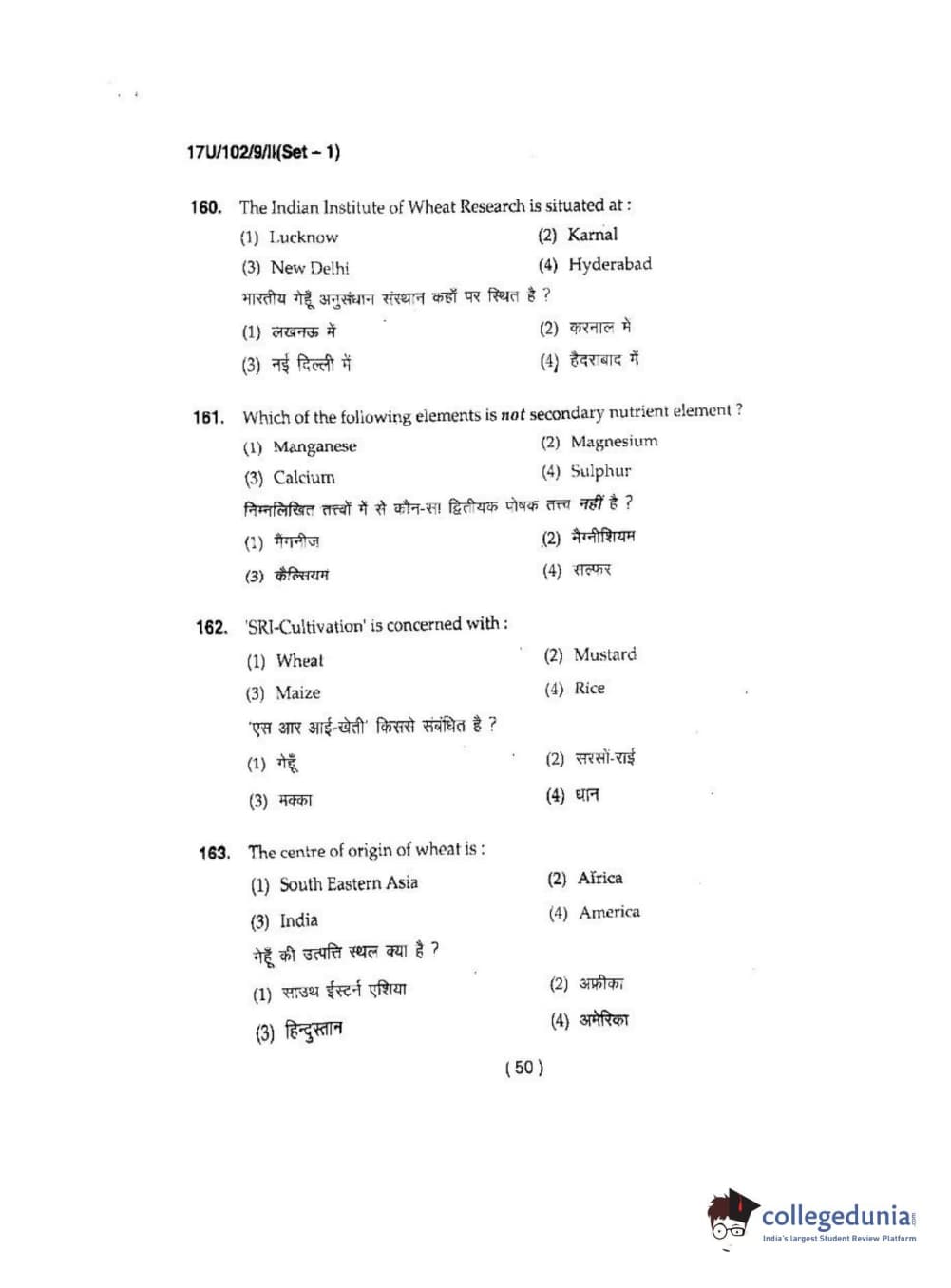 BHU UET 2017 B.Sc Ag(Re-Exam) Question paper with answer key pdf is available for download. The exam was successfully organized by Banaras Hindu University (BHU). The question paper comprised a total of 200 questions.