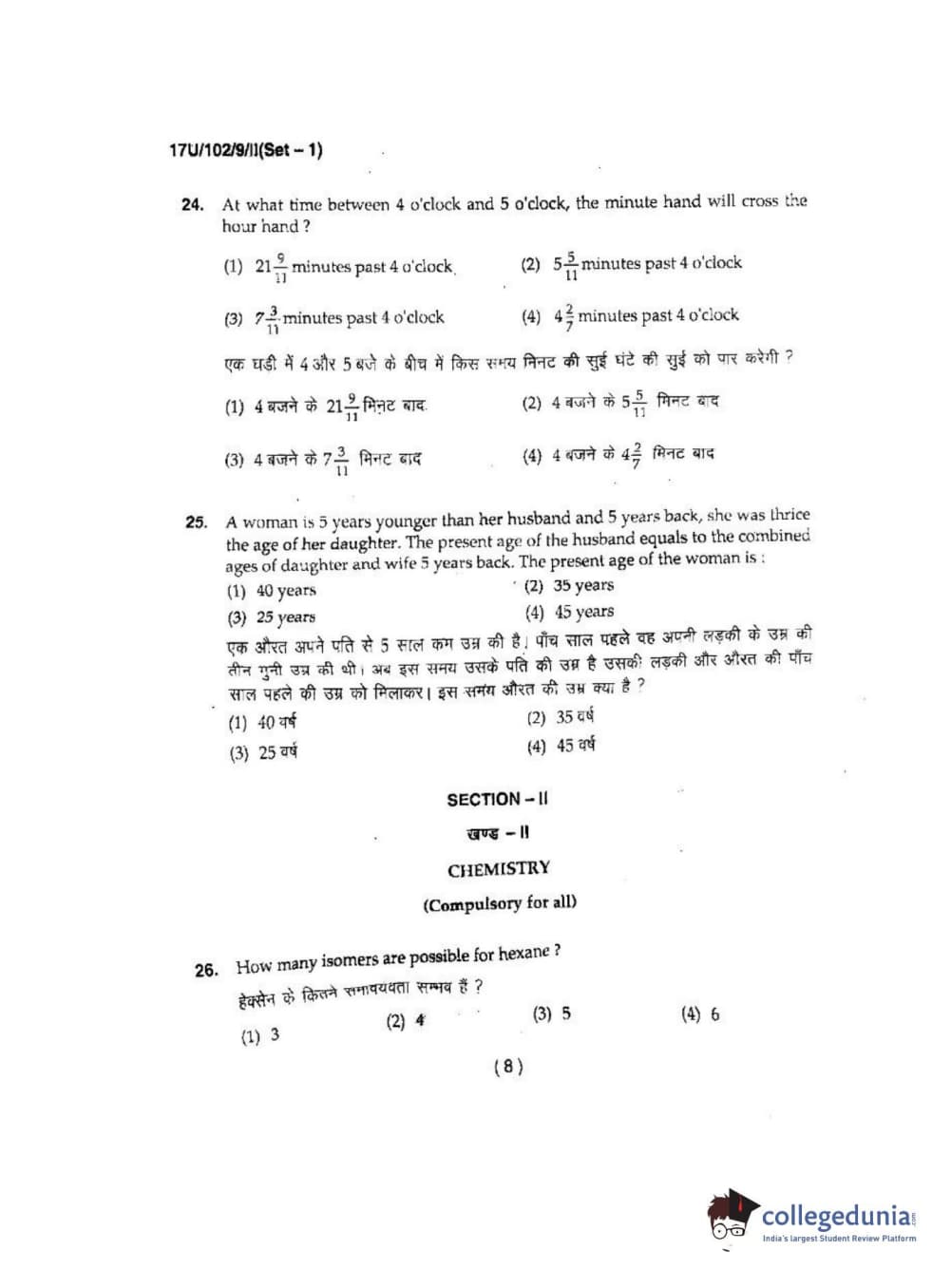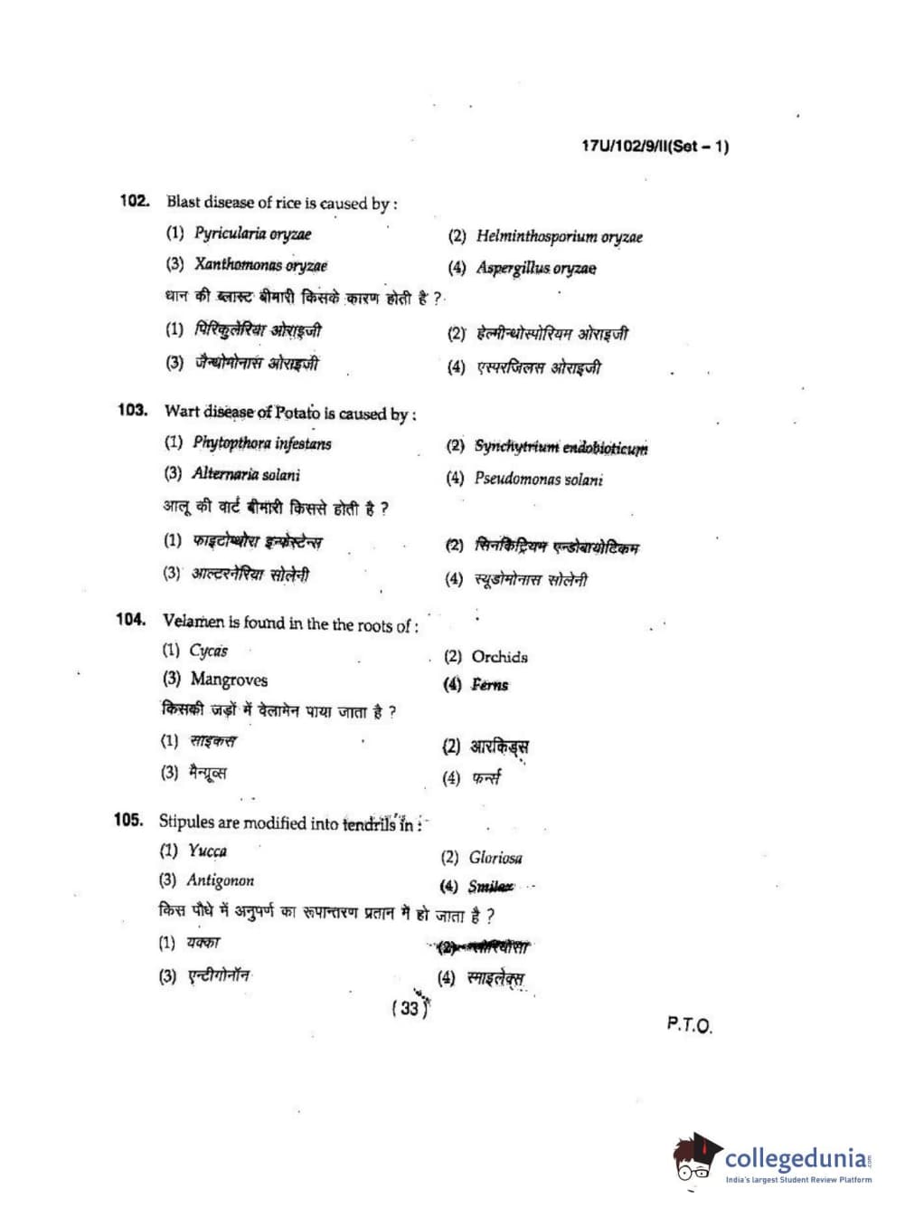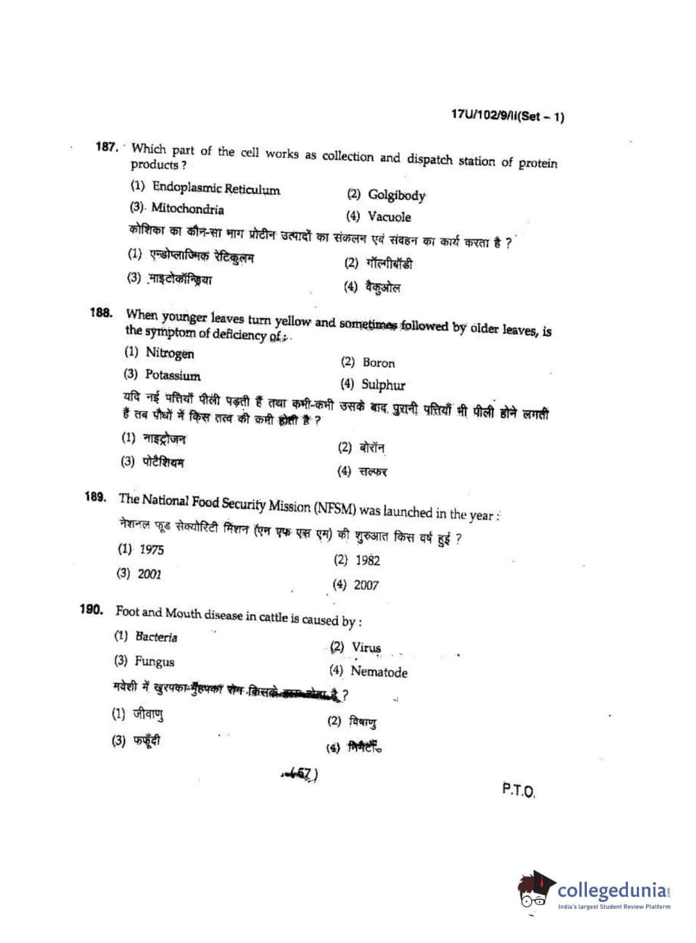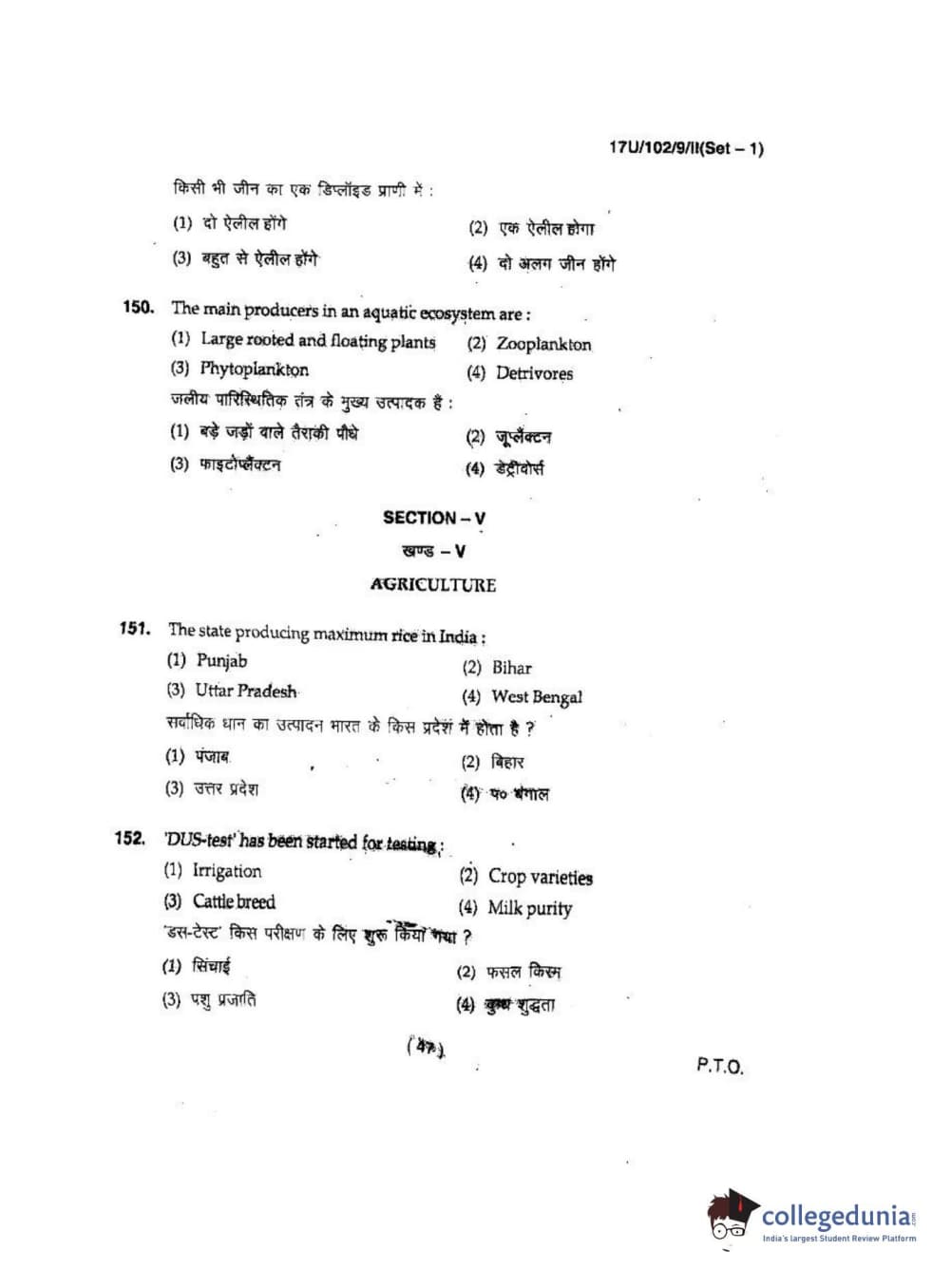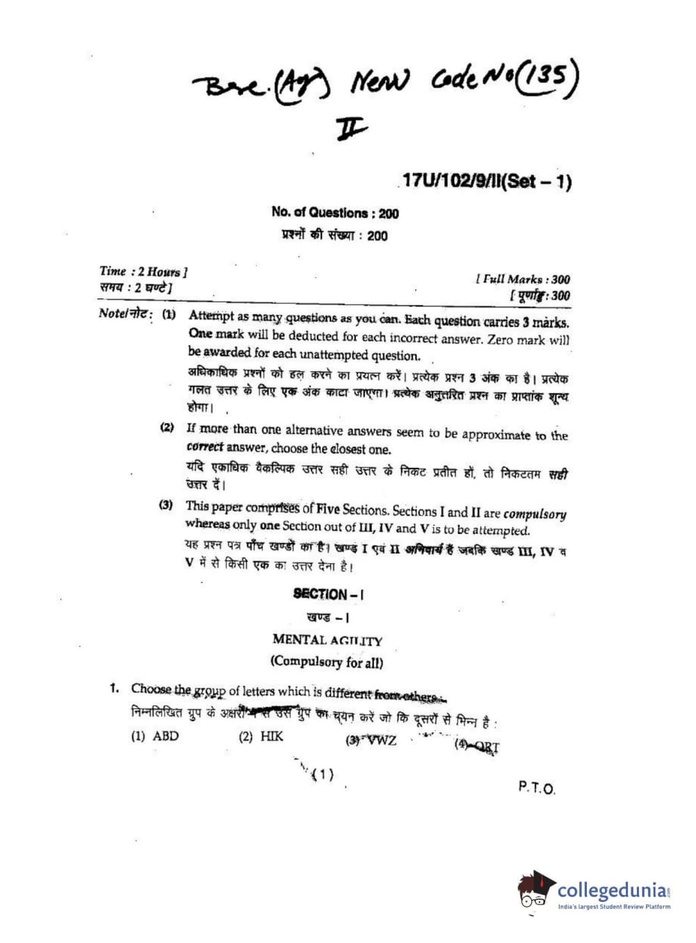 BHU UET 2017 B.Sc Ag(Re-Exam) Question paper with answer key pdf is available for download. The exam was successfully organized by Banaras Hindu University (BHU). The question paper comprised a total of 200 questions.