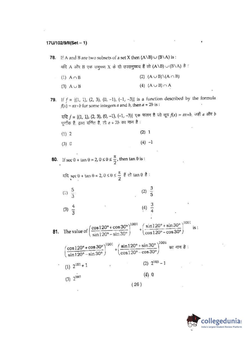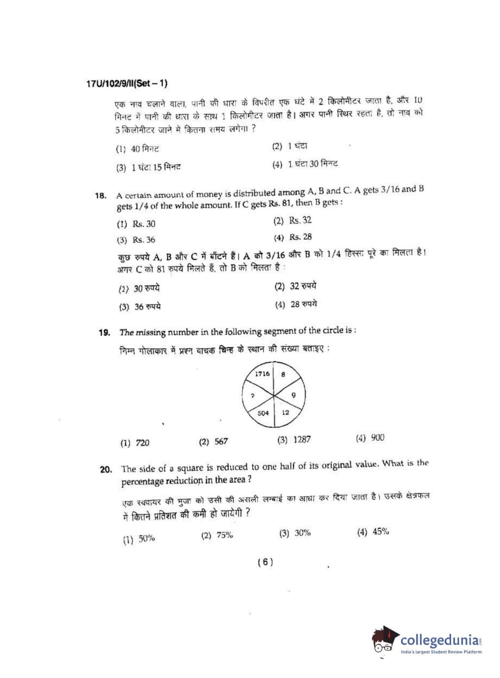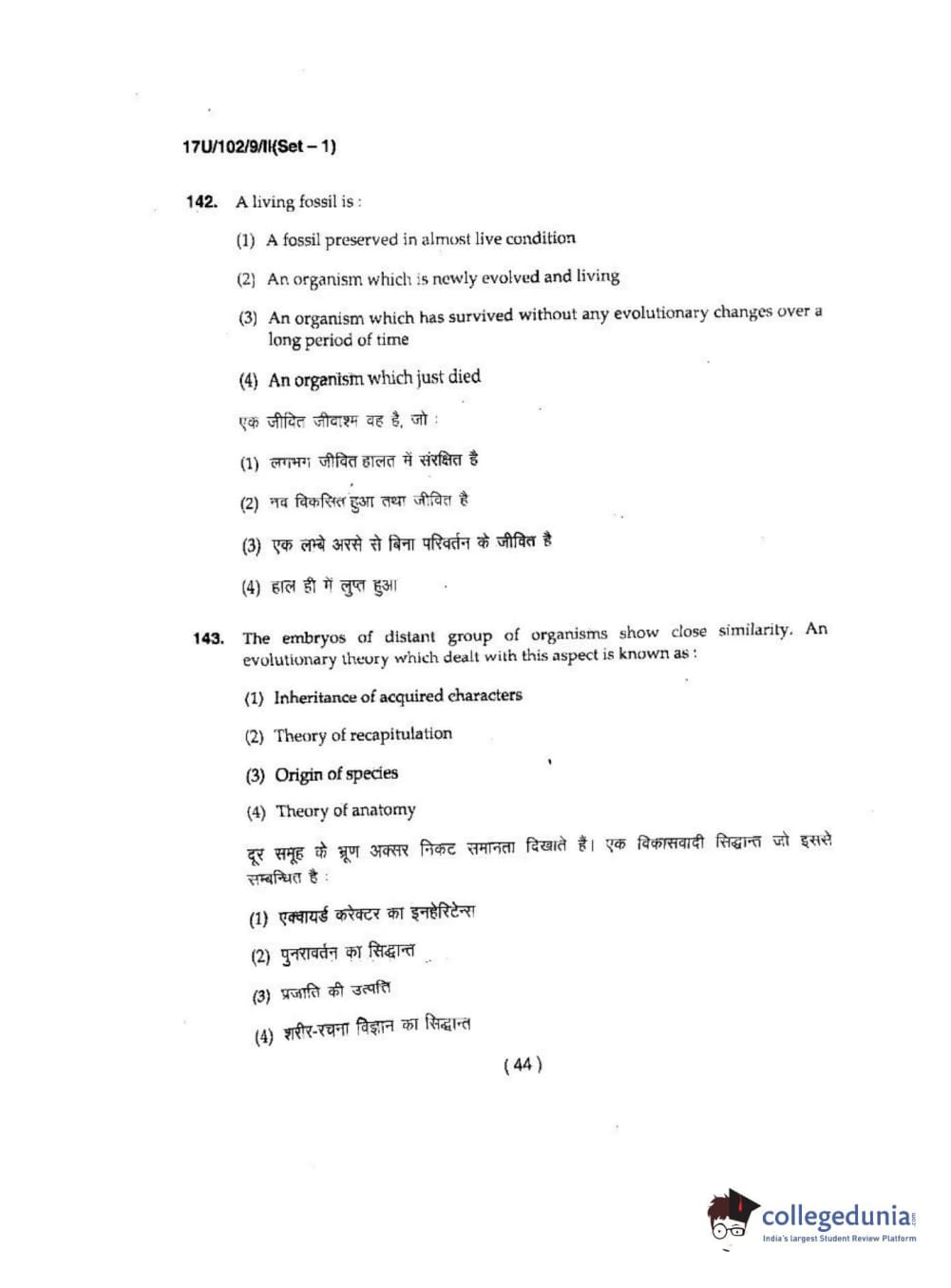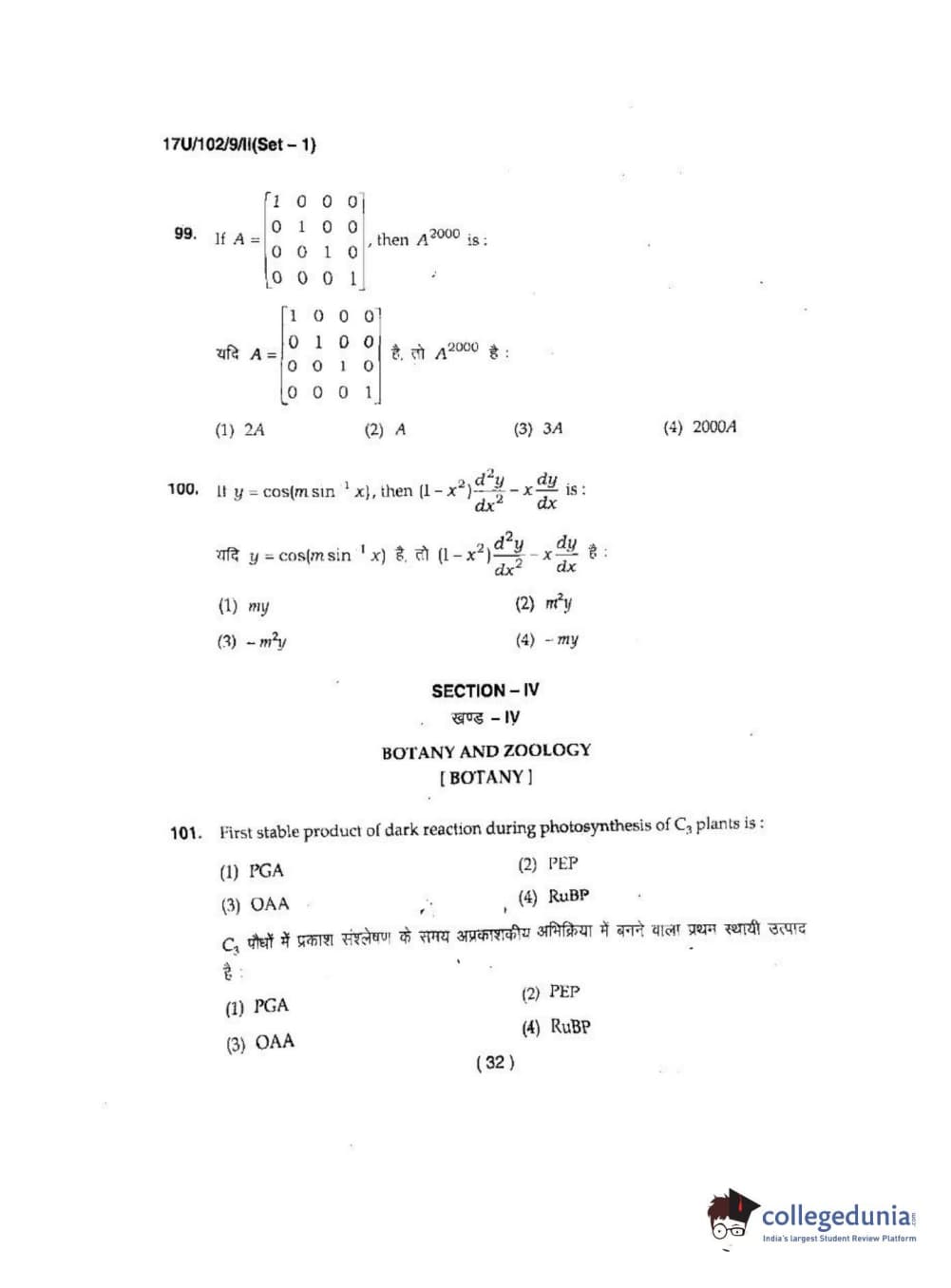 BHU UET 2017 B.Sc Ag(Re-Exam) Question Paper with Answer Key PDFs