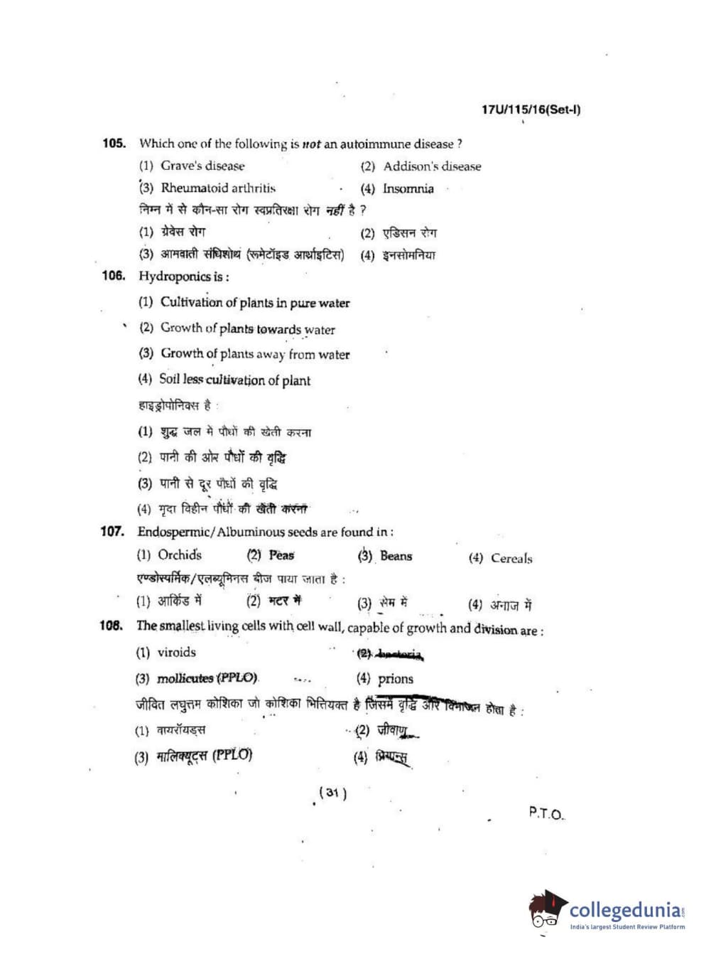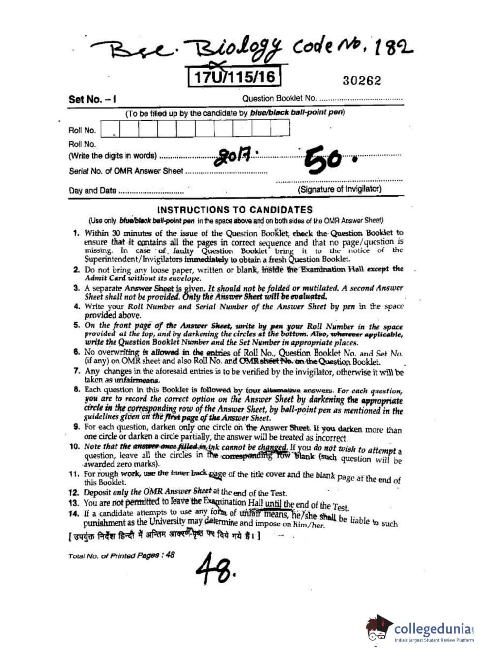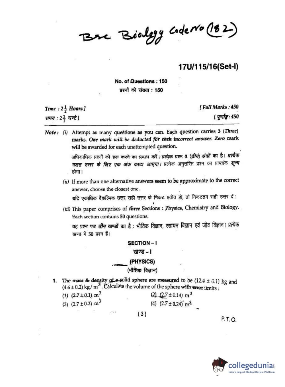 BHU UET 2017 B.Sc. Biology Question paper with answer key pdf is available for download. The exam was successfully organized by Banaras Hindu University (BHU). The question paper comprised a total of 150 questions.