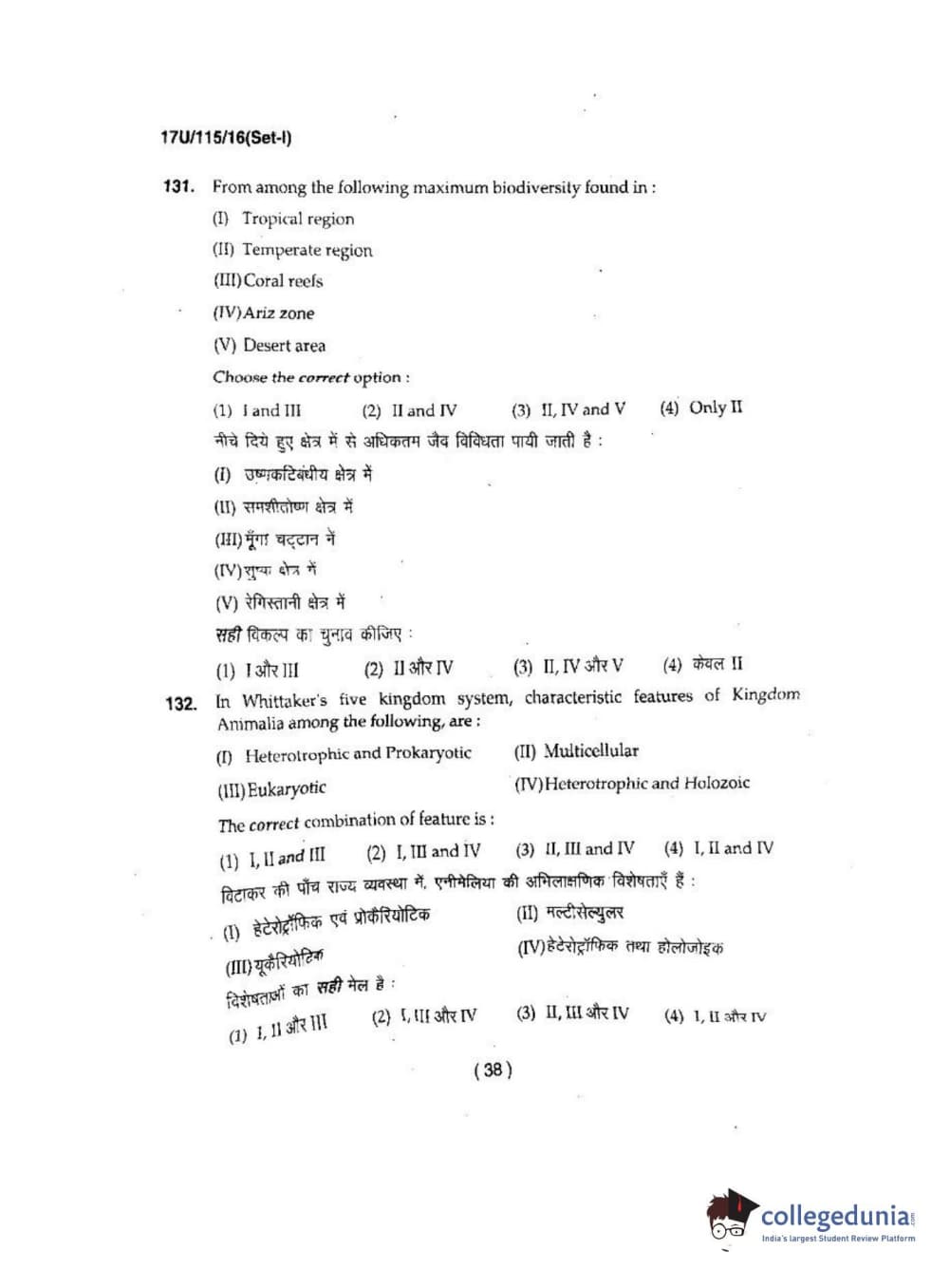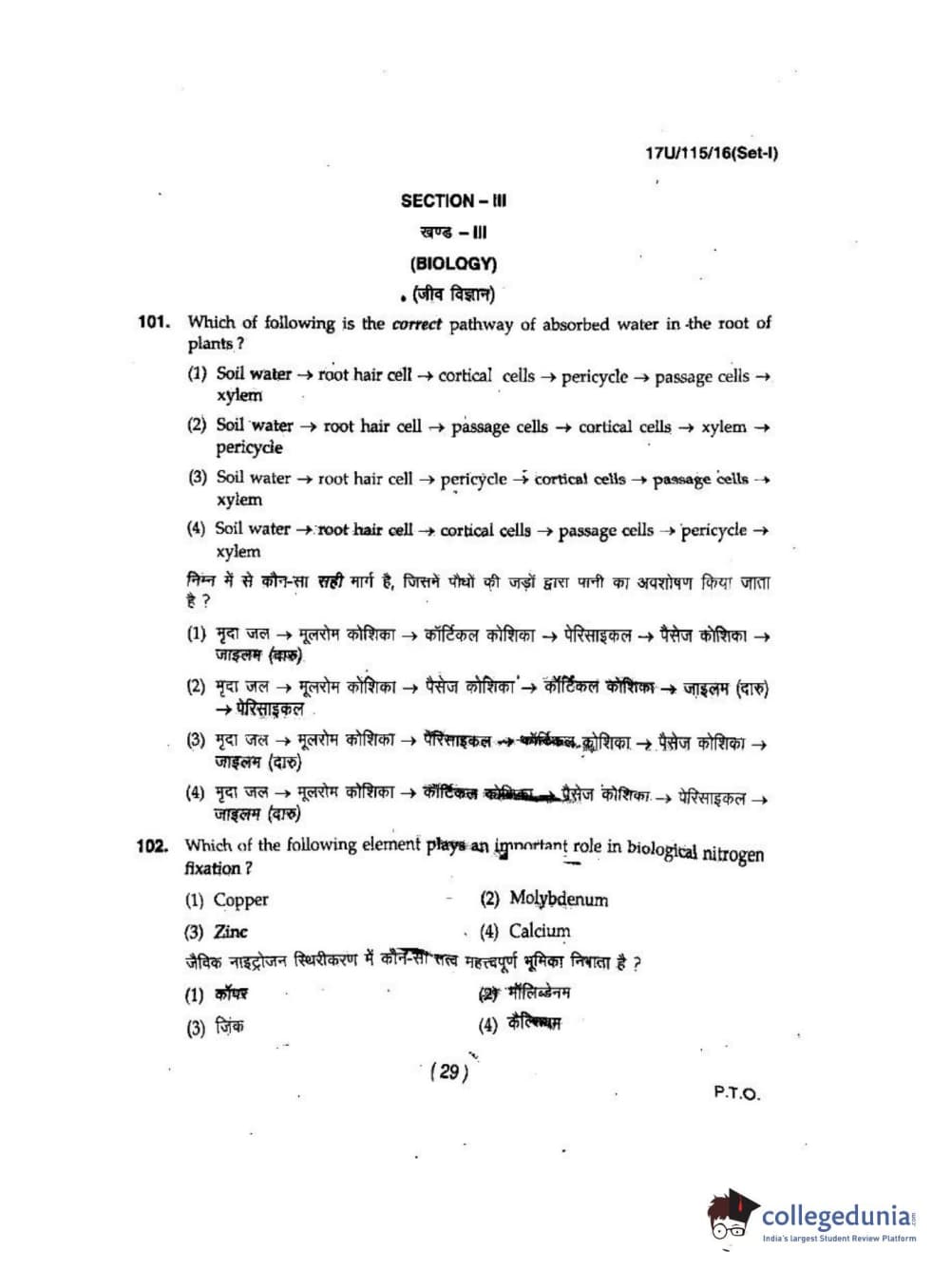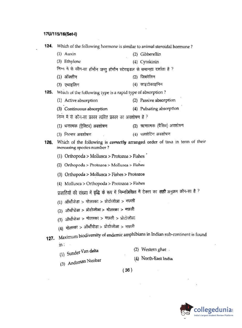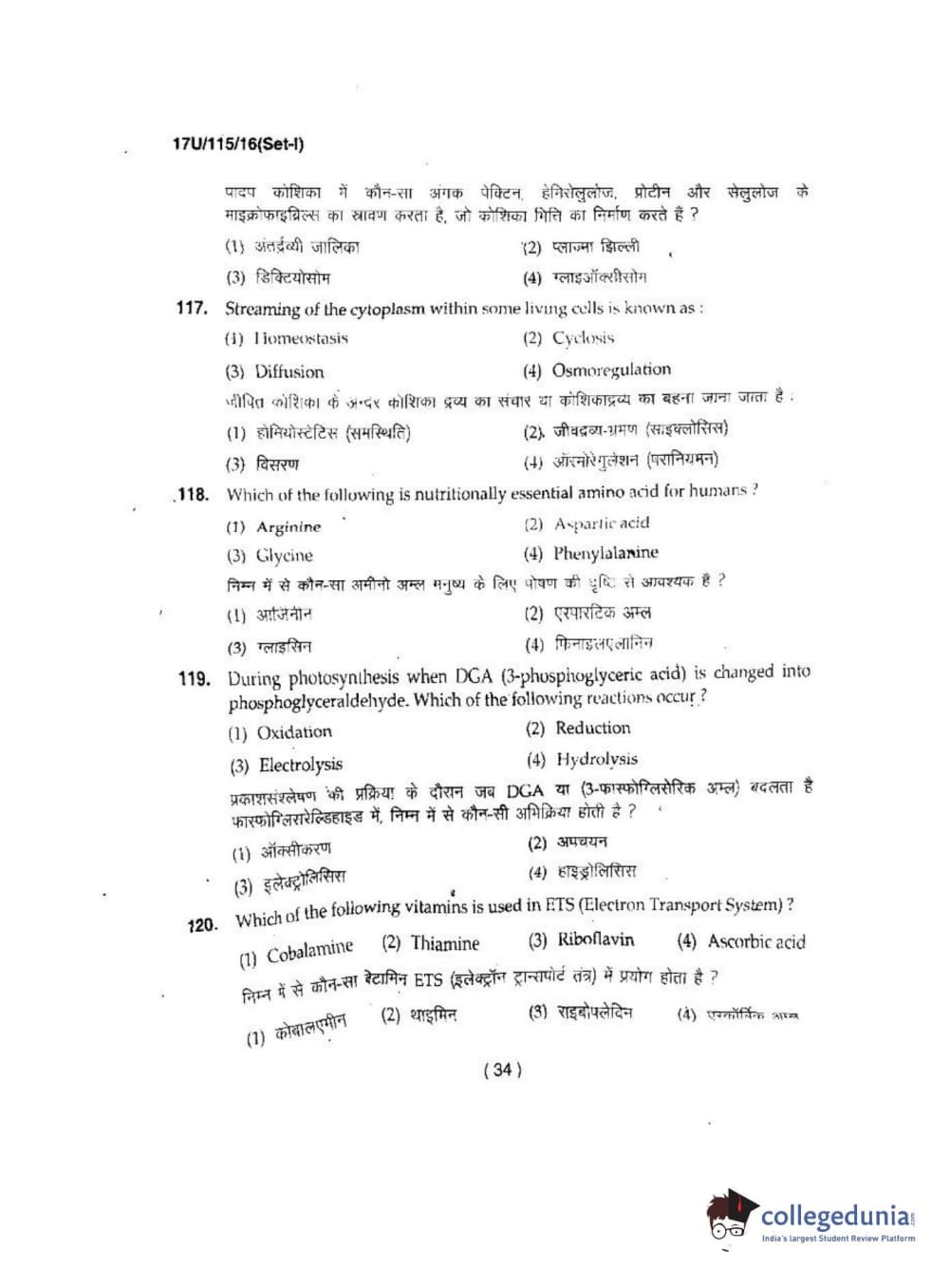 BHU UET 2017 B.Sc. Biology Question Paper with Answer Key PDFs