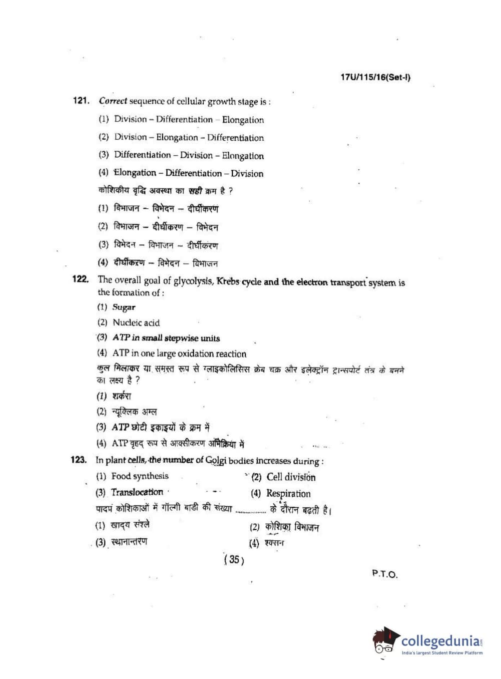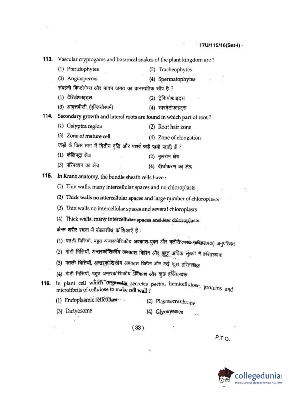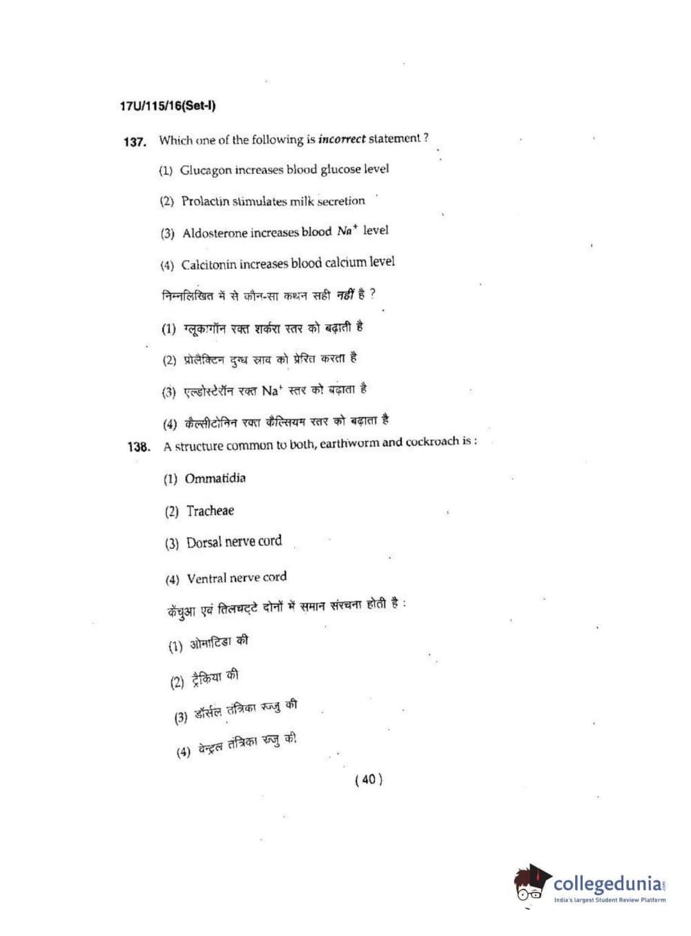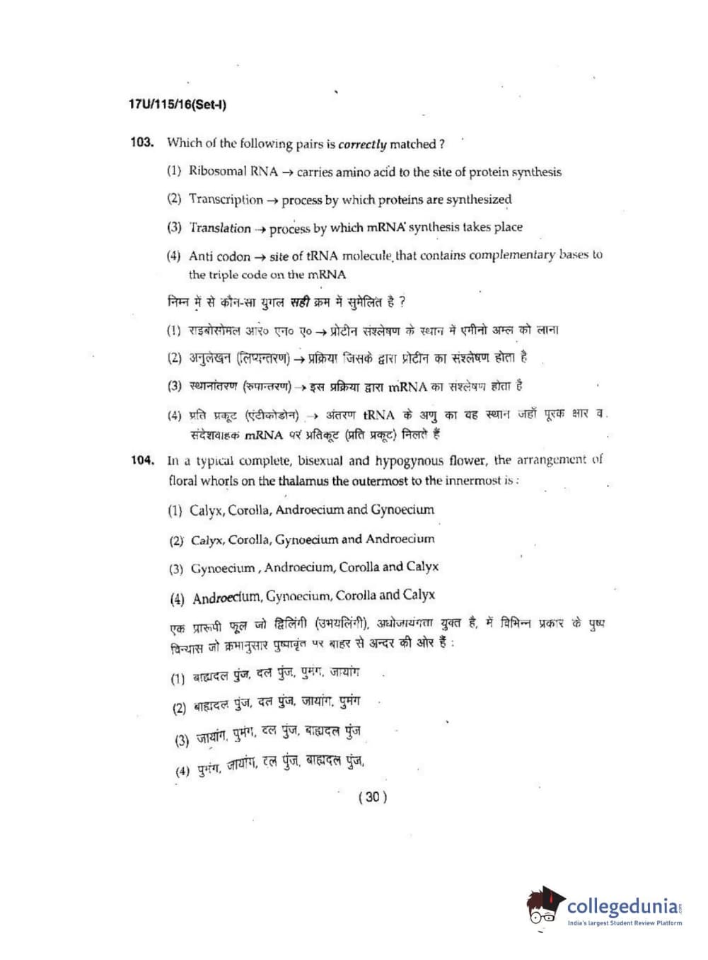 BHU UET 2017 B.Sc. Biology Question Paper with Answer Key PDFs