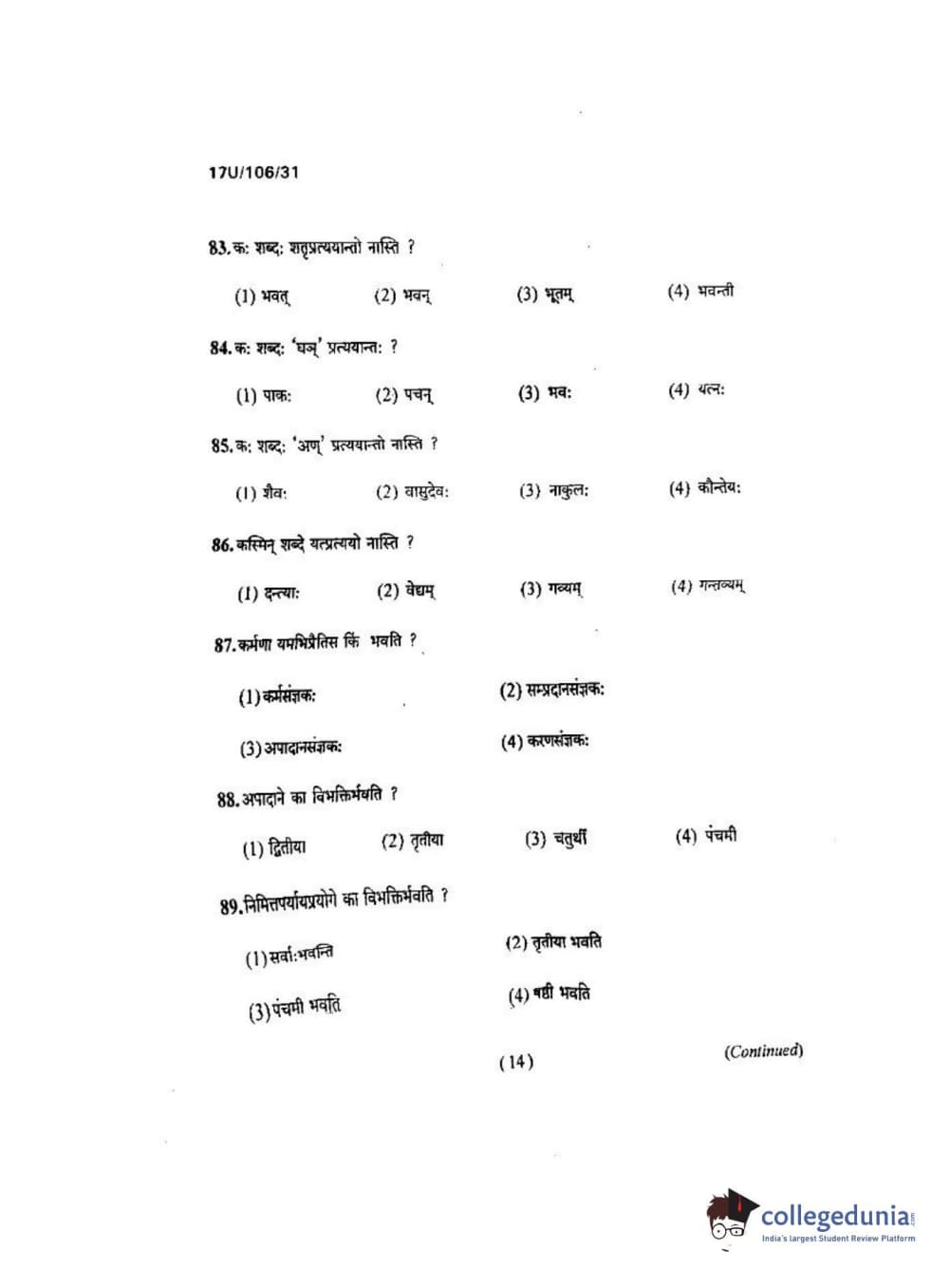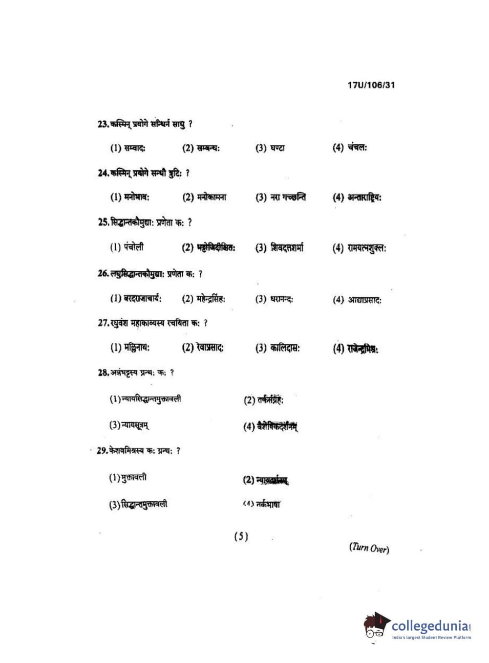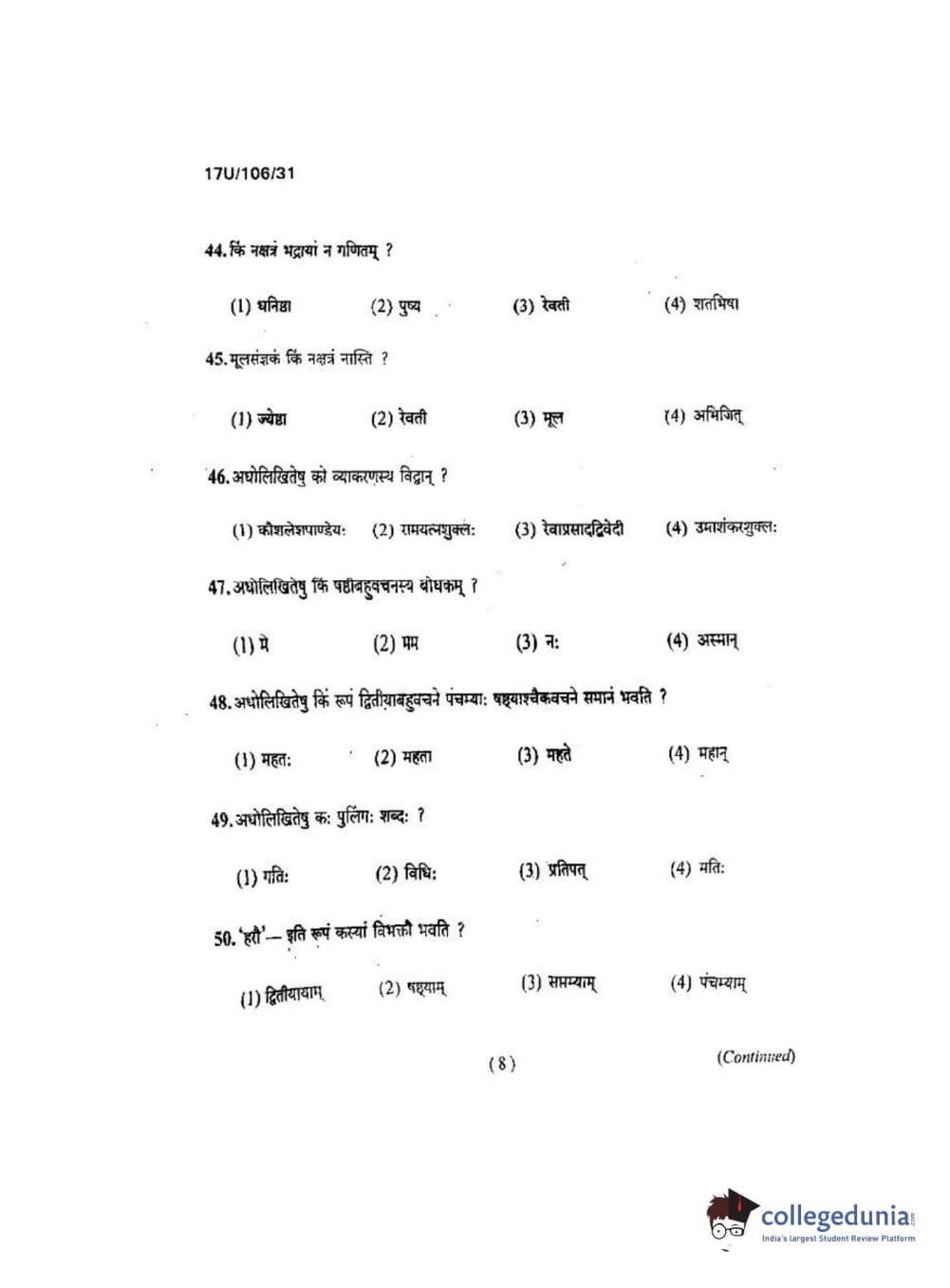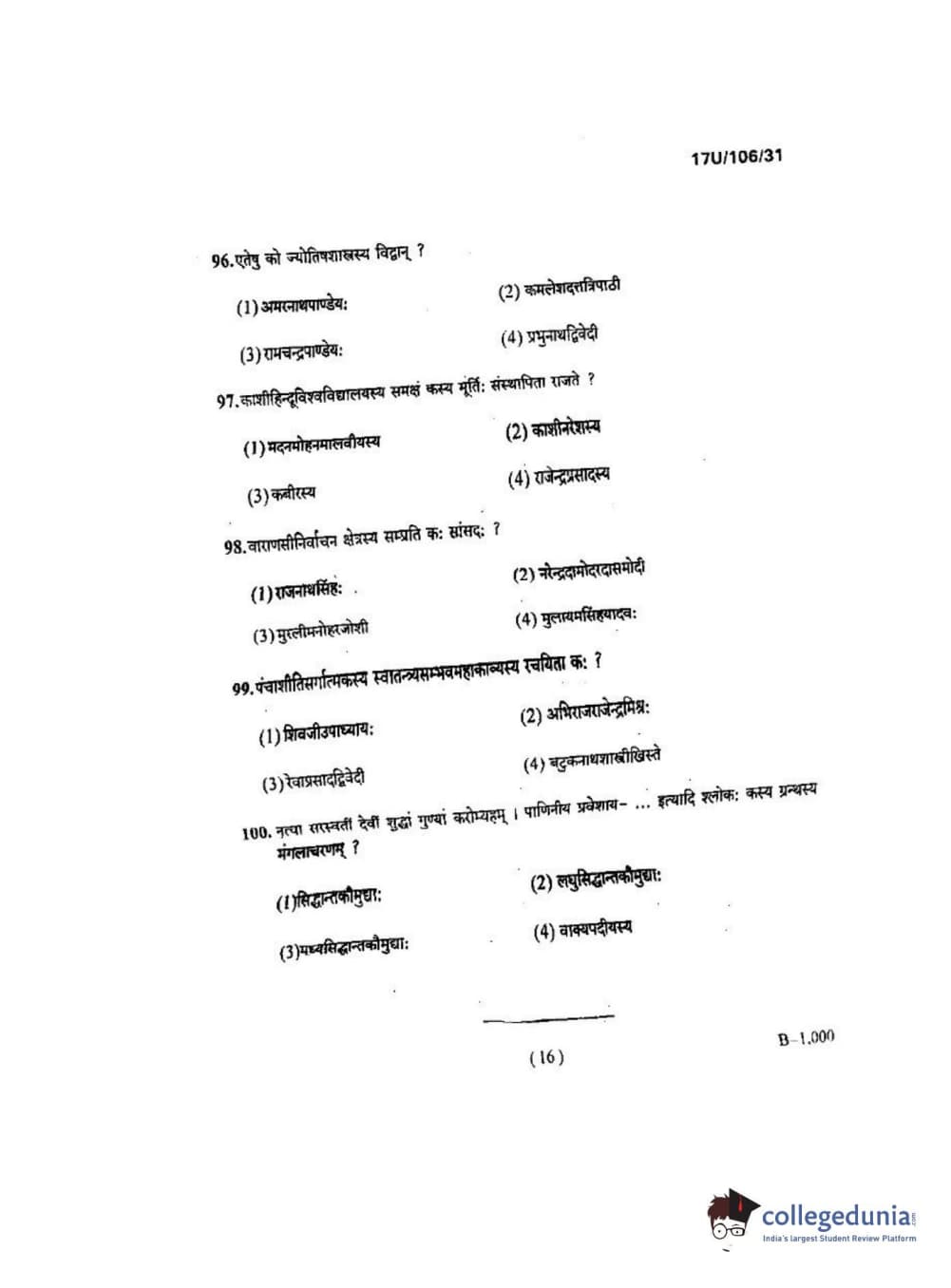BHU UET 2017 Shastri Question paper with answer key pdf is available for download. The exam was successfully organized by Banaras Hindu University (BHU). The question paper comprised a total of 100 questions.