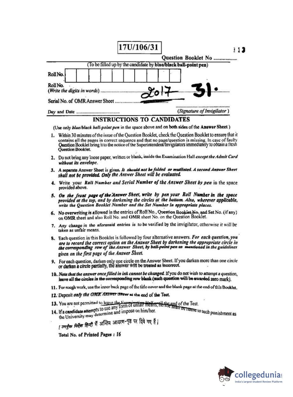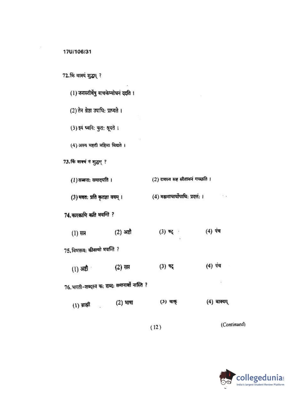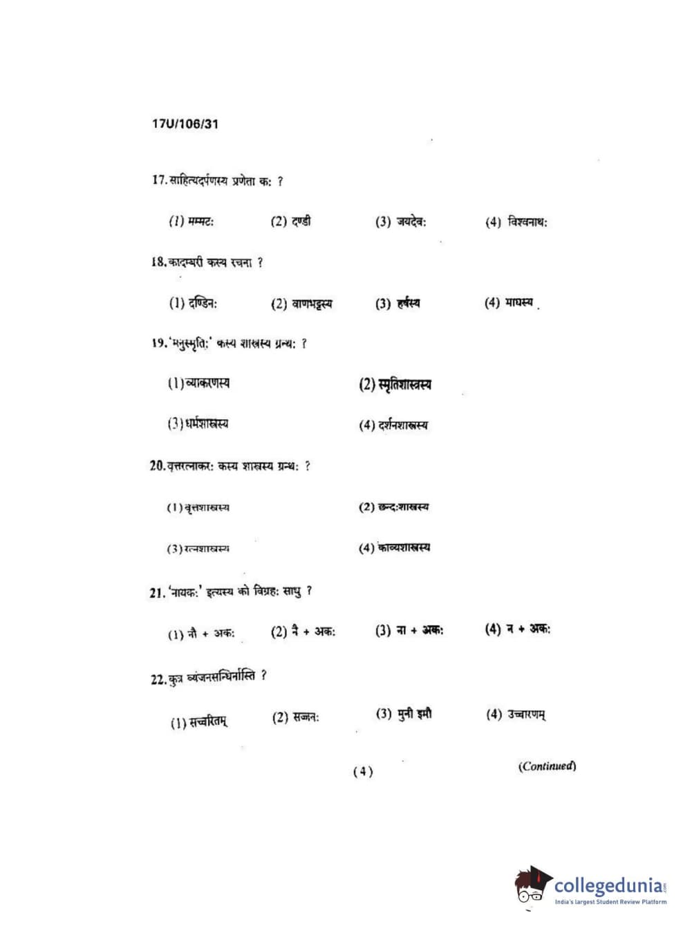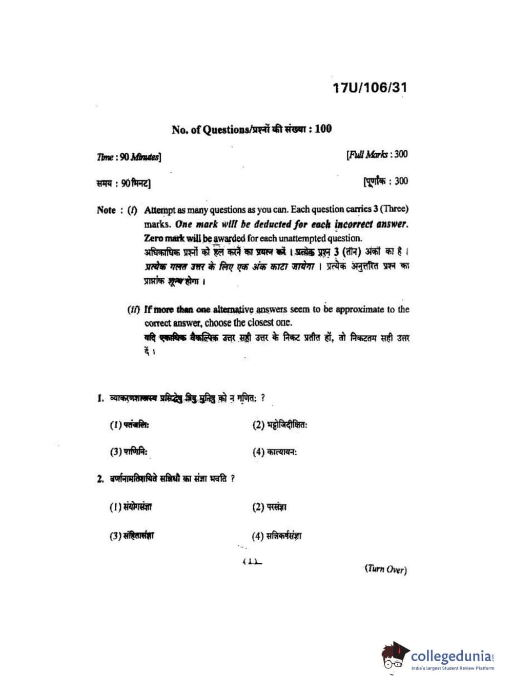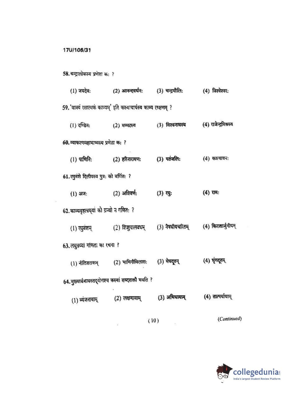 BHU UET 2017 Shastri Question paper with answer key pdf is available for download. The exam was successfully organized by Banaras Hindu University (BHU). The question paper comprised a total of 100 questions.