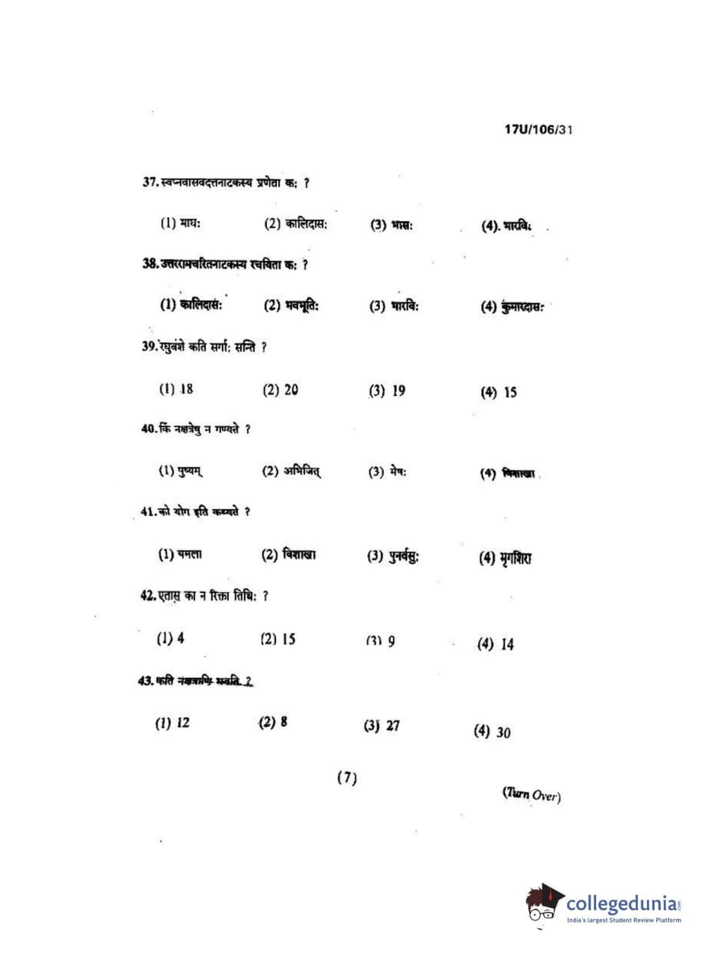 BHU UET 2017 Shastri Question Paper with Answer Key PDFs