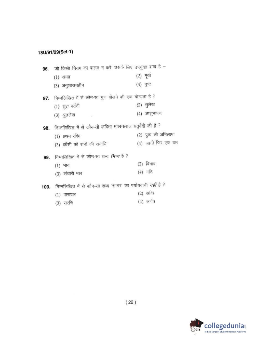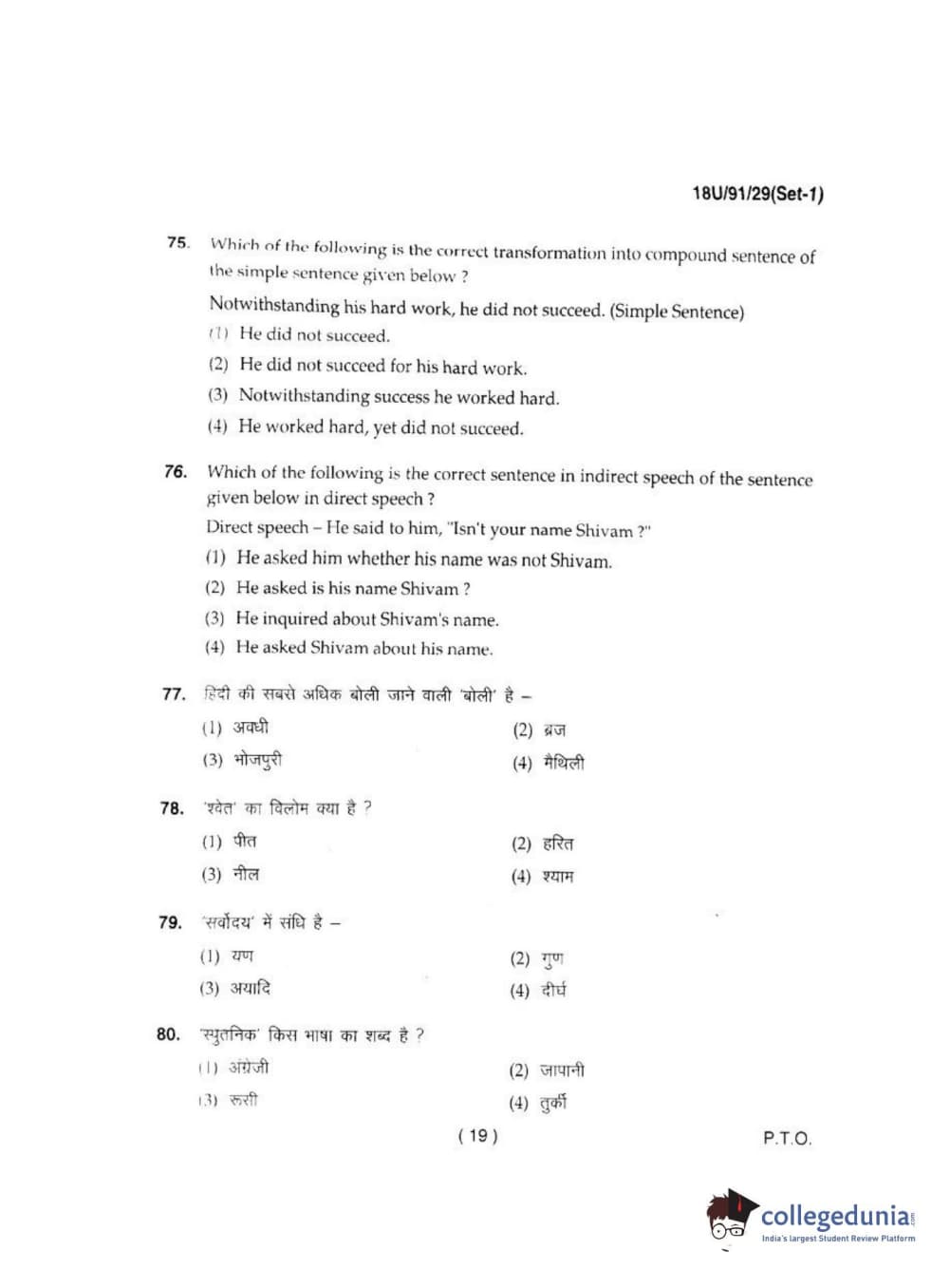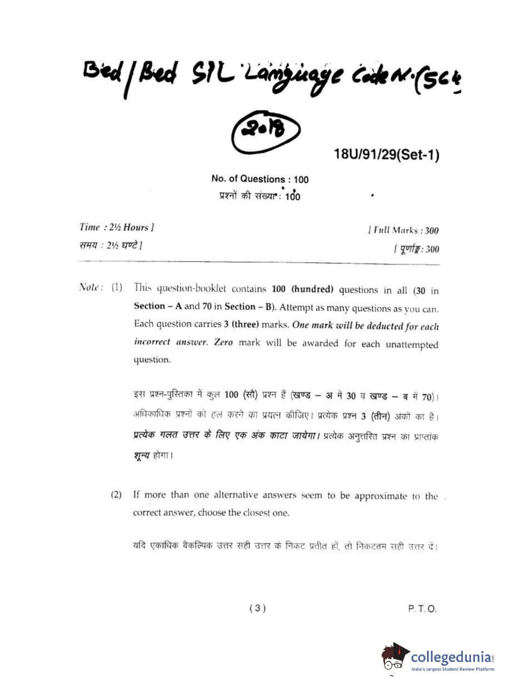 BHU UET 2018 B.ED B.ED(SPL) LANGUAGE Question paper with answer key pdf conducted on April 8, 2018 in Shift 1 is available for download. The exam was successfully organized by Banaras Hindu University (BHU). The question paper comprised a total of 100 questions.