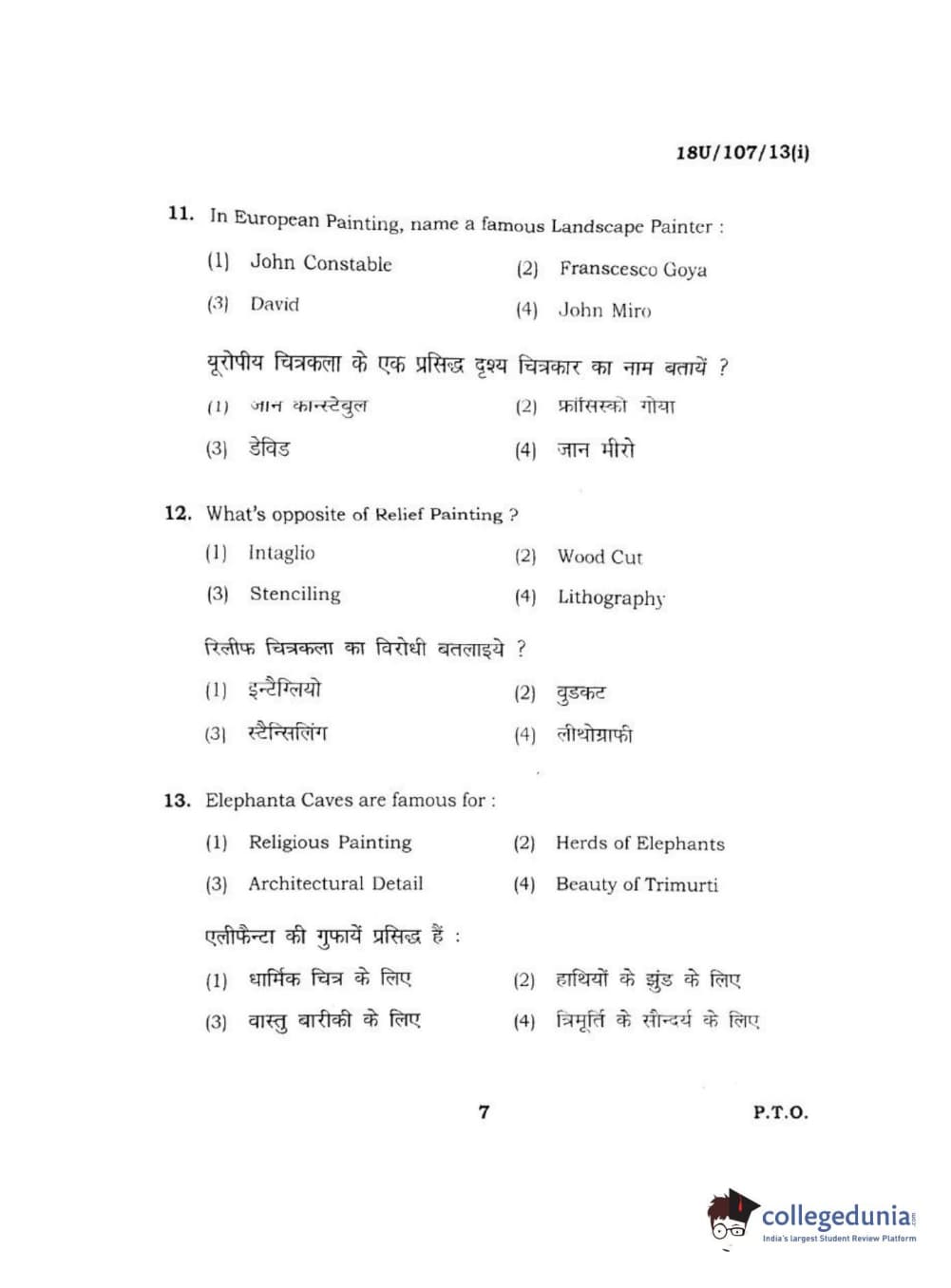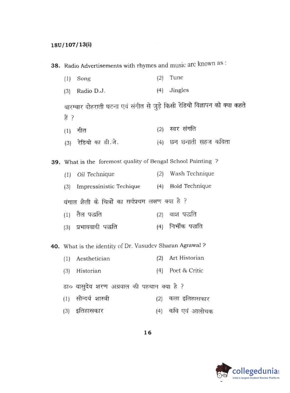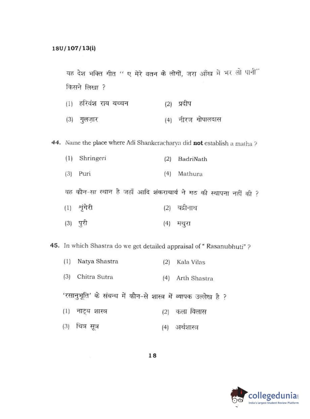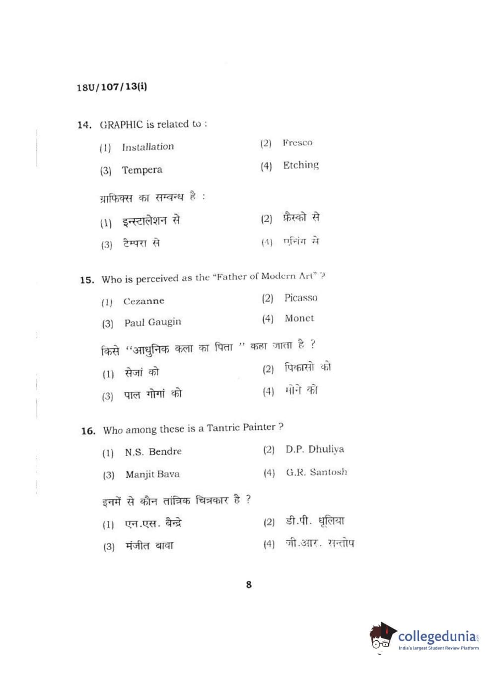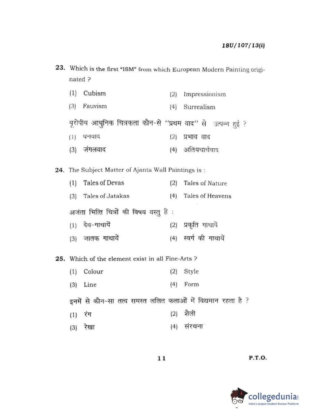 BHU UET 2018 B.F.A Question Paper with Answer Key PDFs Shift 1