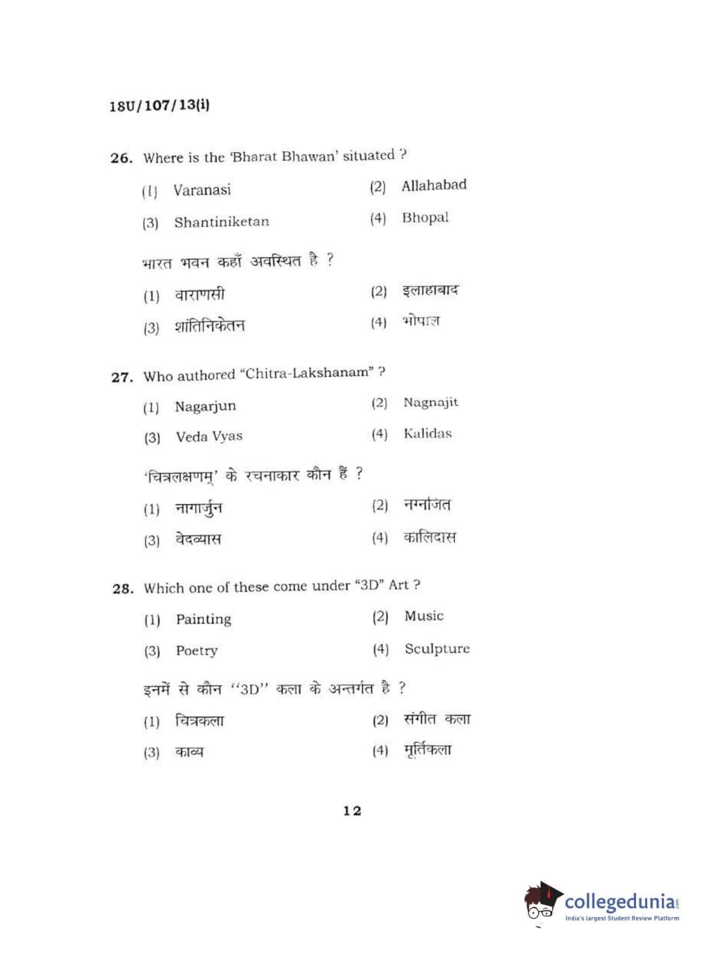 BHU UET 2018 B.F.A Question paper with answer key pdf conducted on April 1, 2018 in Shift 1 is available for download. The exam was successfully organized by Banaras Hindu University (BHU). The question paper comprised a total of 50 questions.