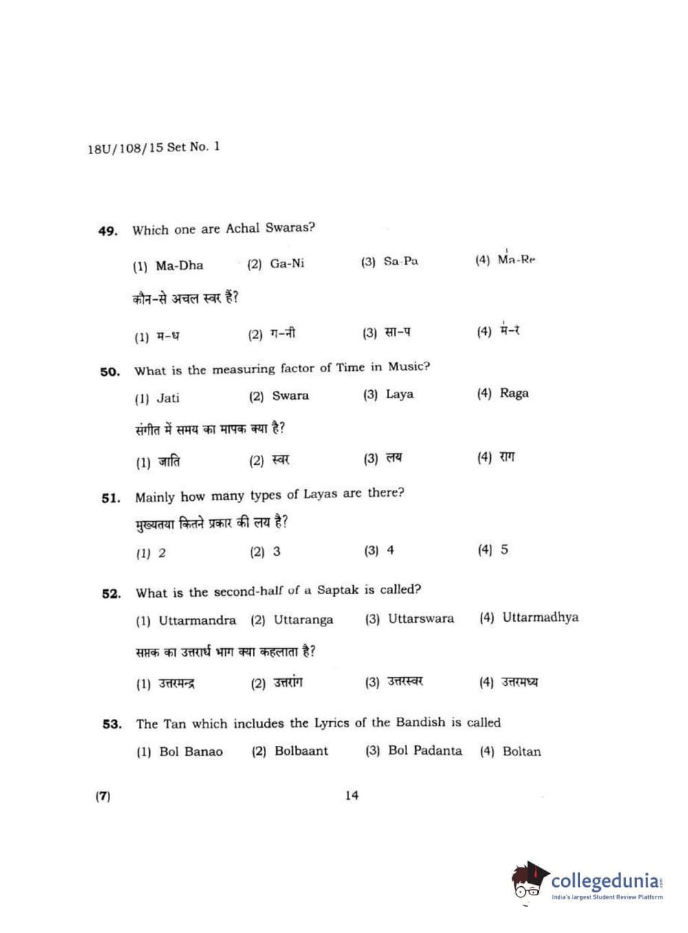 BHU UET 2018 B.P.A VOCAL Question Paper with Answer Key PDFs Shift 1