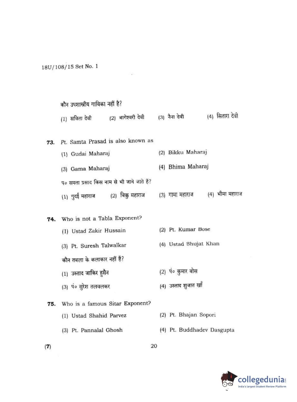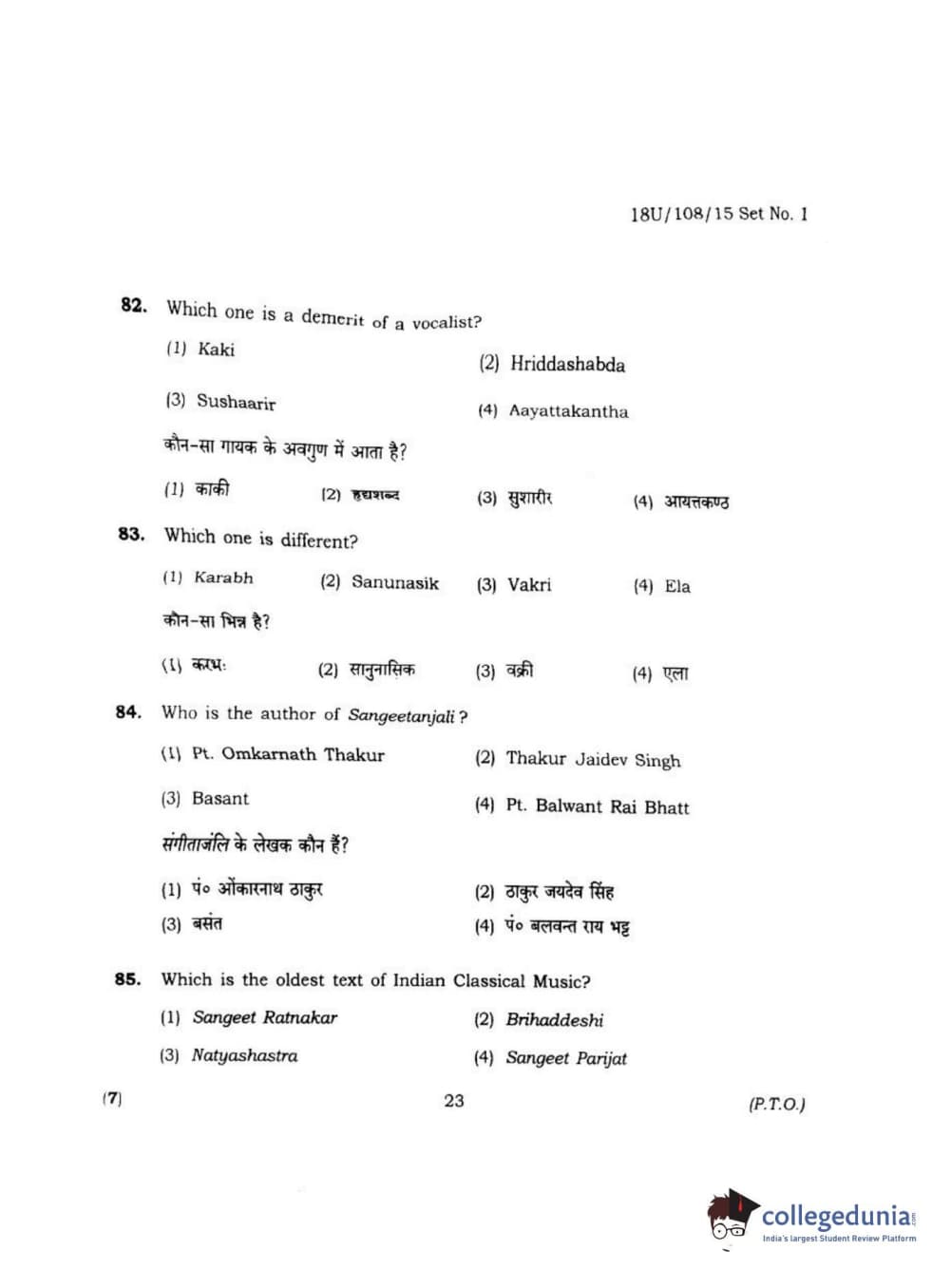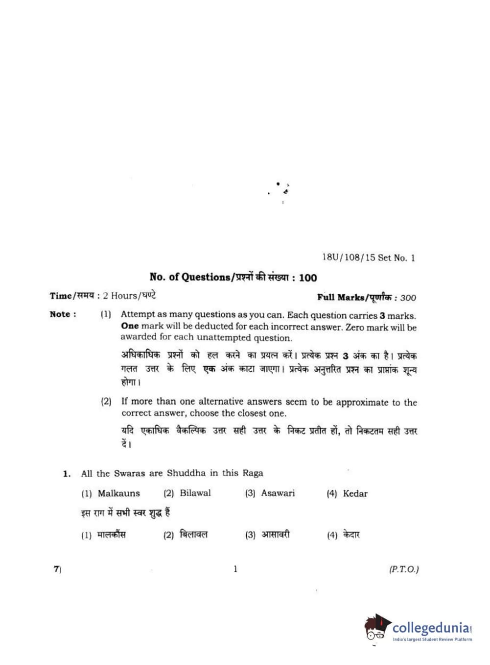 BHU UET 2018 B.P.A VOCAL Question paper with answer key pdf conducted on April 1, 2018 in Shift 1 is available for download. The exam was successfully organized by Banaras Hindu University (BHU). The question paper comprised a total of 100 questions.