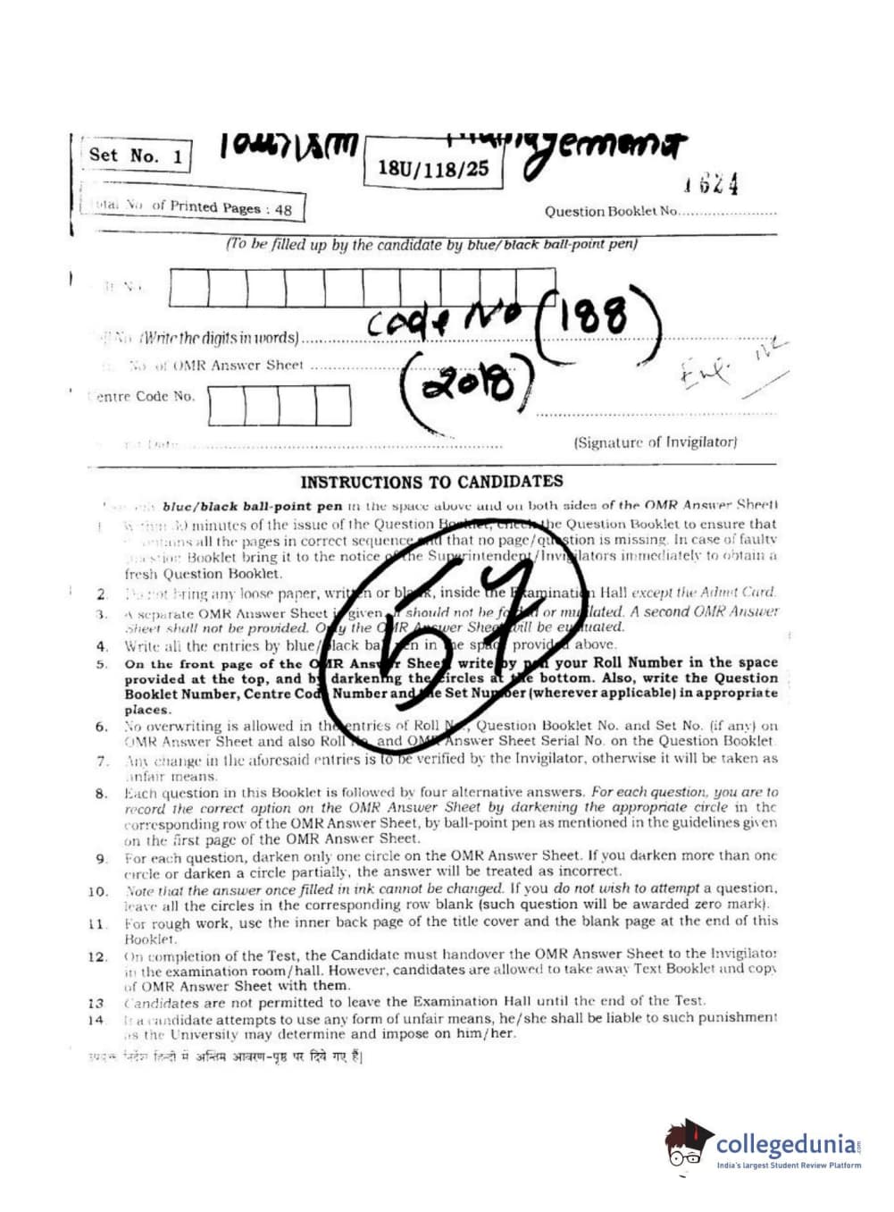 | BHU UET 2018 B.VOC IN RE. LAG. HOS. TOUR MGT Question Paper PDF | BHU UET 2018 B.VOC IN RE. LAG. HOS. TOUR MGT Answer Key PDF |