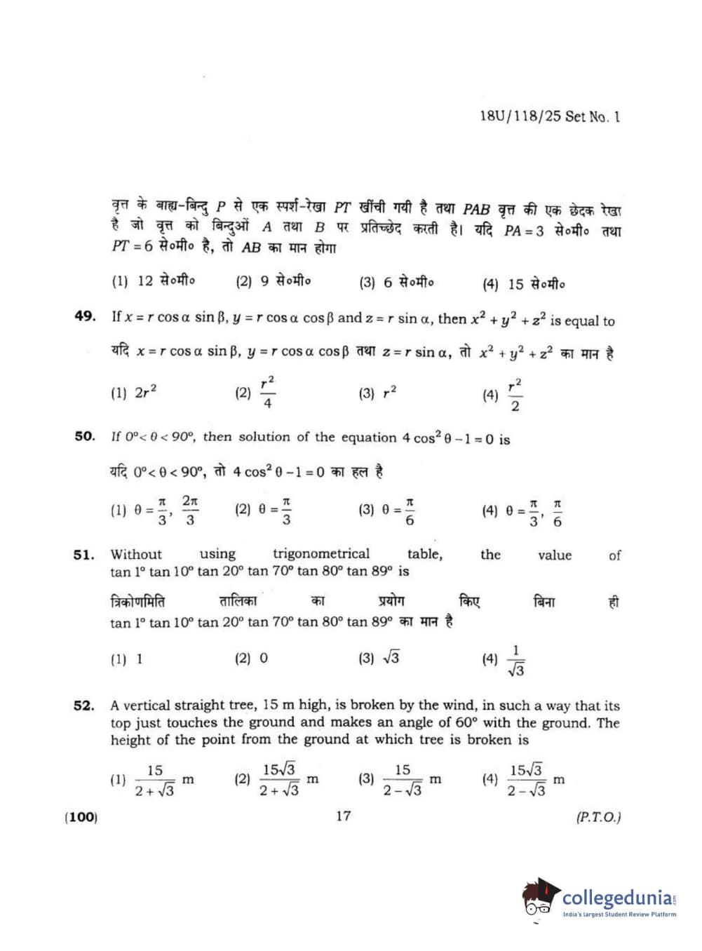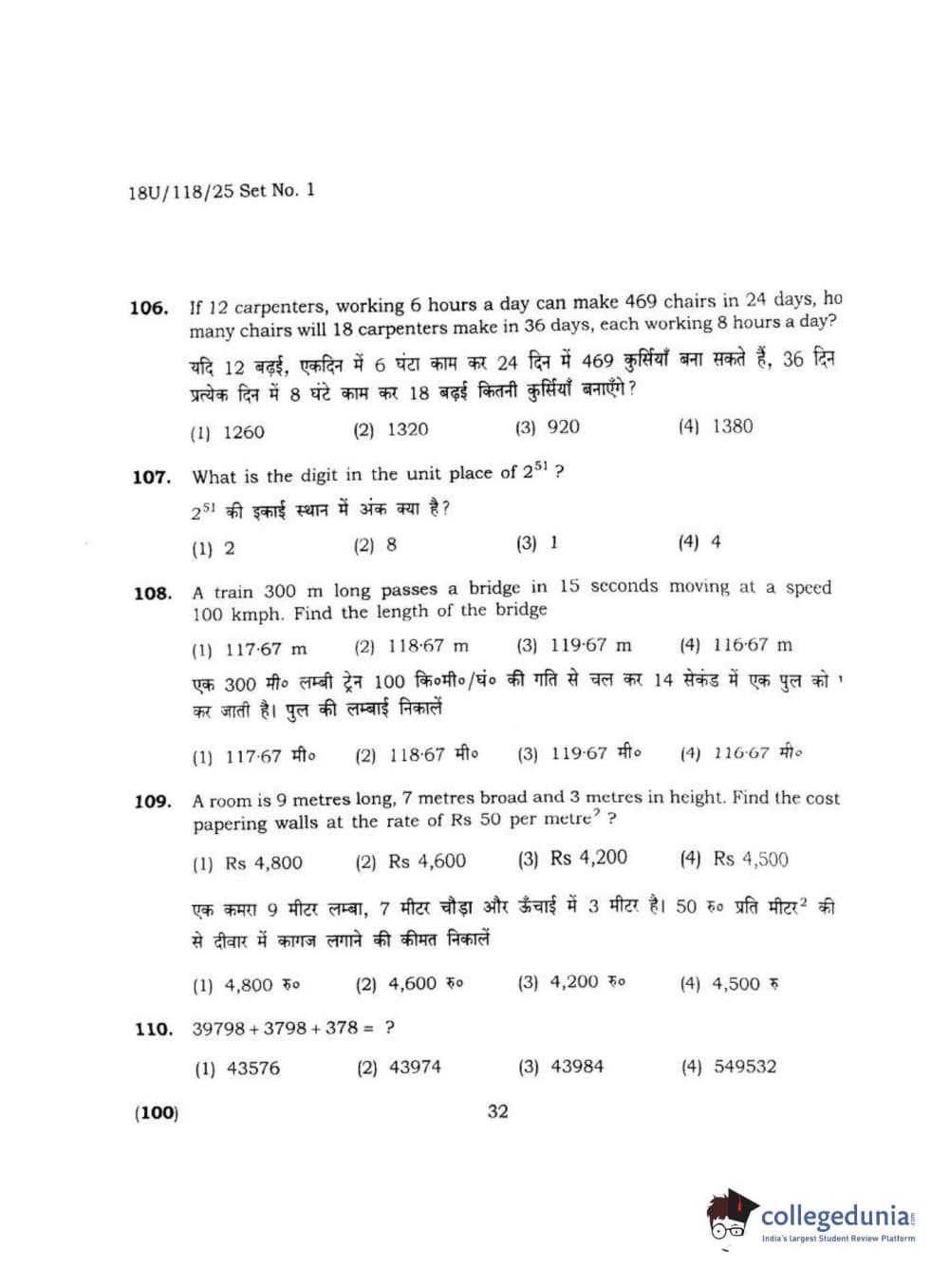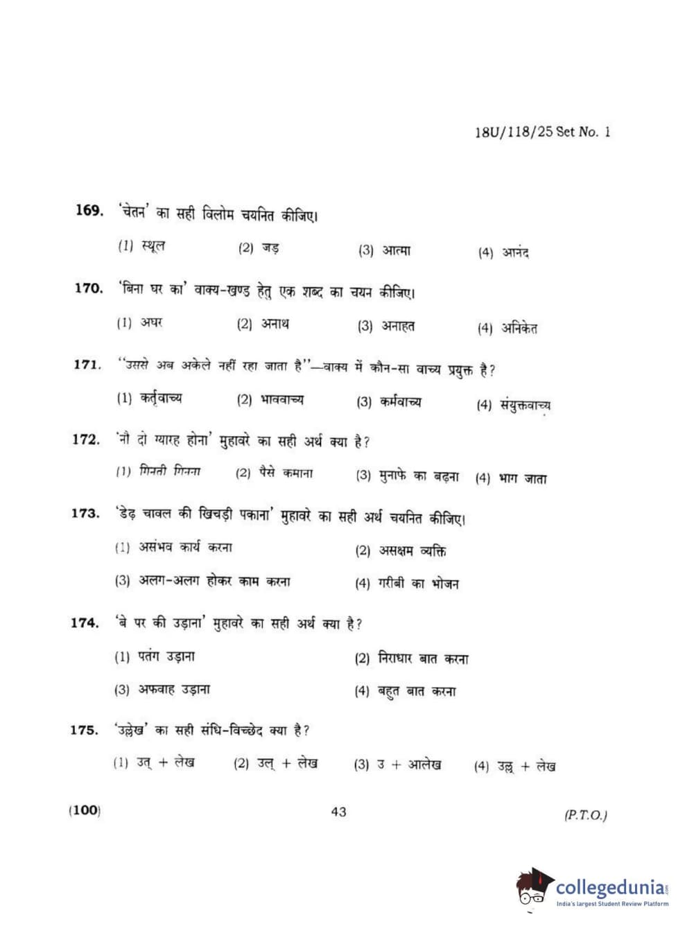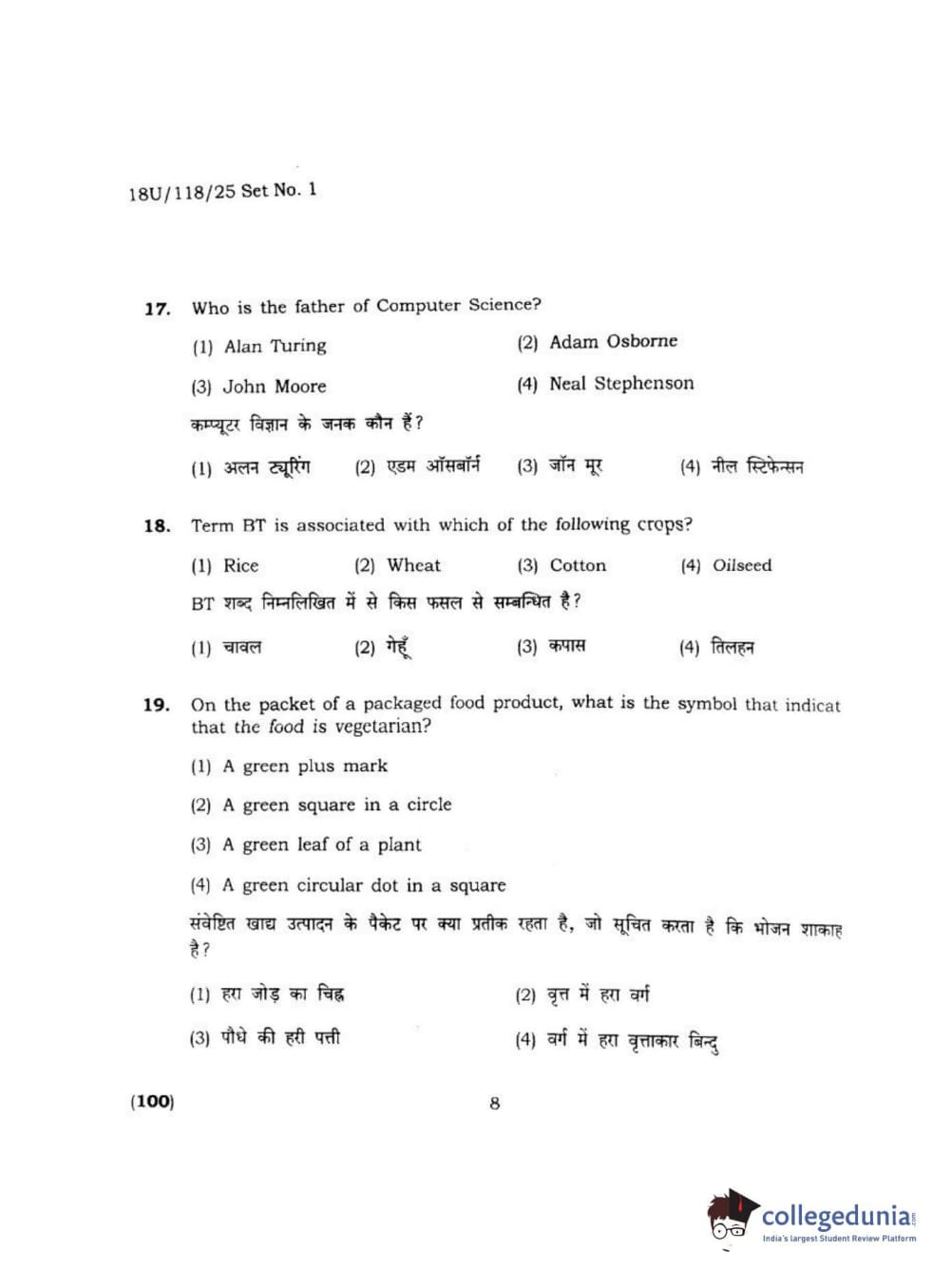 BHU UET 2018 B.VOC IN RE. LAG. HOS. TOUR MGT Question Paper with Answer Key PDFs Shift 1