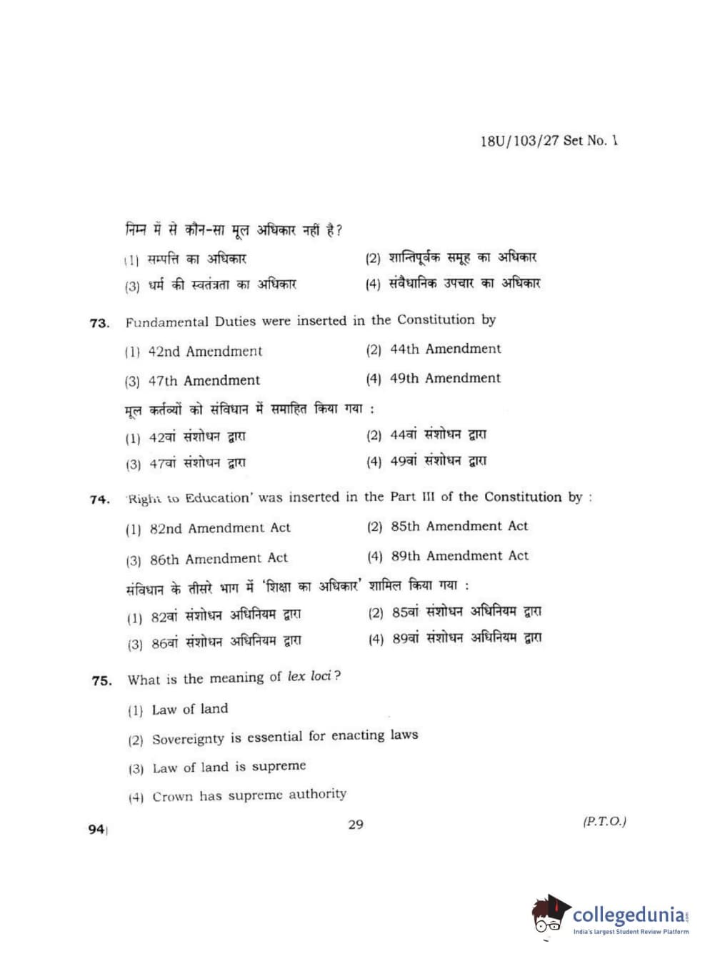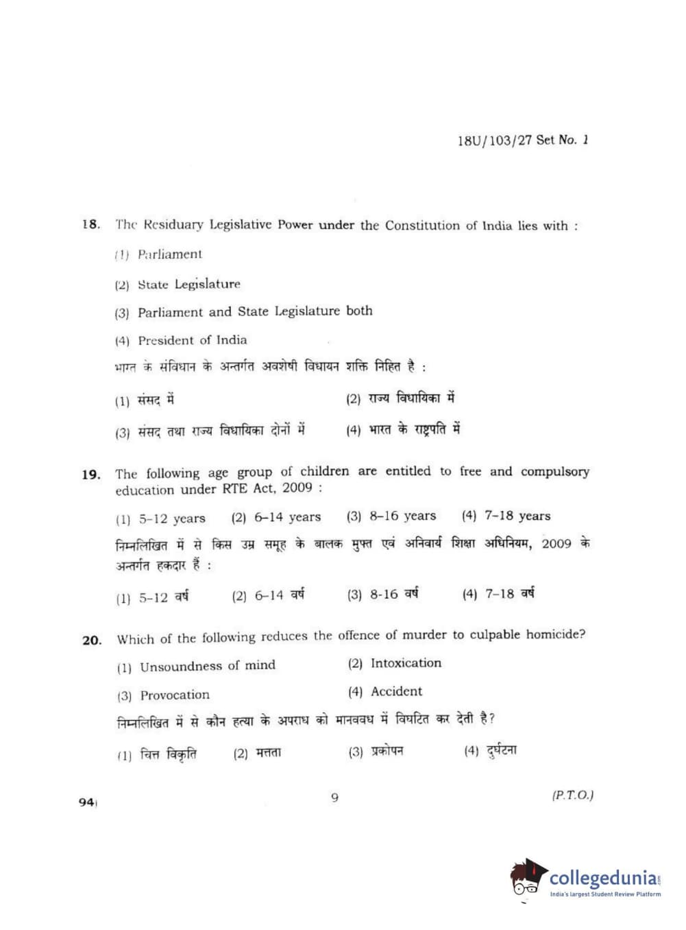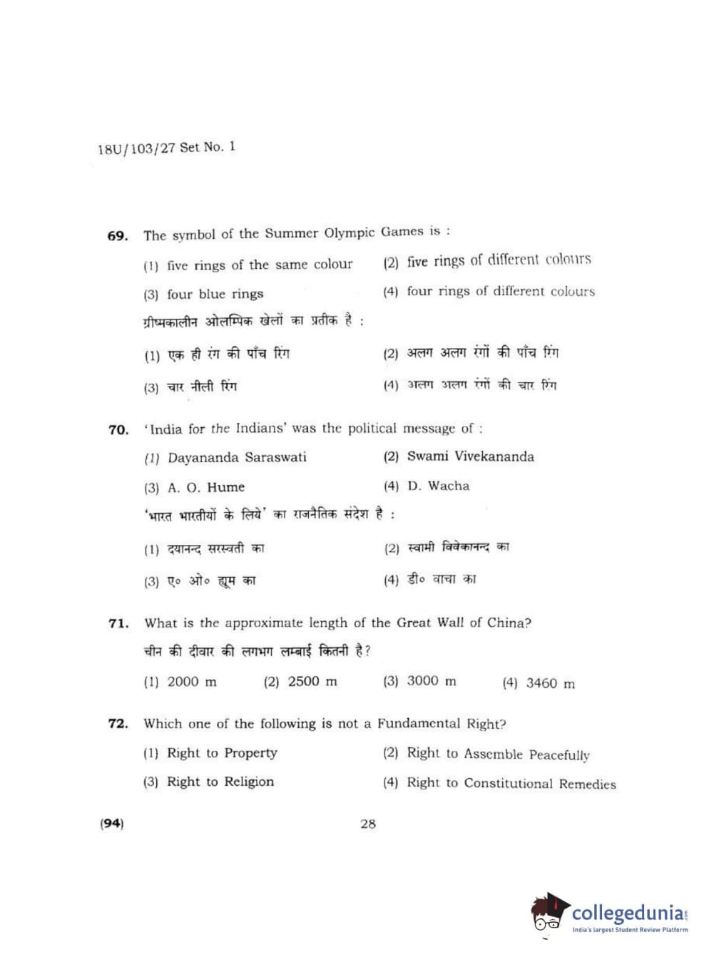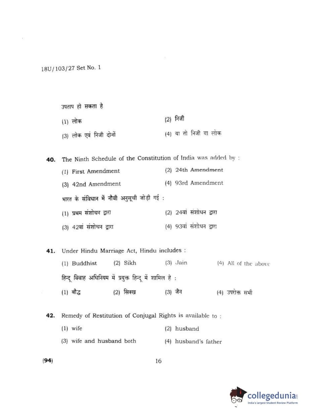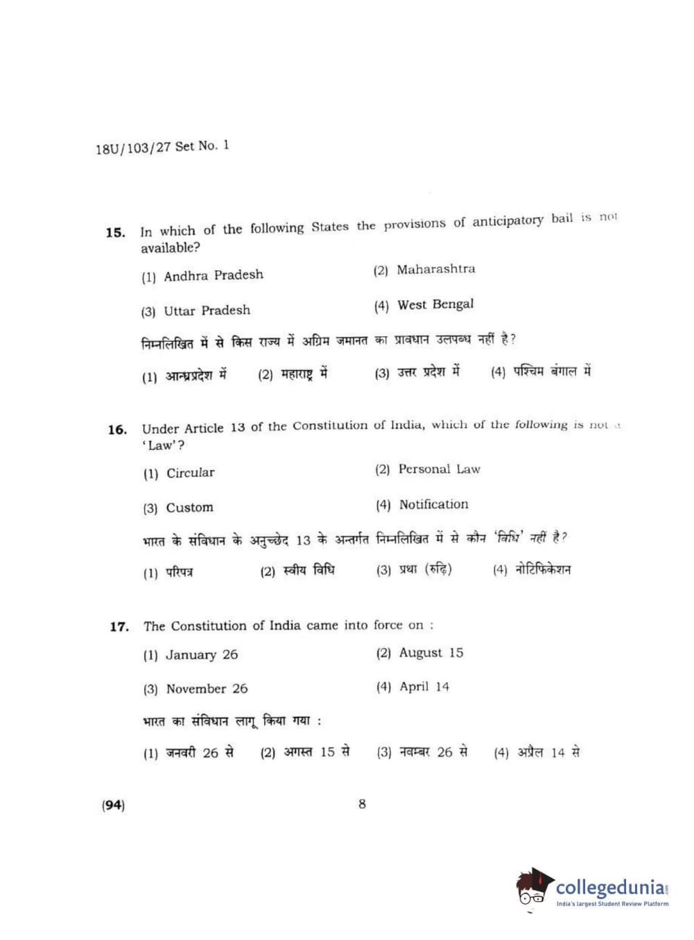 BHU UET 2018 LLB Question Paper with Answer Key PDFs Shift 2