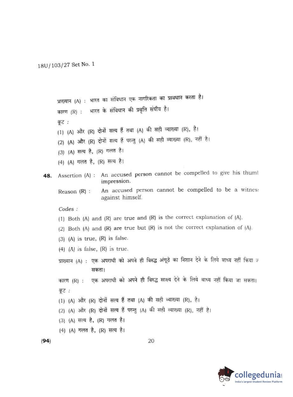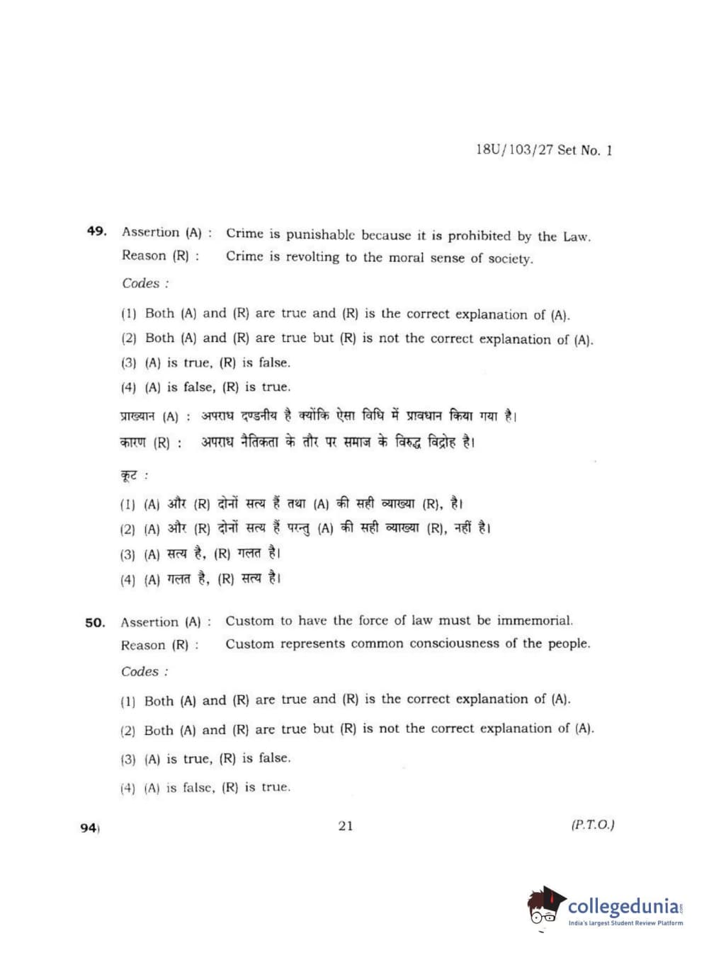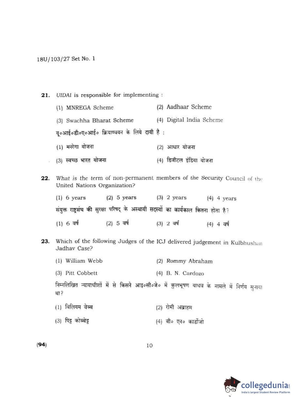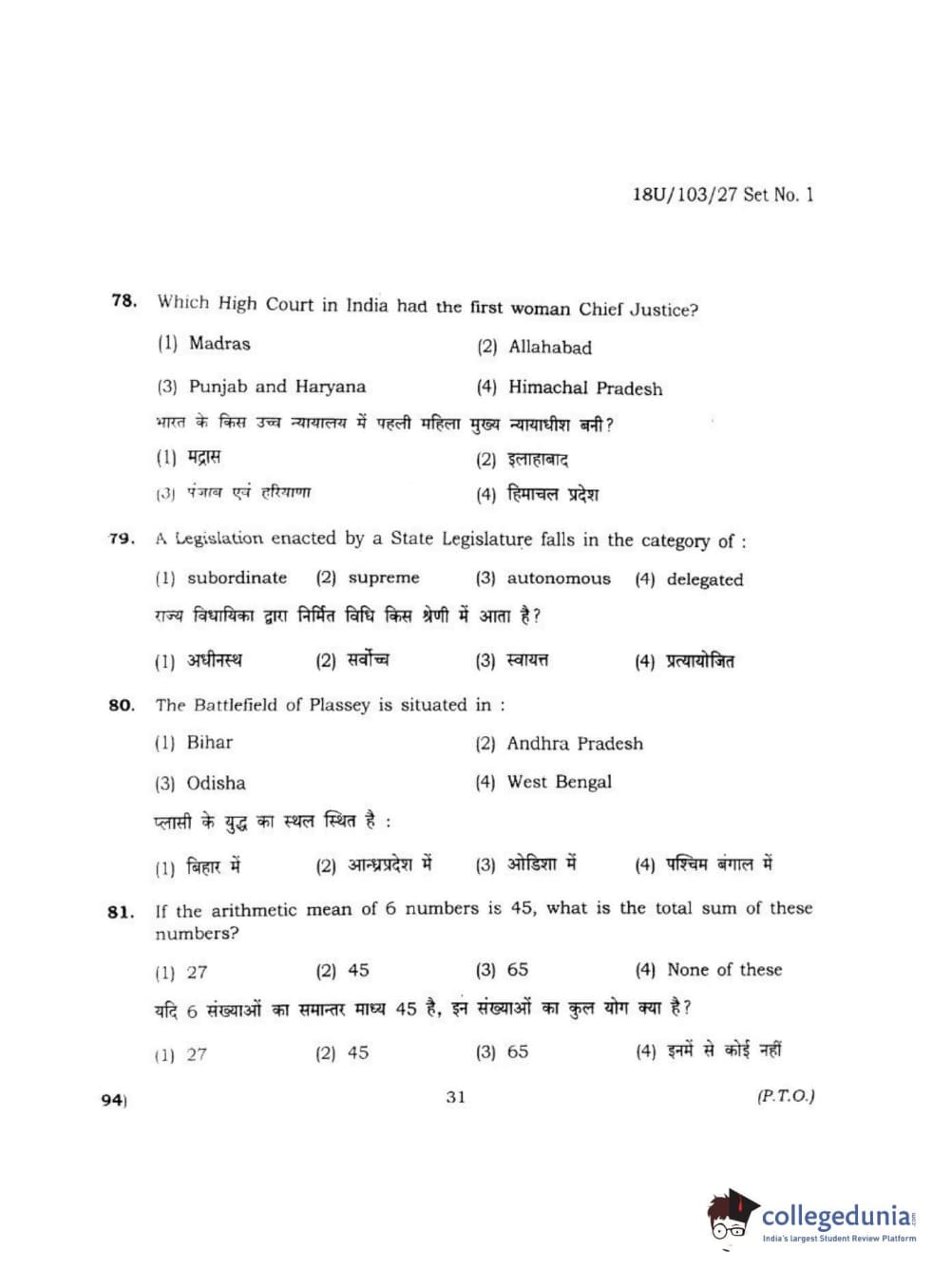 BHU UET 2018 LLB Question Paper with Answer Key PDFs Shift 2